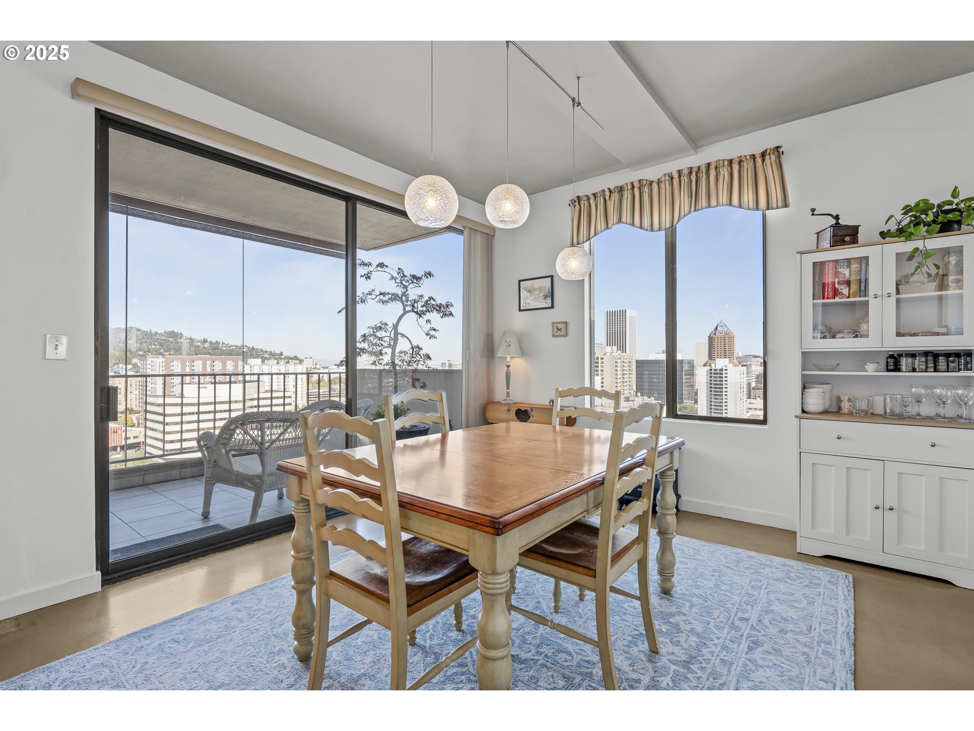 Perched on the 21st floor of the coveted American Plaza Towers, this contemporary condo offers panoramic views that redefine city living. With balconies on both the east and west sides, you’ll wake to serene river and mountain vistas and wind down with dazzling sunsets and twinkling city lights—every room is framed by breathtaking scenery.Inside, the open floorplan is thoughtfully updated for modern comfort and style. Marble countertops, sleek stainless steel cabinetry, open shelving, and premium stainless appliances—including a wine fridge and convection oven—create a kitchen that’s as functional as it is beautiful. The primary suite is a private retreat, featuring a walk-in shower and dual stainless vanity for a spa-like experience.The Plaza is a full-service community that elevates your lifestyle with secure garage parking, indoor and outdoor pools, hot tubs, saunas, a fully equipped cardio/weight training gym, and 24/7 security and concierge services. Whether you're entertaining, relaxing, or working from home, this condo in the sky offers the perfect blend of luxury, convenience, and stunning Portland views.