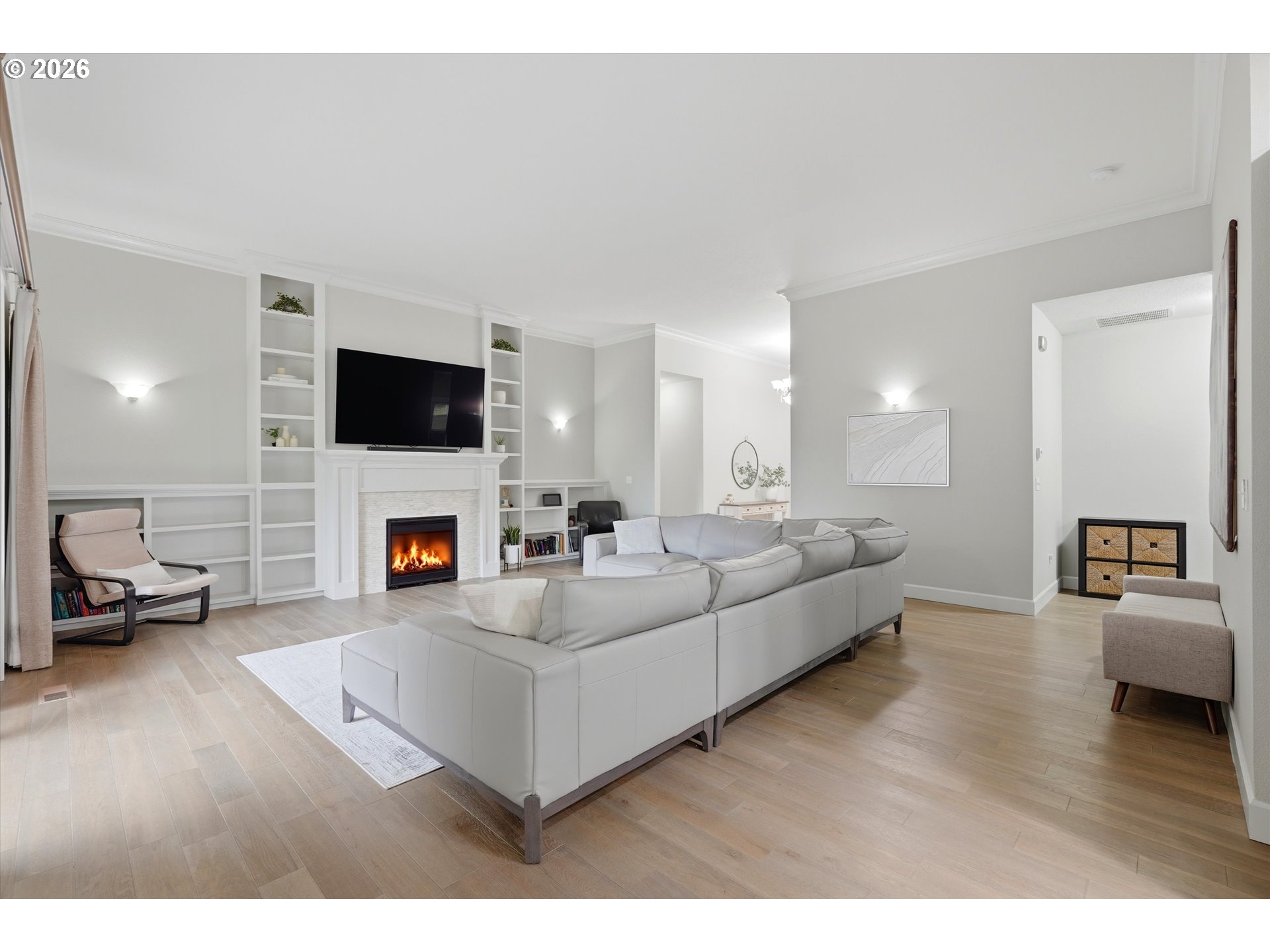 1-LEVEL CRAFTSMAN GEM!Nestled on a corner lot with peaceful forest views just outside the primary suite, this beautifully designed 2,234 sq ft home offers the perfect blend of comfort, style, and functionality. Featuring 3 bedrooms plus an office, the thoughtfully designed layout delivers open-concept living at its best.Step inside to soaring 11-foot ceilings, engineered hardwood floors, and a stunning fireplace surrounded by custom built-ins. The spacious living room flows seamlessly to a private covered deck—perfect for barbecuing, relaxing, or enjoying the outdoors year-round.The kitchen blends classic style with modern function, featuring a large island, prep sink, KitchenAid appliances, abundant storage, and a built-in coffee bar. With generous space for gathering and entertaining, it’s designed for both everyday living and special occasions.The primary suite offers tranquil forest views, a generous walk-in closet, and a well-designed bathroom complete with a relaxing soaking tub. Additional bedrooms are comfortably sized, and the office provides flexibility for guests, a home workspace, or potential fourth bedroom.The oversized custom garage features matching cabinetry and new flooring for exceptional organization. Along the side of the home you’ll also find a unique additional storage area beneath the house with two 12x12 storage platforms—perfect for seasonal items or extra gear.A rare one-level opportunity combining quality craftsmanship, thoughtful design, and beautiful surroundings—this is a home you won’t want to miss.