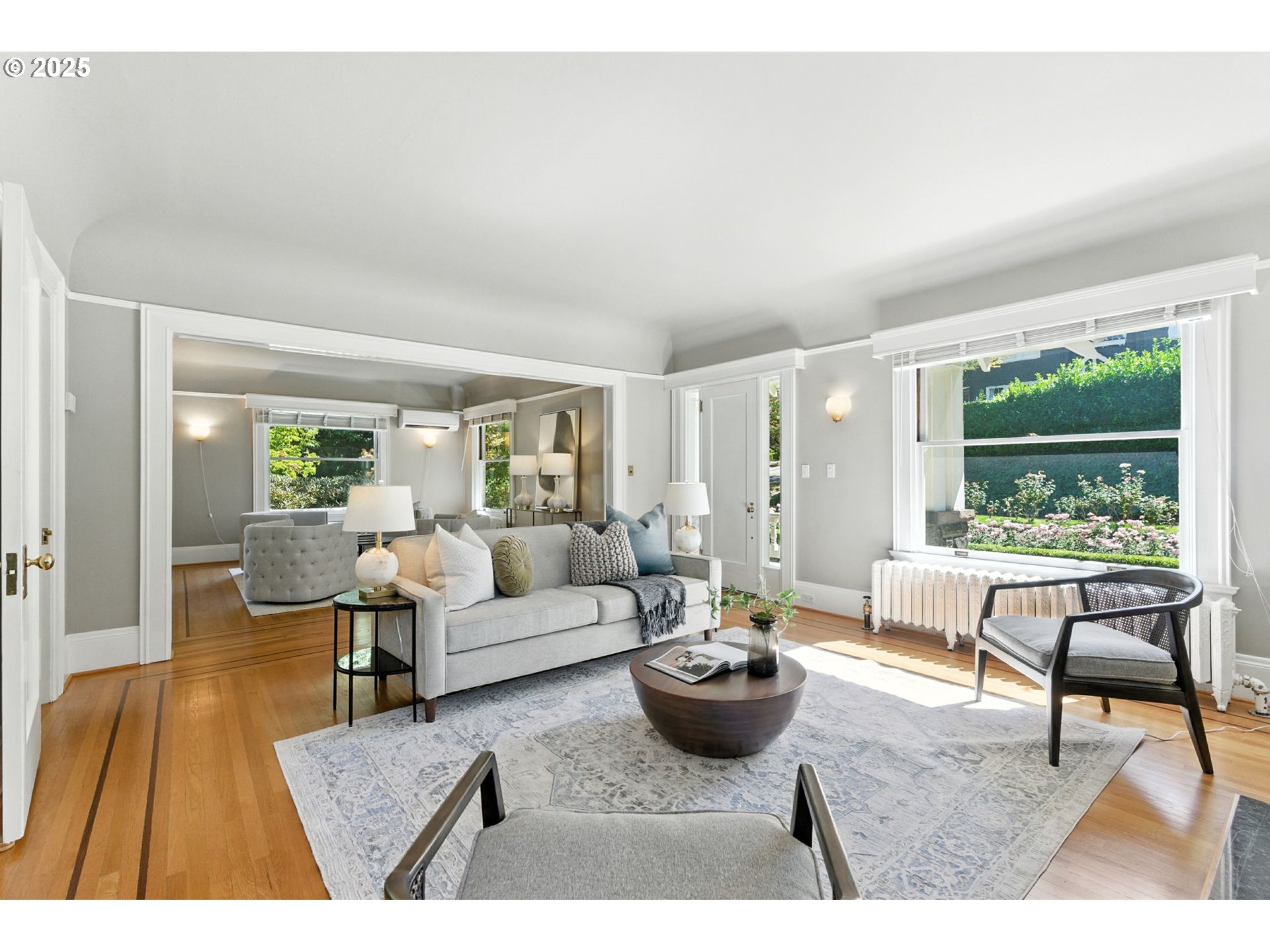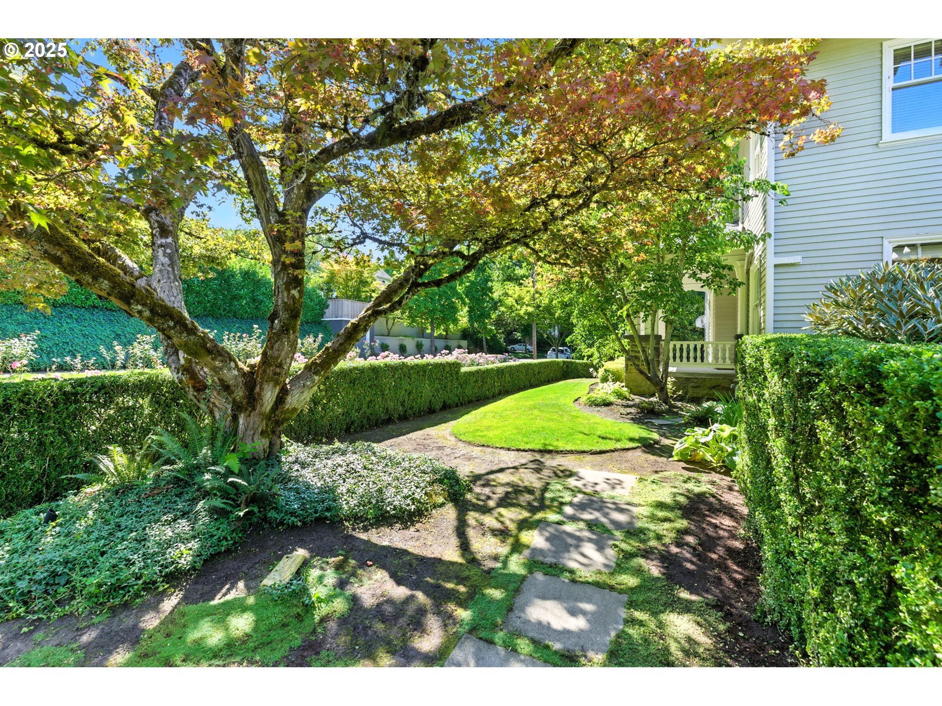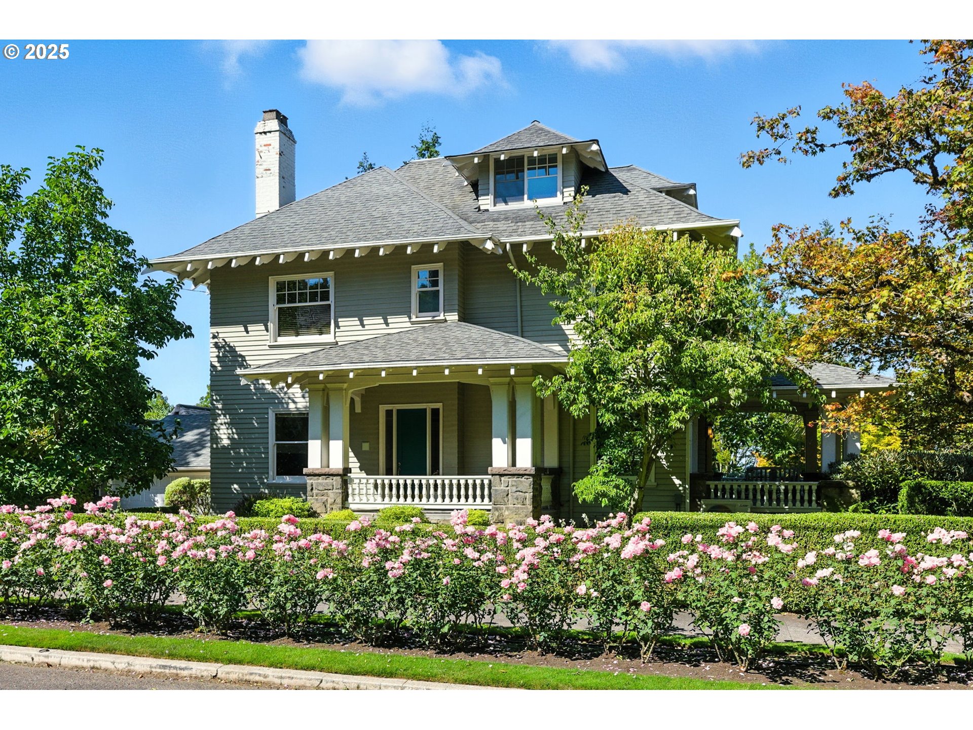 Historic elegance with period charm and modern touches in this amazing home by renowned architect Emil Schacht, known as the ML Kline House. Many original details including gorgeous hardwood flooring with walnut inlay, a classic dining room with period built-ins, box beamed ceilings, and built-in window benches. There are plenty of spacious entertaining areas and an excellent floorplan, including outstanding separation of spaces and privacy. There is a large Primary on the 2nd floor with abundant natural light and a large walk in closet, adjacent to 2 additional large bedrooms. This home also has an amazing light filled office/craft space with wrap around windows. The top floor features additional bedrooms/flex spaces plus a full bath. The Lower level has an expansive bonus space with built-ins, and an additional bedroom suite with new bath. Updated kitchen with butler's pantry and light filled breakfast area, leading to a patio overlooking one of the most breathtaking outdoor areas you will find, originally designed by Michael Schultz. The large, flat yard has spacious entertaining spaces, fountain, abundant grass and landscaping specifically designed to continue the timeless character of this property - including Margarite pink roses and an iconic, historical Japanese Maple. Featuring an off-street 2 car garage with spacious driveway for modern convenience, yet exterior character complemented by covered porches and corbelled rafters which complete the architectural charm of this classic Portland Heights home. The premier corner location provides privacy and space, yet just blocks away from Ainsworth Elementary and nearby amenities. [Home Energy Score = 1. HES Report at https://rpt.greenbuildingregistry.com/hes/OR10239593]