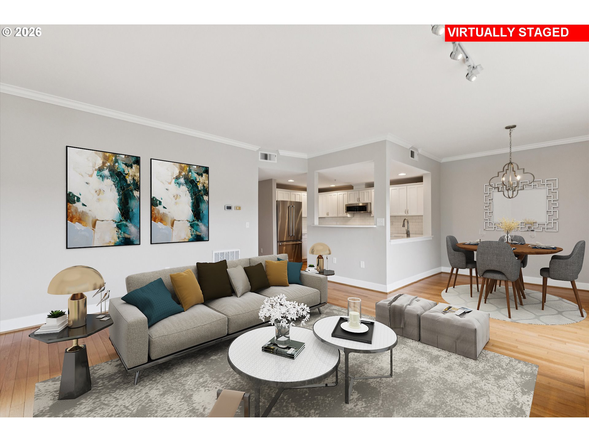 Tucked up off the street on NW Pettygrove, this 2001 townhouse-style condo is nothing short of a hidden gem! With 2 beds, 2.5 baths and a layout that just makes sense - no wasted space and everything where you'd want it. Favorite features include oak hardwoods throughout, incredible natural light, two balconies, a gas fireplace, and a very functional, spacious kitchen that's ideal for everyday cooking and entertaining. Enjoy stainless appliances, clean lines, VIEWS and laundry upstairs near the bedrooms where it belongs. The generous primary suite offers a luxurious ensuite bath, large walk-in closet and bonus room/flex space - perfect for an office/reading nook, dressing room or micro home gym. This A+ location just a half block from NW 23rd gives flexibility to leave your car parked in the secure garage more often than not as you dine or shop in one of the dozens of incredible businesses along 23rd, or recreate in nearby Forest Park. This one lives large and is an incredible value!