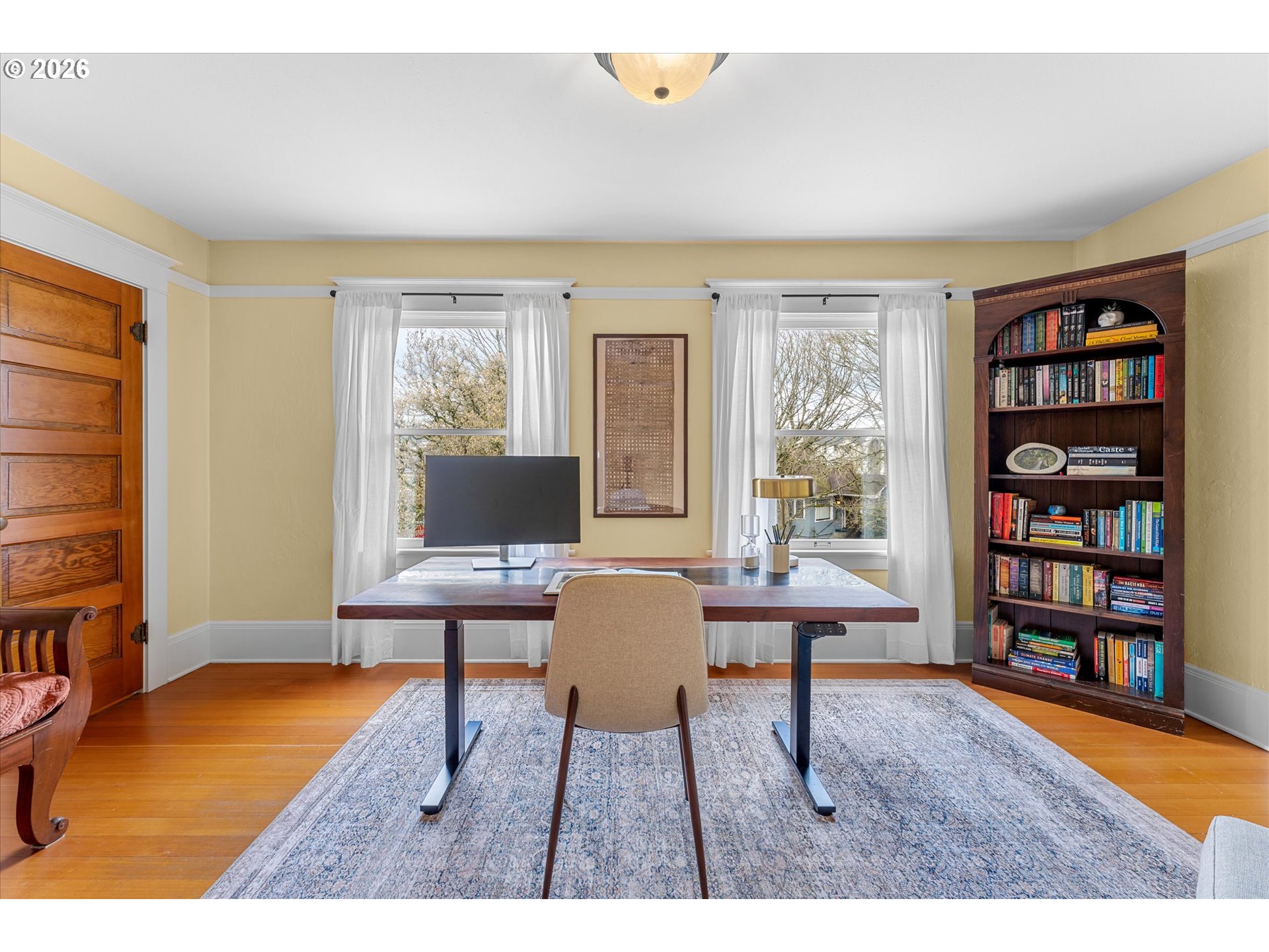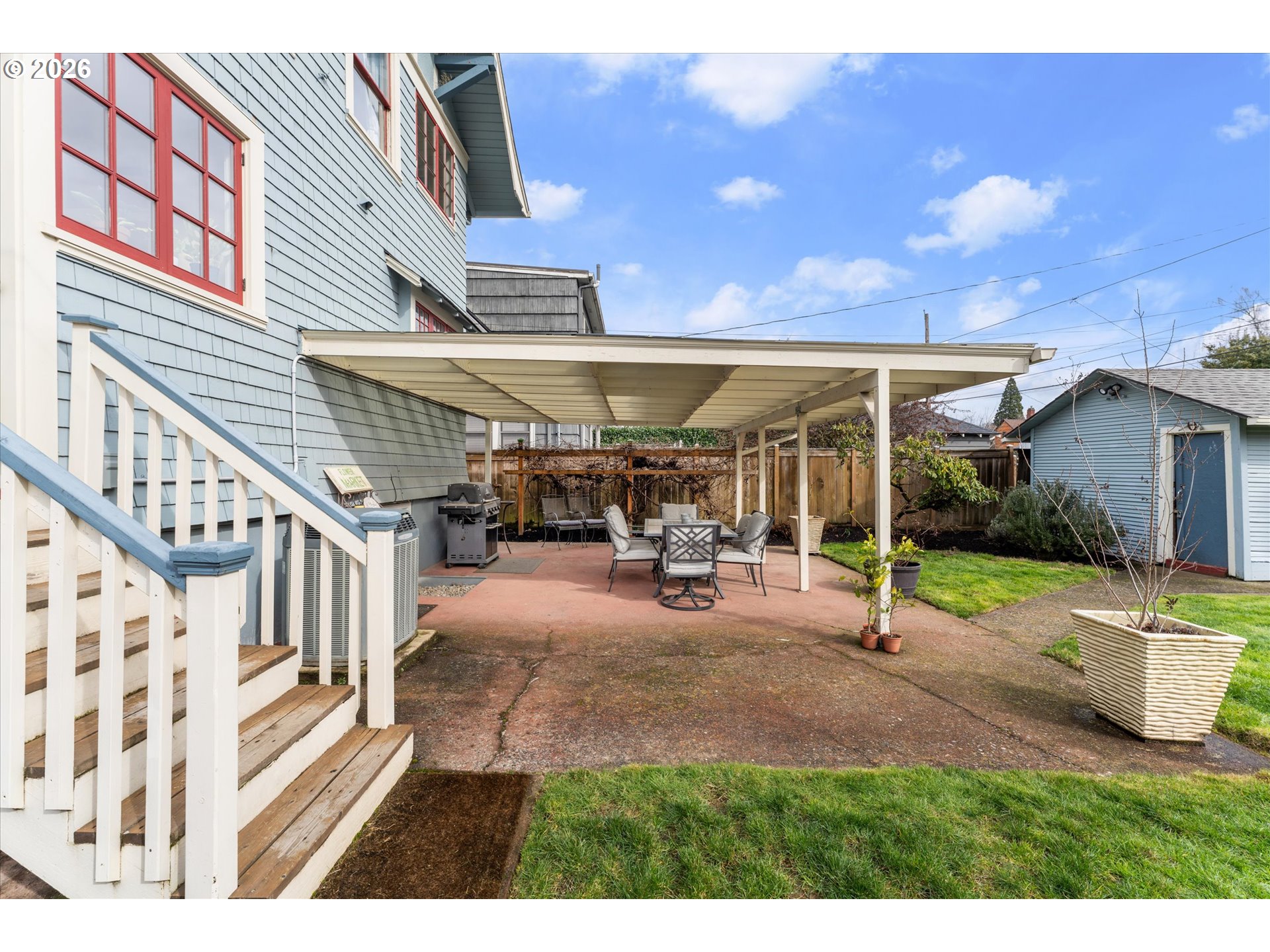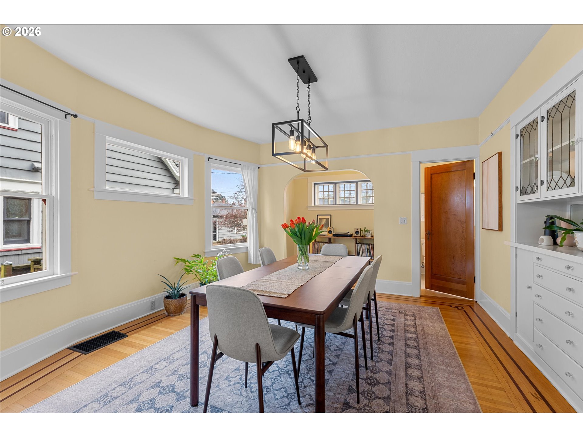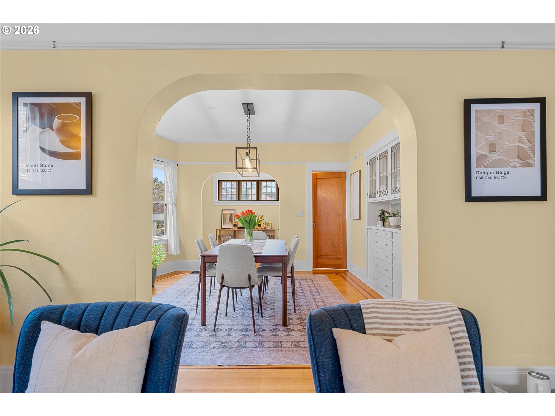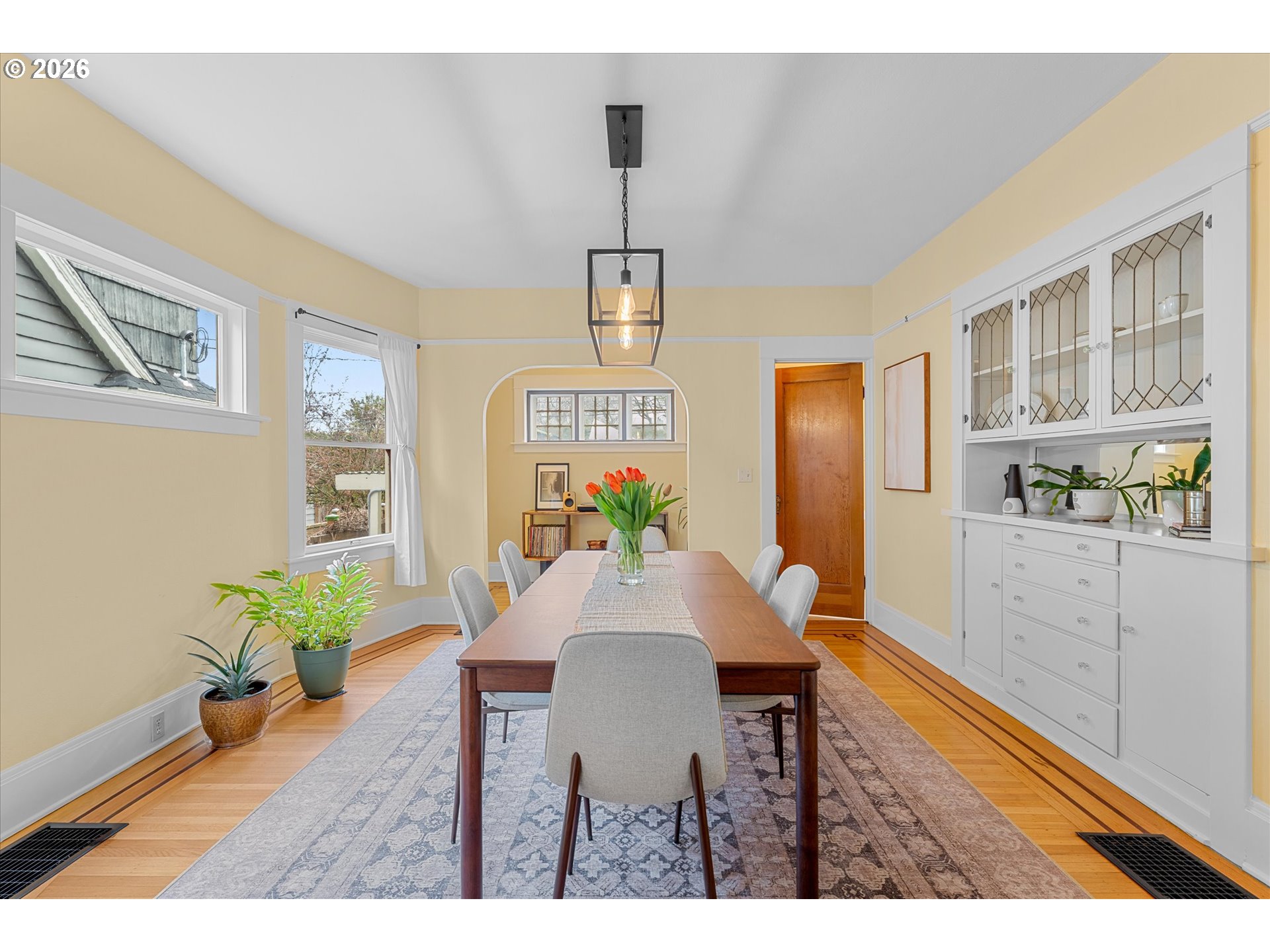 Welcome home to this enchanting beauty in the heart of Ladd’s Addition. Offering 4 bedrooms, 2.1 baths, and nearly 2,800 square feet, this home blends the perfect balance of historic character and everyday comfort. The formal living and dining spaces feature classic built-ins, gorgeous fir wood floors, soaring ceilings, and an abundance of architectural charm. The dream kitchen is equipped with high-end appliances (Viking & Meile), custom cabinetry, and generous space for cooking, entertaining, and gathering. Upstairs, you’ll find three spacious bedrooms, the cutest attached sunroom, multiple walk-in closets, a full bathroom, and access to a 3rd floor attic space (incredible storage opportunity!). The versatile lower level features a fourth bedroom, full bathroom, and open bonus space - perfect for guests, hobbies, or multi-generational living. Step outside to a covered back patio that overlooks a fantastic backyard, adorned with a mature grape vines, ideal for serene mornings or enjoyable summer evenings. An oversized one-car garage with a 220V outlet adds extra convenience. Out front, a stunning mature magnolia tree creates a picture-perfect welcome each spring. All of this in a prime close-in SE location, just blocks from beloved shops, restaurants, and neighborhood rose gardens that make Ladd’s Addition one of Portland’s most treasured neighborhoods. [Home Energy Score = 2. HES Report at https://rpt.greenbuildingregistry.com/hes/OR10218773]
