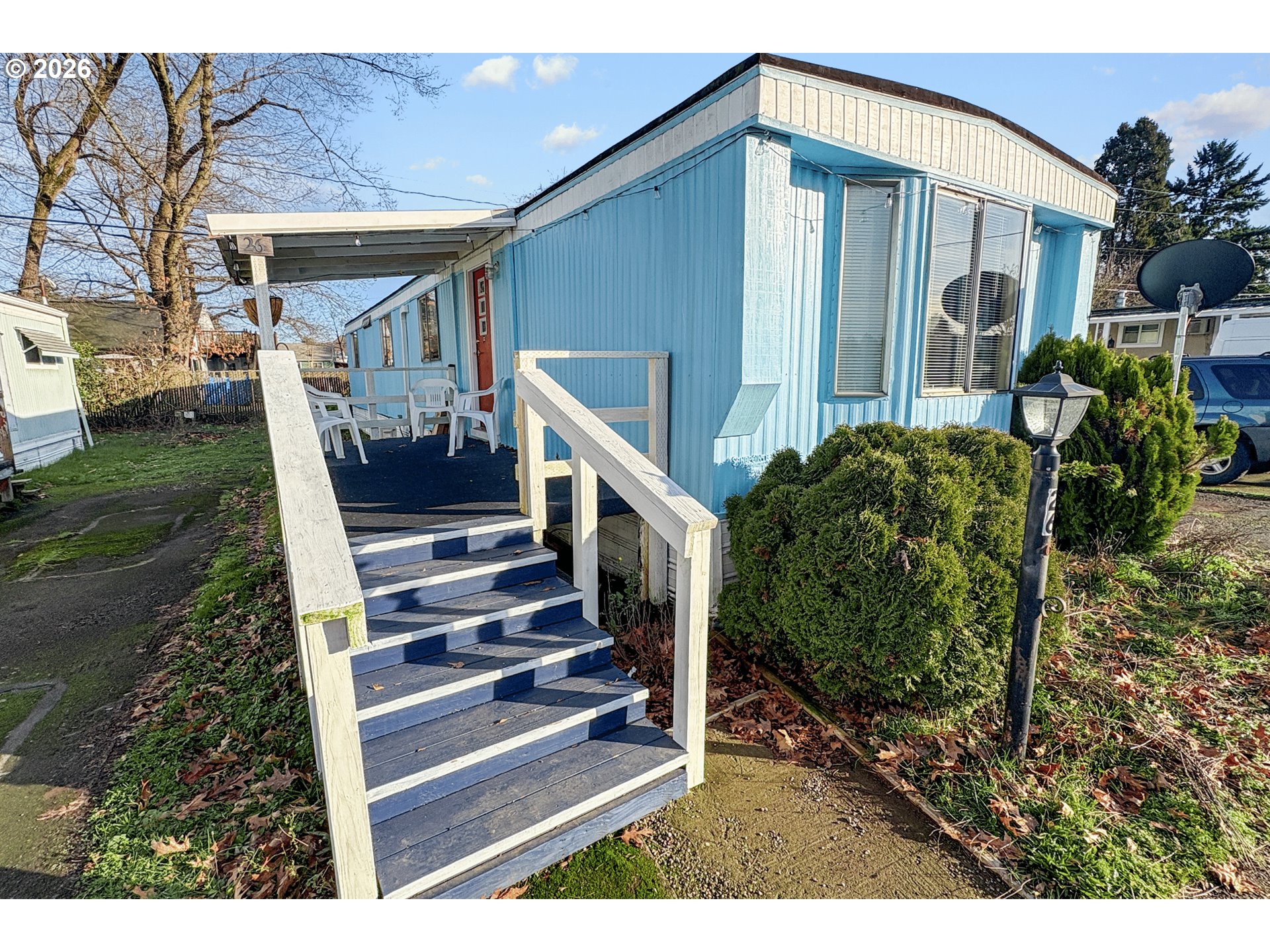 Funky, solid, and proudly not boring. This 2 bed, 1 bath manufactured home in Southeast Portland is for someone who wants personality and practicality. With 784 sqft of well used space, this home proves that affordable living doesn’t have to be beige, bland, or boring.The kitchen brings the wow factor with bold blue painted cabinets that set the tone for the entire home. There’s plenty of room to cook, gather, and enjoy everyday life, and the open flow into the dining and living areas keeps things feeling connected and comfortable. All appliances stay including the stove, refrigerator, washer, and dryer so you can move in and get living right away.The living space is warm and welcoming with room to stretch out, while both bedrooms are nicely sized and functional. The full bathroom is clean and efficient, and in-unit laundry adds everyday convenience you’ll appreciate more than you think.Outside, this home continues to deliver. You’ll find parking for two vehicles, a covered front porch with ramped access, and a newly rebuilt deck that makes coming home easy. The roof has been recently resealed, offering added peace of mind. Tucked along a quiet internal street, this home feels relaxed while still being close to everything Southeast Portland has to offer.Monthly space rent for a new owner is $800 and includes sewer and garbage. The park allows up to two pets, each with a maximum weight of 30 pounds. Buyer to verify park approval and lease terms.Affordable. Funky. Solid. And ready for its next chapter.