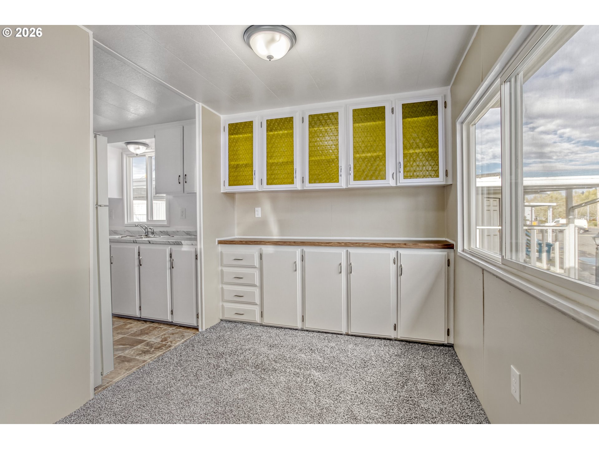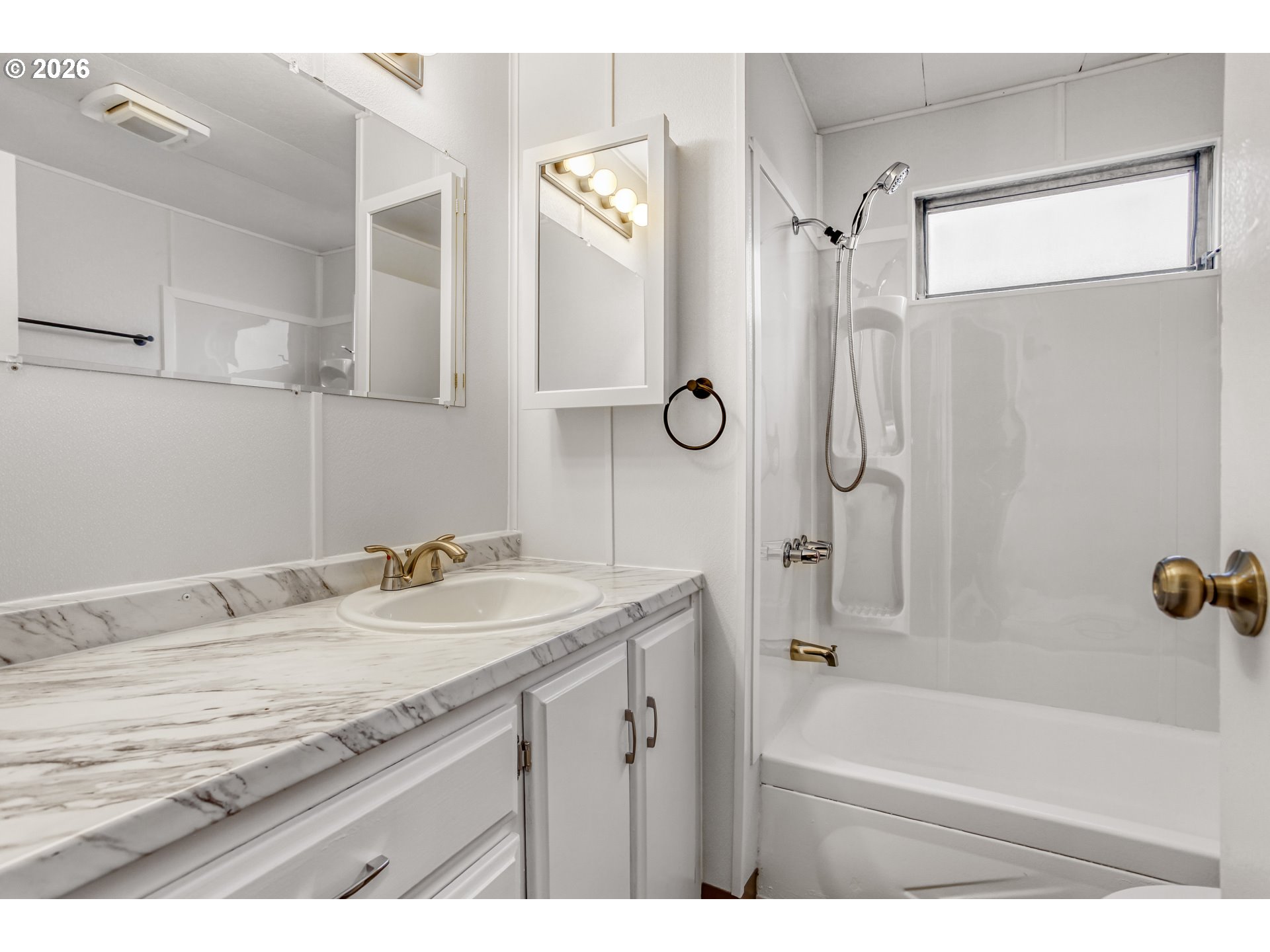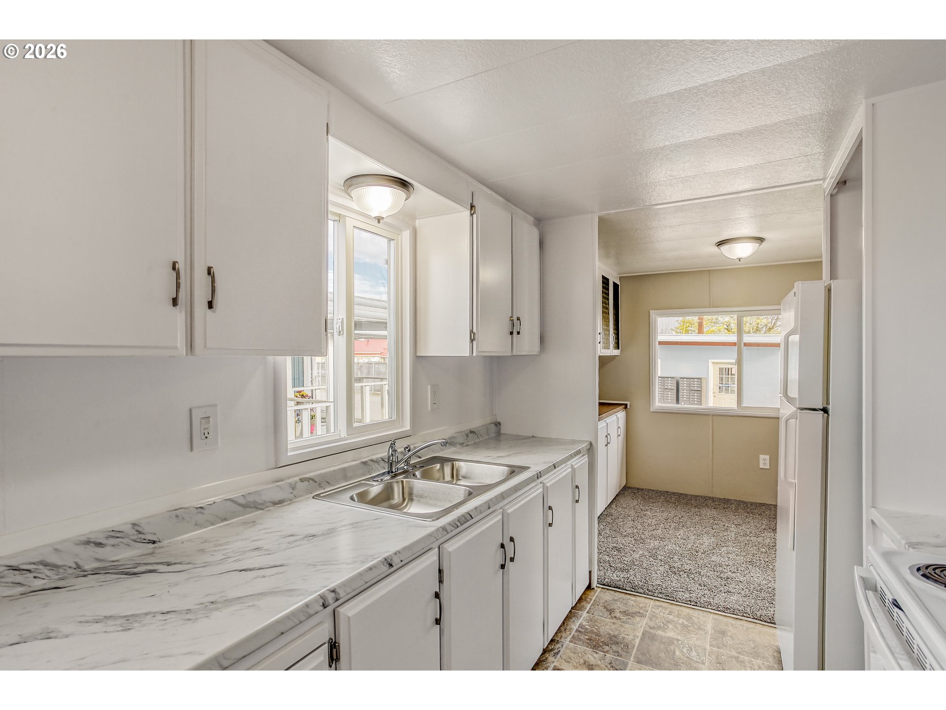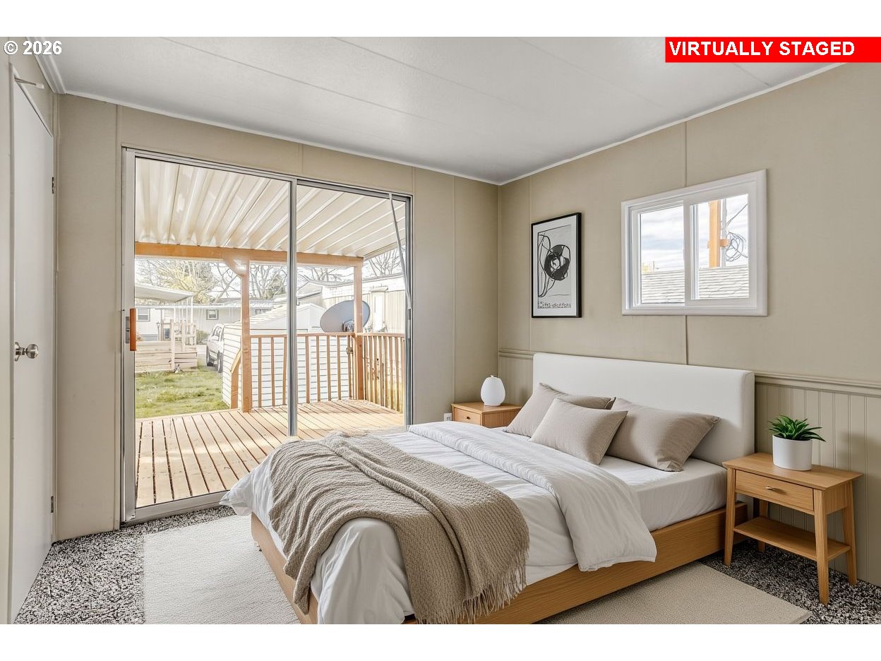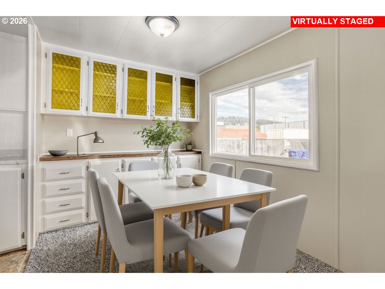 Updated double-wide manufactured home in Central Trailer Park, an all-age community in a convenient SE Portland location. This home offers a spacious layout with great natural light and numerous recent updates including a new roof, newer double-pane vinyl windows, fresh interior and exterior paint, recently serviced HVAC and new flooring throughout. The living room flows seamlessly into the dining area with built-in cabinetry and display shelving, while the kitchen features an eating nook, refrigerator, range, exterior access and a dedicated laundry space with hook-ups. The primary bedroom includes a sliding door leading to a fully covered deck that extends along the home, ideal for year-round outdoor enjoyment. Covered carport parking with space for two vehicles plus a tool shed for additional storage. Space rent is $820/month (garbage included; water/sewer billed separately) and the park offers secure mailboxes. Two indoor pets allowed up to 20lbs. Financing available!