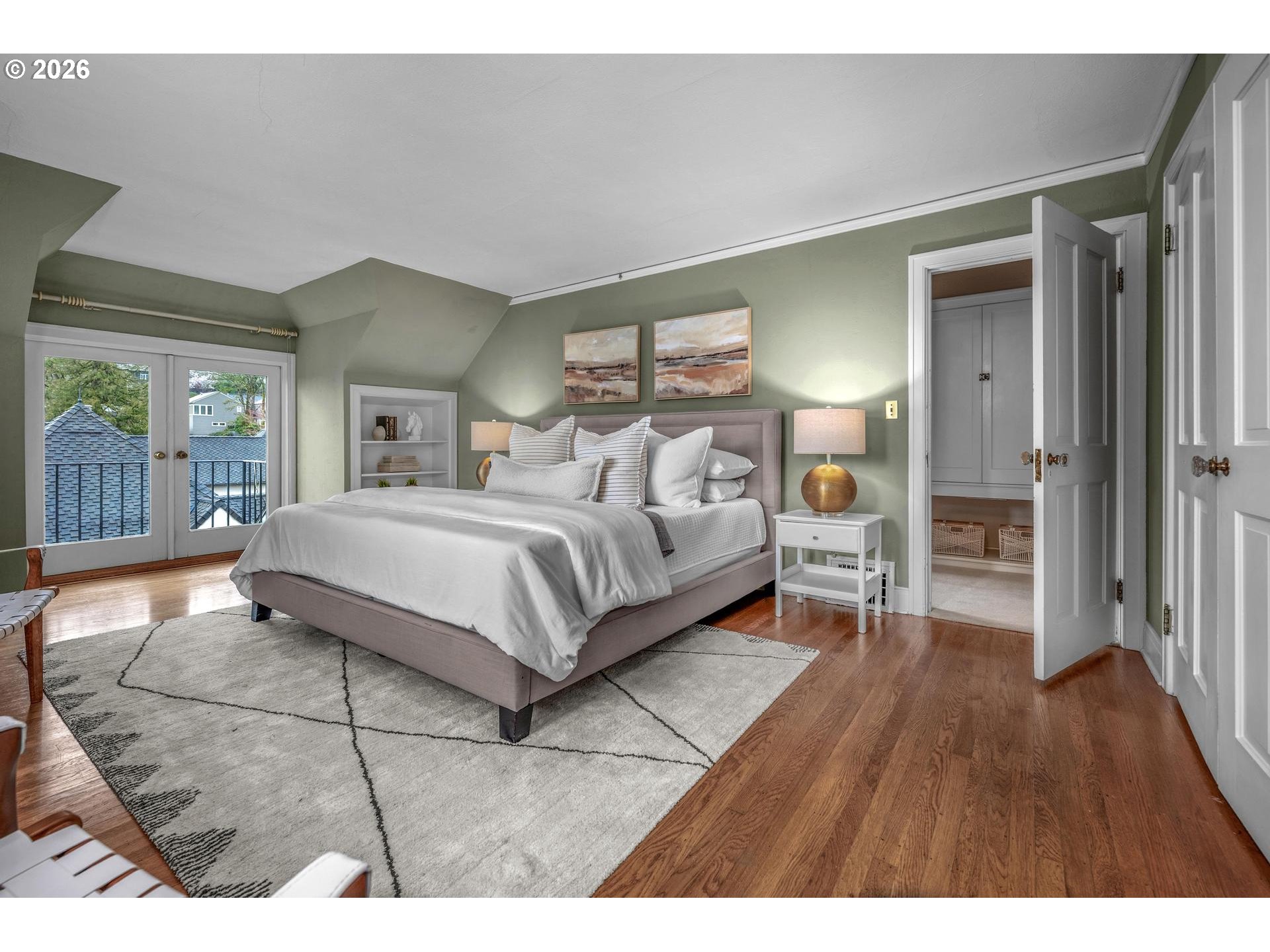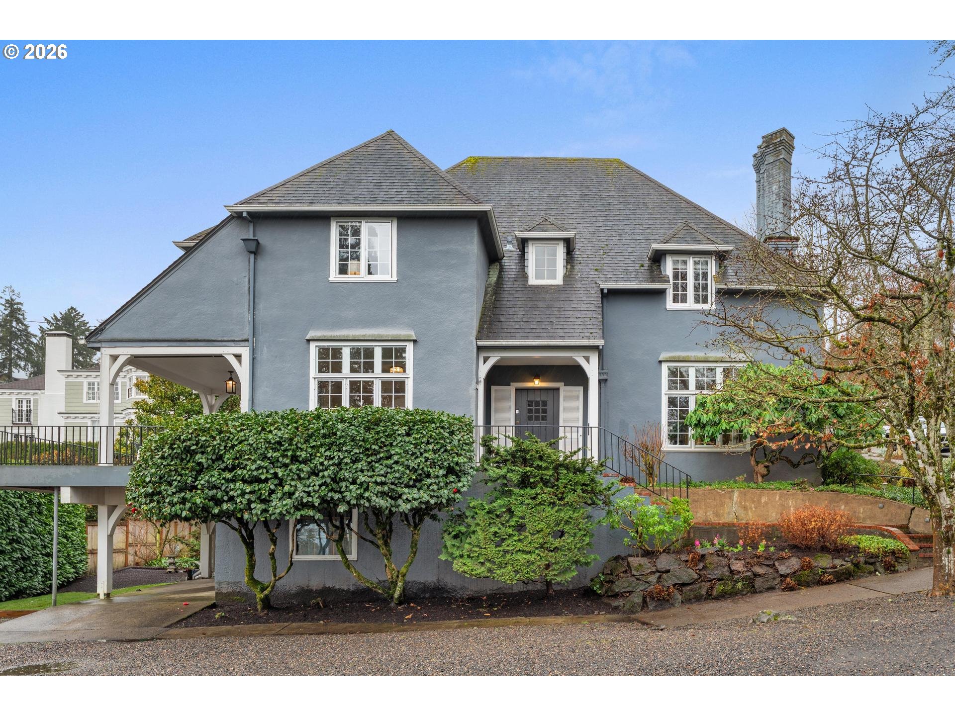 OPEN SAT 3/14 12-4 AND SUN 3/15 10-2. Designed in 1924 by noted architect Jamieson Parker for Misses Giles, this timeless Portland Heights English Cottage is ideally located within walking distance of Ainsworth Elementary School.A gracious staircase sets the tone upon entry, introducing the home’s classic architecture and enduring charm. The updated kitchen is thoughtfully appointed with two ovens, a gas range, wet bar with sink, granite island, and an exceptionally spacious butler’s pantry complete with beverage refrigerator and abundant cabinetry. The living room is both elegant and welcoming, featuring built-in bookshelves and a fireplace with a wood façade and gas starter. The formal dining room offers built-in corner cabinets and opens to a generous deck with sweeping views of downtown Portland — perfect for entertaining or quiet evenings at home. Upstairs, three bedrooms and a family room provide comfortable gathering spaces. The primary suite includes a sitting room with its own view of the city skyline.An expansive unfinished basement of over 1,500 square feet offers tremendous opportunity for future expansion, studio space, or recreation. Listing agent is related to seller. [Home Energy Score = 1. HES Report at https://rpt.greenbuildingregistry.com/hes/OR10245224]
