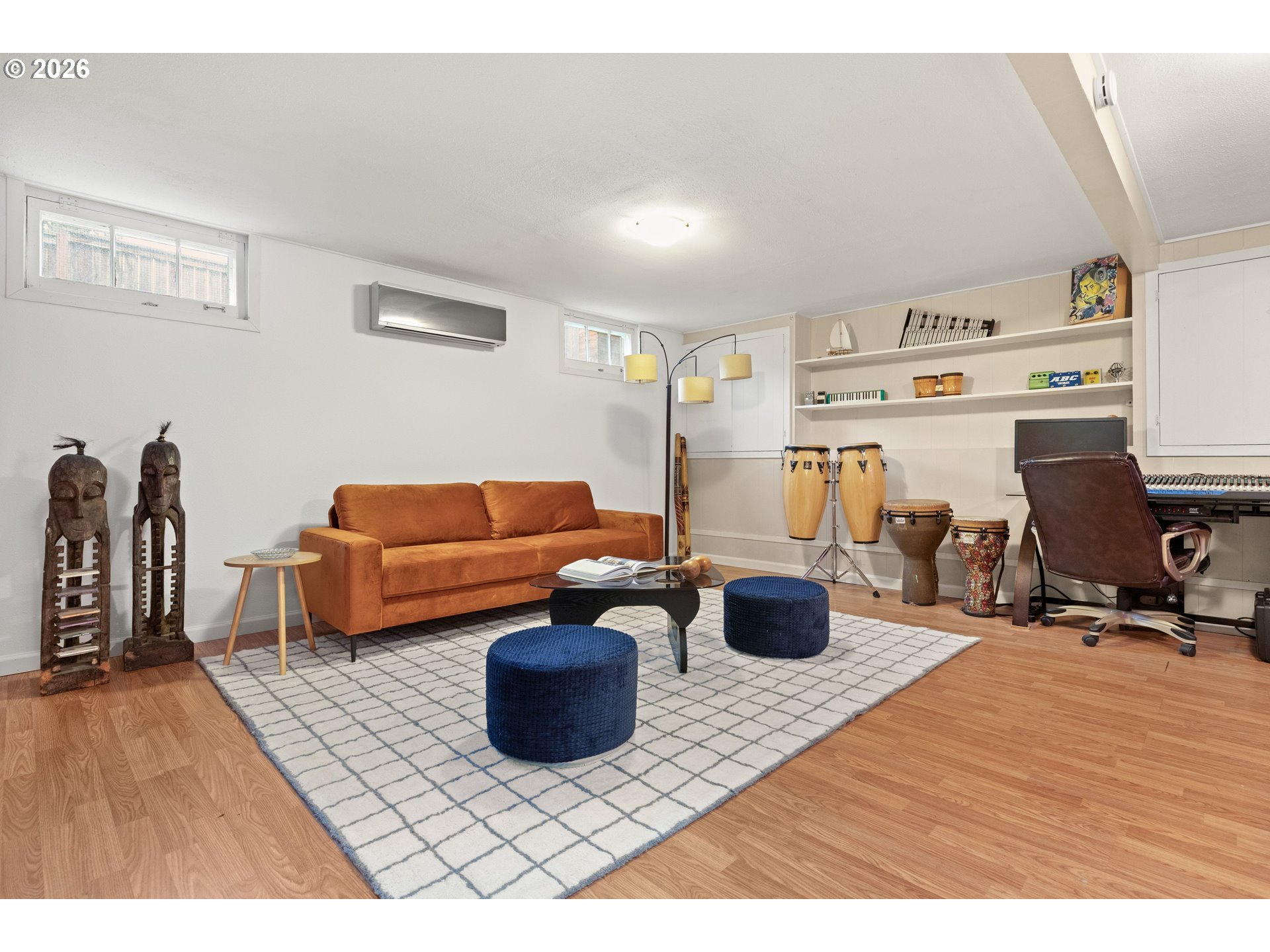 (503) 893-8874This charming, yet unassuming entrance opens into a shockingly expansive interior filled with natural light and a layout to explore. With 4 bedrooms, 2 bathrooms, an attached garage, large finished basement, and oversized yard, this property offers plenty of space for everyday living and effortless entertaining. The home benefits from a desirable orientation and an abundance of windows. In the winter, the living room fills with warm southern sunlight, creating a bright atmosphere. In the summer, cool morning air flows through the main level, helping the home stay comfortable throughout the day. Mini Splits are also located throughout. Inside, you’ll find warm wood flooring and a welcoming layout leading to a newly updated kitchen. Multiple skylights flood the home with natural light, while two wood-burning fireplaces provide inviting spaces to gather. The main level, in addition to spacious living areas and direct access to the backyard, features two bedrooms and a full bathroom, offering flexible living options. Upstairs features two large bedrooms, a full bath, and built-in hallway bookshelves that add charm and function. The finished basement opens up even more possibilities with a billiards room, music studio, lounge area, and laundry room. Known as “The Honey Pot,” this has been a buzzing community space for musicians and artists alike to collaborate, meet and play live shows. Included in the sale is a 1970’s Golden West Billiards pool table, hand-made here in Portland. Step outside to the freshly painted exterior and an oversized, fully fenced backyard. Highlights include a covered patio, fire pit, in-ground garden with drip irrigation, garden beds, and a variety of mature fruit trees, pear, peach, apple, cherry, and fig. Along with a beautiful purple leaf maple, wisteria vine, and an abundance of bulb flowers. This special and unique home is ready for its next chapter, offering a place to gather, grow, and create lasting memories for years to come. [Home Energy Score = 5. HES Report at https://rpt.greenbuildingregistry.com/hes/OR10095147]