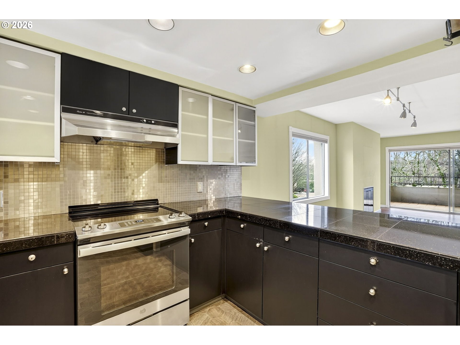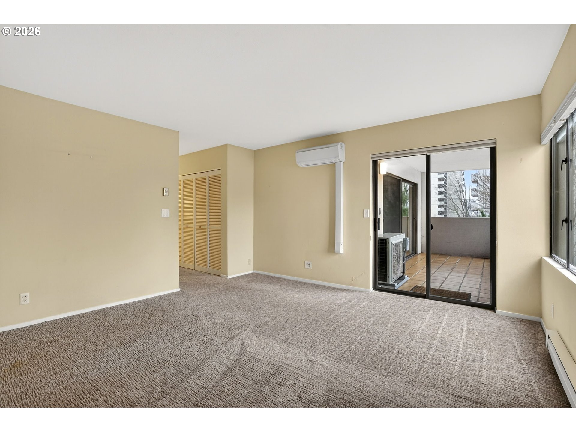 Open and light-filled 2-bedroom, 2-bath condo featuring a unique and thoughtfully designed floor plan. The kitchen sits at the center of the home and opens seamlessly to both the living room and the family/dining space, creating an easy, flowing layout ideal for everyday living and entertaining. The living room offers an electric fireplace and sliding doors to an east-facing deck—perfect for morning light and hosting guests. On the opposite side, the dining area (which can also function as a comfortable family room) opens to a west-facing deck, ideal for enjoying evening sunsets. Engineered hardwood flooring runs throughout the condo, with cozy wall-to-wall carpet in the primary suite. The spacious primary suite features double closets, a walk-in shower, and sliding doors to a private east-facing balcony for peaceful sunrises. A separate second bedroom is conveniently located next to the second full bath and also opens to the west-facing deck. Additional highlights include in-unit laundry with a new hot water heater. Washer and dryer included. Garage space is close to building door, very convenient. This condo community offers wonderful amenities, including an indoor saltwater pool and hot tub that opens to a large patio, complemented by a community room designed for social gatherings. New men and women's locker rooms. Enjoy the outdoor pool with its own patio, ideal for hosting parties or soaking up the sun. HOA amenities also includes cardio and weight rooms, 53 guest parking spaces unheard of downtown, 24 hour concierge, on MAX and bus line, street car one block north, Close to OHSU, Portland State and the downtown cultural district. Pet friendly and rental cap not met. Stroll the Halprin Park Sequence to the Downtown Cultural center or RiverPlace Esplanade shops and restaurants. Vibrant city living at its best.