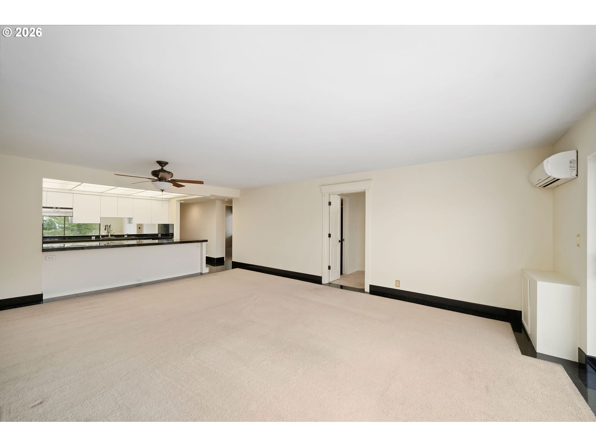 Terrific value for a two bedroom/two bathroom condominium in a secure, well-kept building with a sweeping view of Portland Heights and the city. Freshly painted kitchen and bathroom cabinets - nice, sleek white cabinets with striking black counters and floor. Open floor plan, carpeted living areas and bedrooms. A fireplace in this unit has been covered with paneling. In-unit washer and dryer, shelving/storage, plus storage unit near parking space. Multiple elevators for quick access. Recreational facilities include indoor and outdoor pools, saunas, community rooms, library, lots of community opportunities with art exhibits, book clubs, exercise, things to do to make life fun! Convenient location in the cultural district, close to waterfront, public transportation, shopping, coffee and restaurants. 24/7 concierge, lots of guest parking. Best priced unit in the complex!