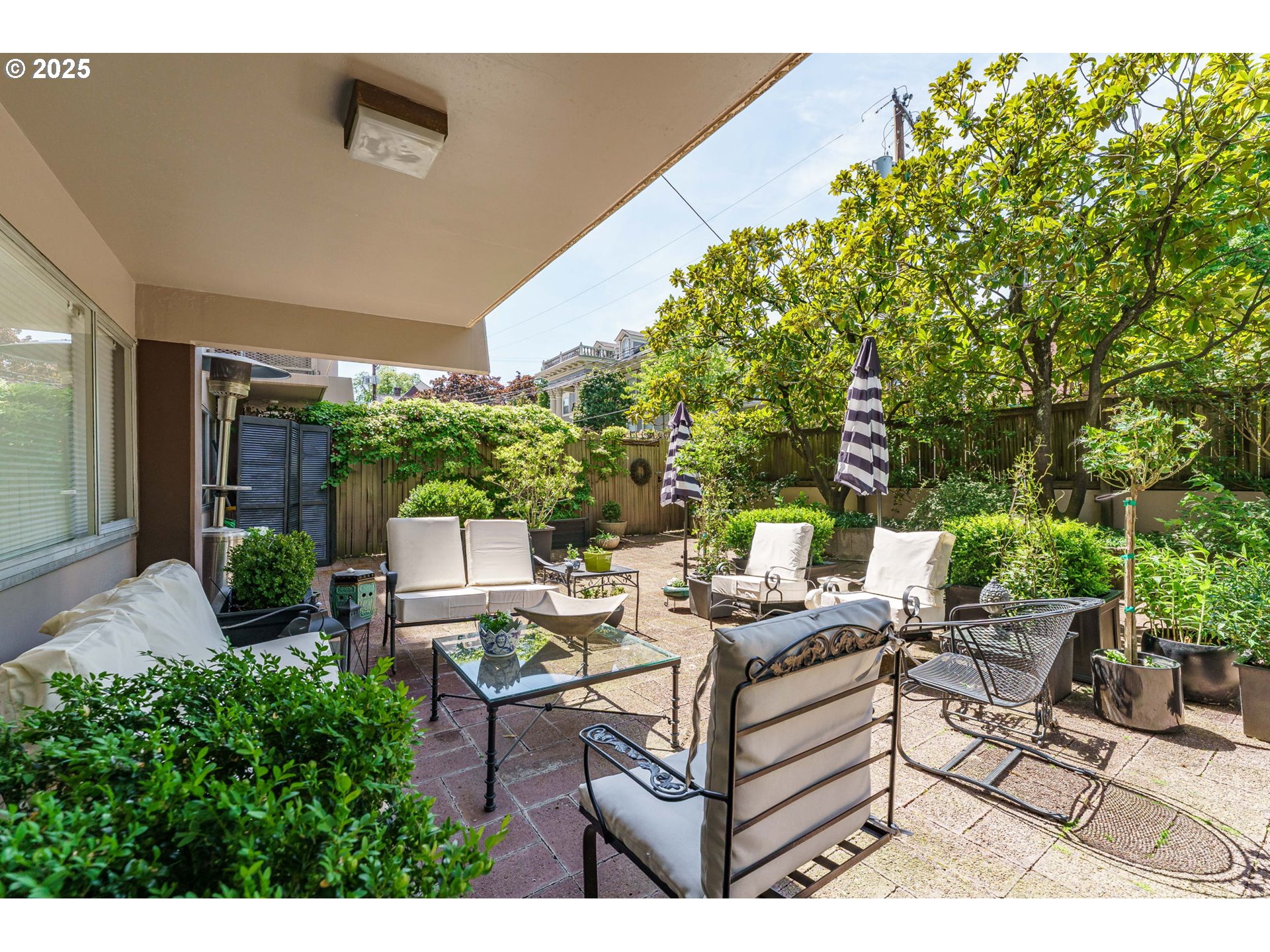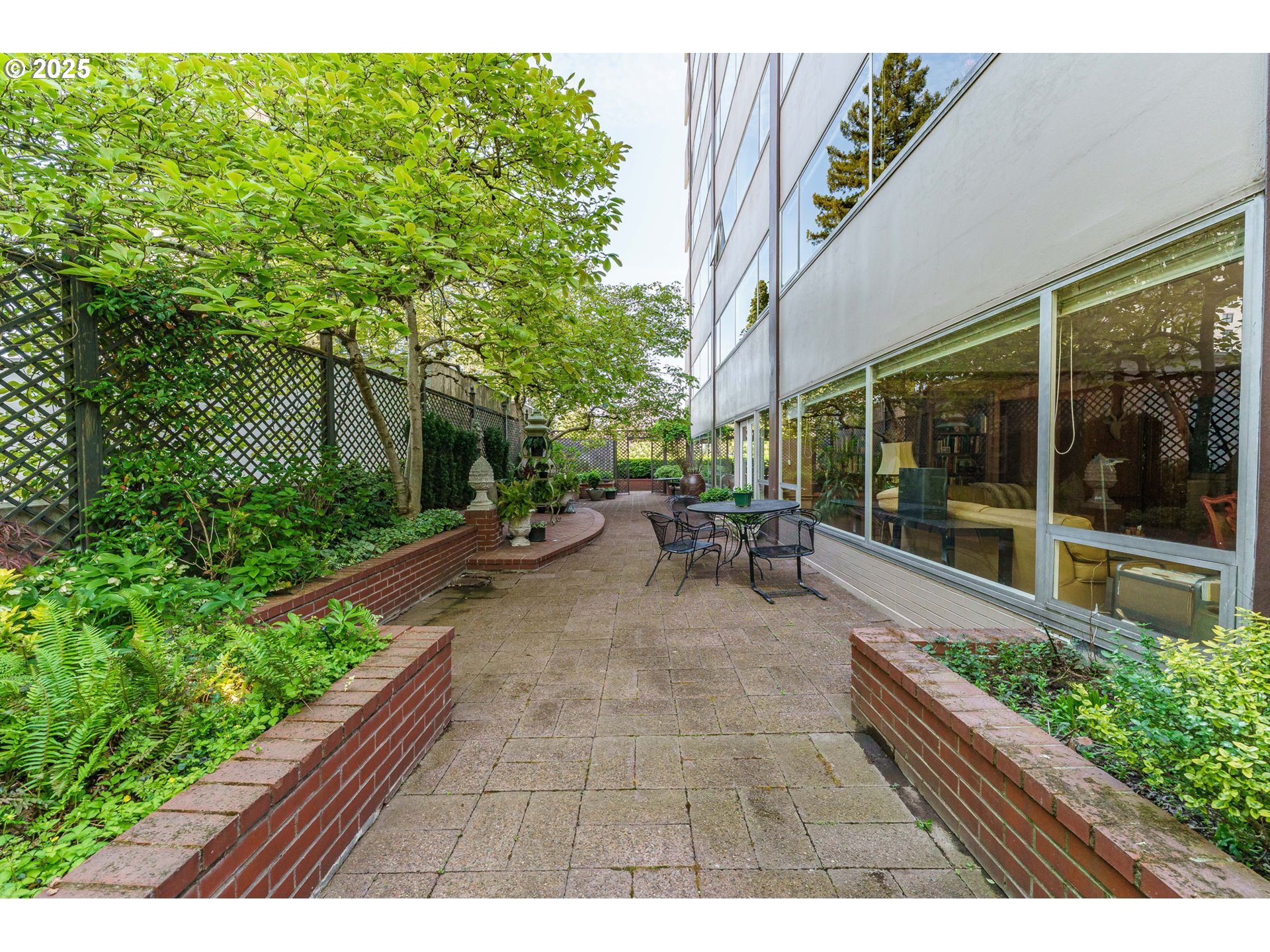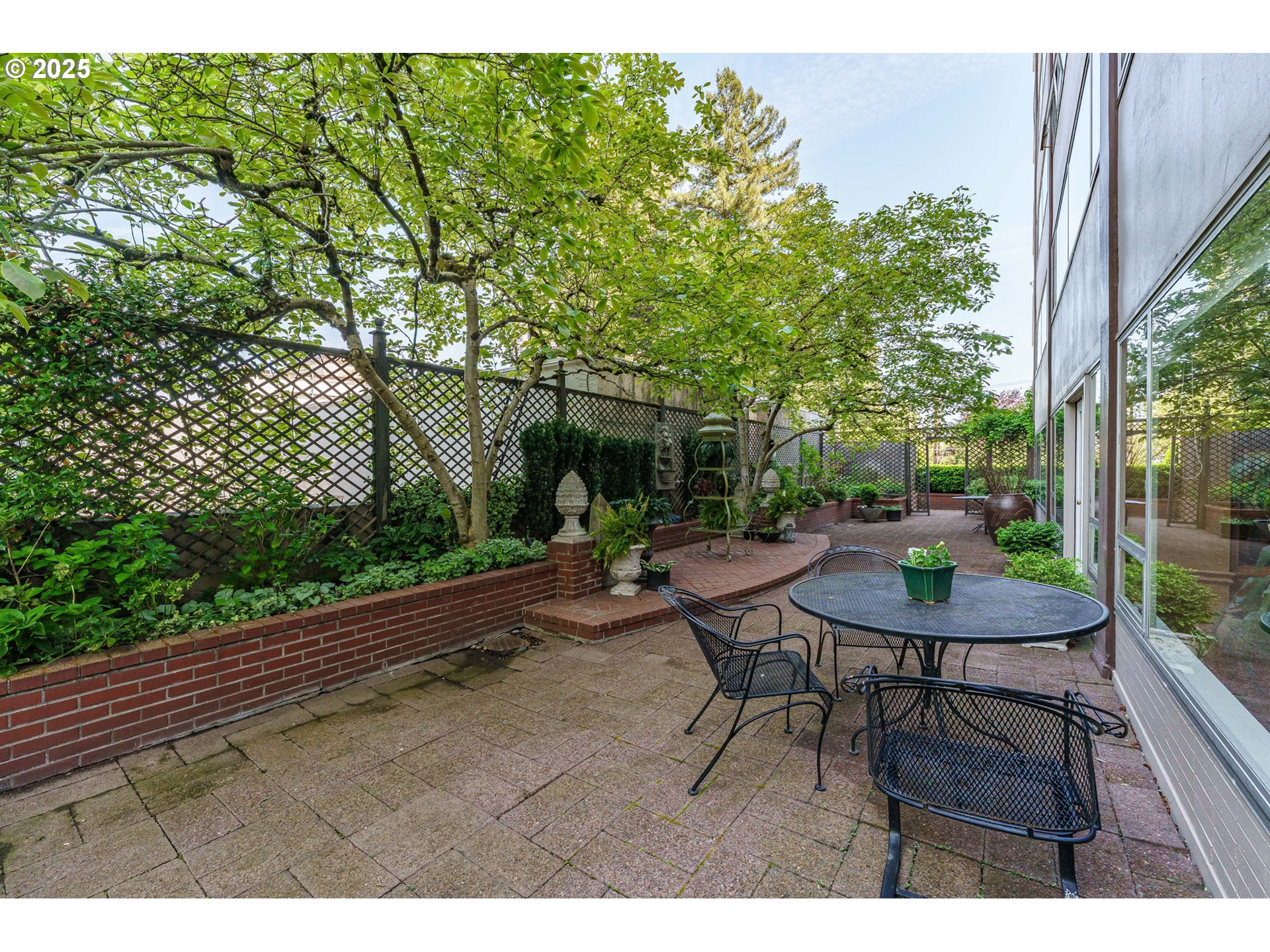 (503) 893-8874Just in: conventional financing available. Prepare to be impressed by this stunning main-level home in the iconic Park Vista Co-operative, located in the heart of downtown Portland. This urban oasis perfectly blends modern luxury with unbeatable convenience.This double unit (105 & 106) lives like a home. Extensively remodeled in 2017, this unique residence features an expanded gourmet kitchen with all-new cabinetry, an oversized quartz island, induction range, built-in microwave, and French doors that open onto a spectacular private 3,500 sq ft patio—ideal for entertaining. Come and go from your private secured entrance to the patio area.Enjoy elegant hardwood floors throughout, a beautifully updated primary bath with a walk-in shower, and walls of windows that flood every room with natural light.Nestled near Washington Park and just steps from Portland's best dining, shopping, and cultural attractions, this rare find offers the ultimate in city living with a peaceful, private retreat. A true hidden gem in the heart of Portland. Monthly dues include: Property Taxes/Insurance, Management/Concierge, Reserves, Cable/Internet, Heat, Sewer, Water, Hot Water, Garbage. Common Areas include: Fireside Lounge & Patio, Workout Room, Community Room, Laundry Room, Library Room.