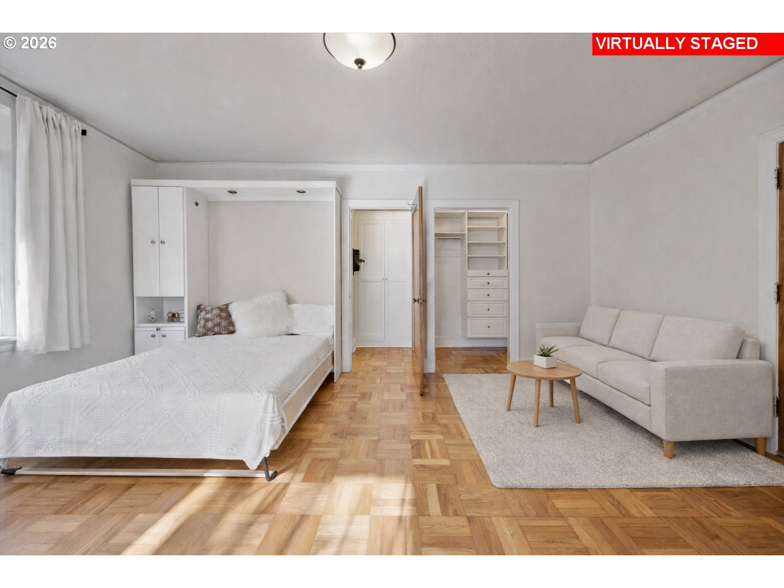 (503) 893-8874Experience city living in the historic Envoy Building — an iconic, nearly 100-year-old Art Deco landmark with a rich and storied history in Portland. As a historically protected building, the Envoy offers timeless architectural character paired with modern urban convenience.This stunning, light-filled corner residence blends vintage charm with thoughtful updates. This unit offers original leaded glass windows, maple parquet floors, and a classic tiled bathroom. The living spaces showcase sweeping territorial and city views. Beautiful east-facing sunlight pours through the windows mid day, creating a warm and inviting environment.Quiet and private — with no neighbors beside or below — the home lives comfortably like a one-bedroom, featuring a custom Murphy bed and a spacious walk-in custom closet. Generous storage throughout enhances functionality without compromising style.HOA dues cover water, sewer, trash, heat, gas, laundry, exterior maintenance, and the care of beautifully landscaped grounds, offering effortless living.Ideally located just steps from Northwest 23rd Avenue’s shops and dining, Pearl District, Washington Park, Providence Park, and the scenic trails of Forest Park, this is truly urban living at its finest — a rare opportunity to own a piece of Portland history while enjoying the very best of city life.