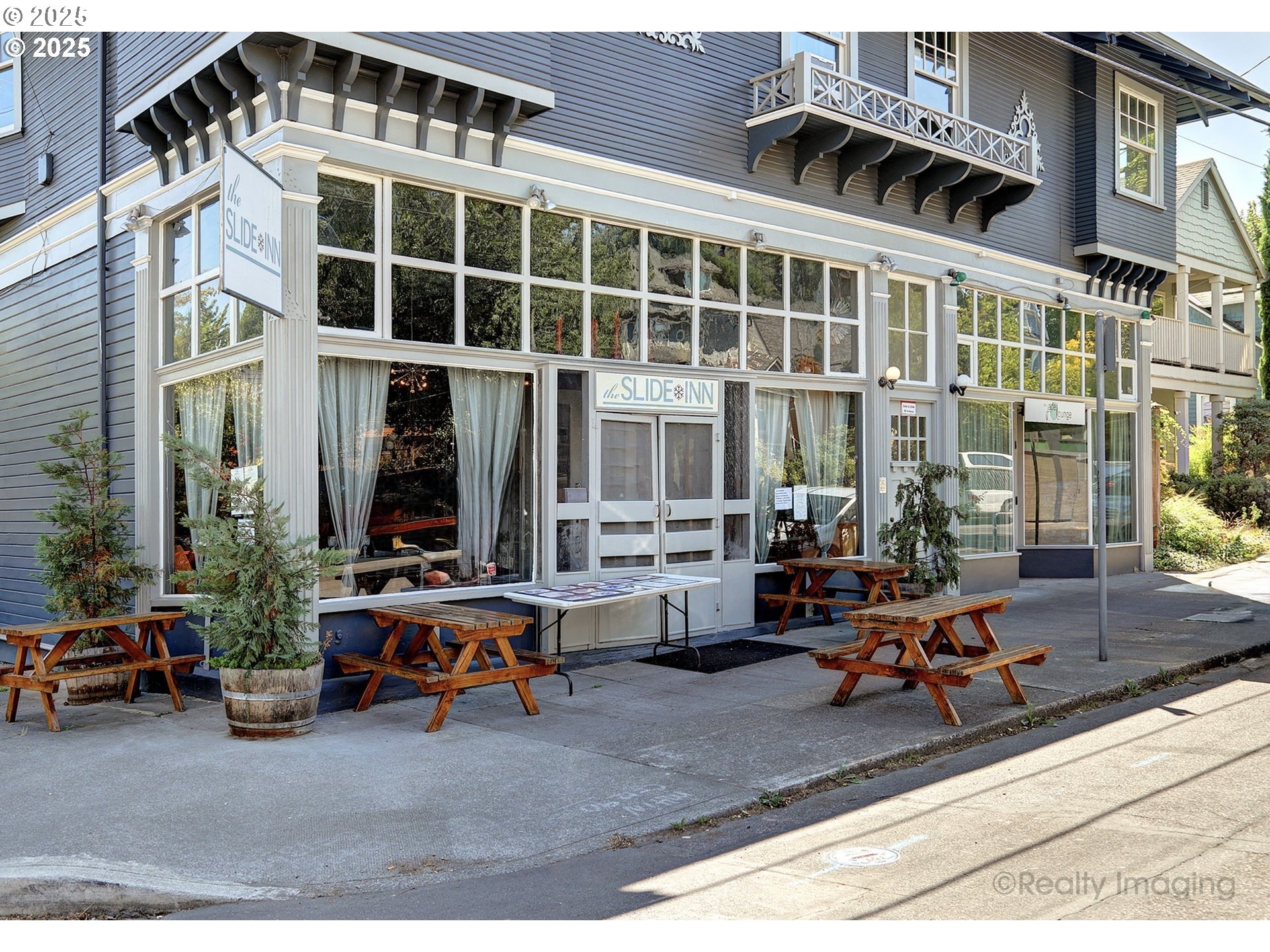 A unique opportunity to own this classic 1908 vintage Portland beauty! Nestled on the corner of SE 23rd and Ankeny, this mixed use building is currently operating as 'The Slide Inn' and 'Jade Lounge' on the main level and offers a remodeled duplex upstairs, which includes two - three bedroom/one bathroom units with stackable washer/dryers, dishwashers, updated kitchens, wood flooring, trim work, molding, tons of character and charm plus balconies! Each apartment rents $2,800/month. In addition to the restaurant, lounge and duplex, there is a one car garage for storage and a large basement spanning the footprint of the building as well as a small office space upstairs. The perfect space - just waiting on personal touches for the next restaurant, bakery, coffee shop, art studio or retail occupant, while collecting the residual income of the two units above! Zoned CM1 - mixed use. Appointment only showings, do not disturb tenants.