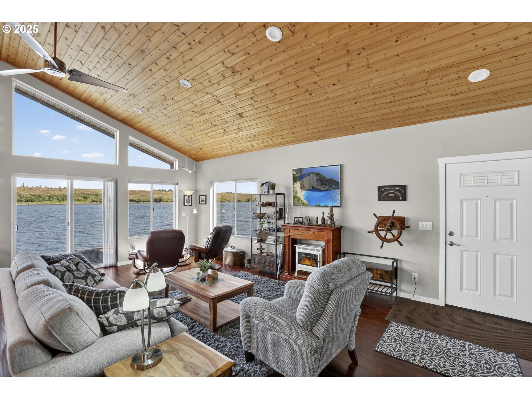 (503) 893-8874Perfectly positioned, properly sized, panoramic river & island views can be found with this 2015 Derrick Morrell built home located at upper section of Rocky Point Marina with amenities included! Join your neighbors for happy hour on the community float, gatherings in the community room, or grab a quick workout in the rec room! Storage building for your paddle craft with rivers edge launch or take off from the front deck! Security with the 15 years remaining on a 3% per annum rent rate increase. A short walk from the base of the ramp brings you to this perfectly sized & appointed home, built in 2015 by renown builder Derrick Morrell. 930sf of outdoor deck space for entertaining & taking in the 180 degree island & river views. A well placed storage shed for the seasonal and maintenance items, built to match the home. A cut out in the swim float provides space for paddle or smaller craft or utilize the community storage building! A low maintenance exterior will keep the maintenance to-do's at a minimum & a newer turnkey home with no immediate needs! 1344sf of well laid out living space includes 2 bedrooms, 2 bathrooms, & great room concept. Upgraded finishes abound with engineered hardwood flooring, granite slab counters & island, and walk in primary bath shower. Both bedrooms have cozy carpeting & a mini split keeps temps moderated in all seasons! The original owner added a pocket door from the secondary bedroom to the bathroom for flow & function, and the great room is open and spacious with vaulted tongue & groove wood clad ceilings. Views abound from the great room & exterior spaces, relish in the tranquility of your water centric island view location! Explore the lakes & canals on Sauvies Island, stop in for fresh produce at the seasonal farmer's markets, or find all services & daily needs a short distance to NW / N Portland & Scappoose town central! Laid back river living awaits! Furnishings negotiable.
