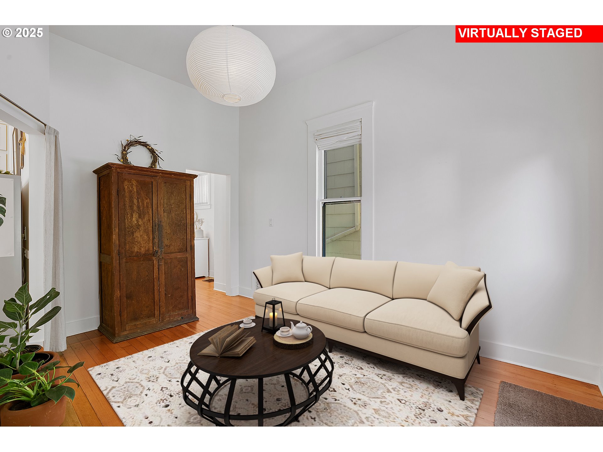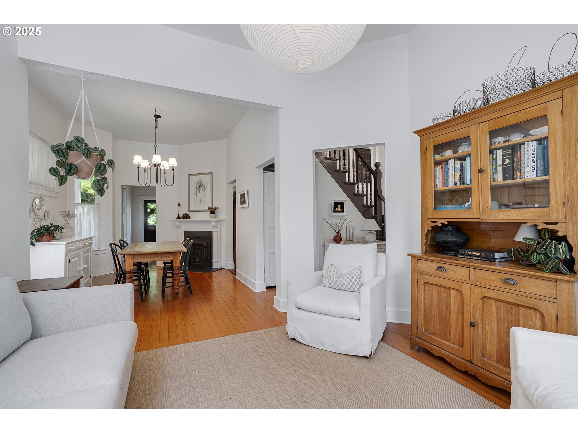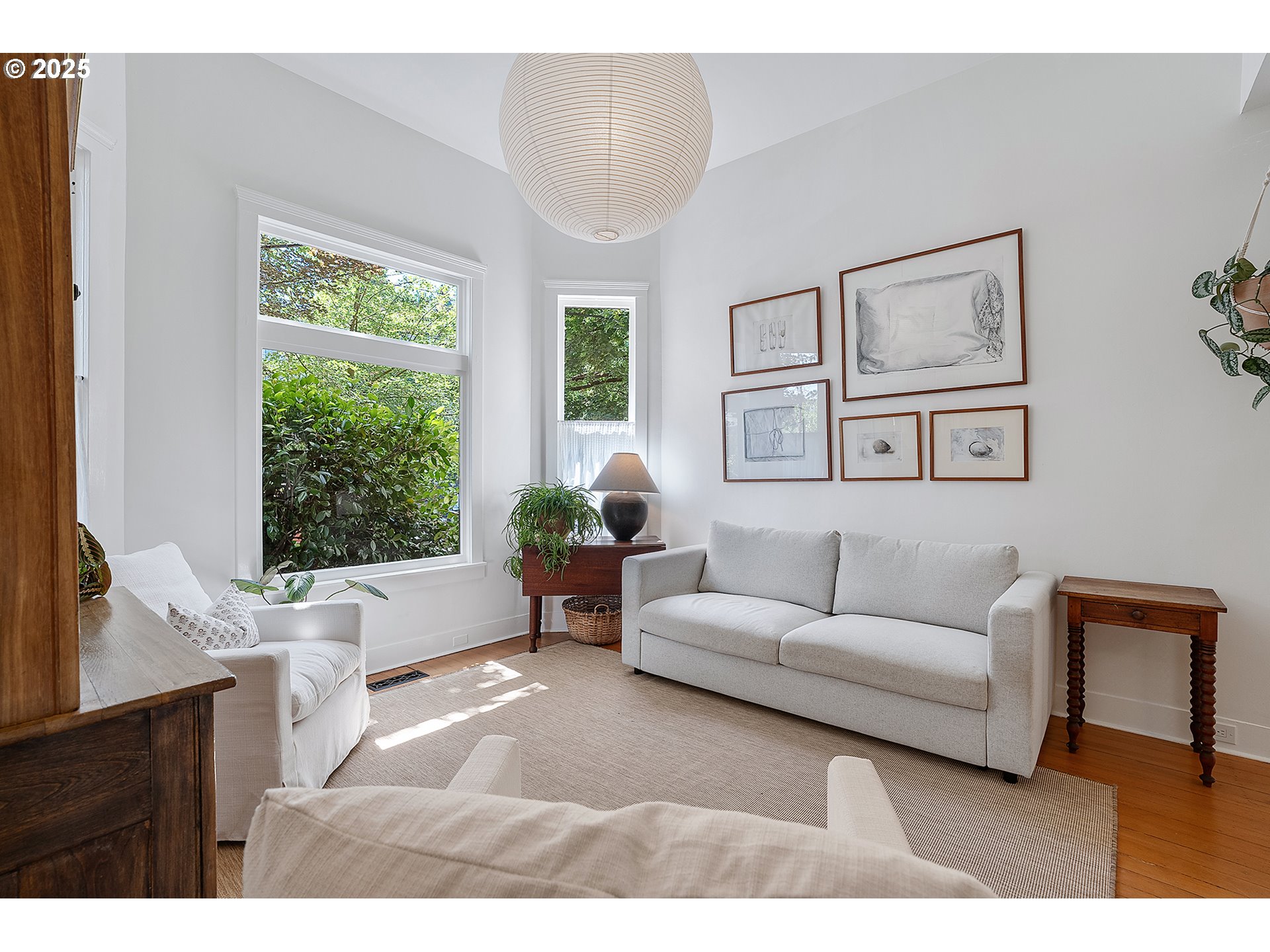 Welcome to 2373 NW Johnson St, a masterfully restored 1888 Victorian in the heart of one of Portland’s most coveted neighborhoods. Just steps from the vibrant shops and restaurants of NW 23rd Ave, this historic gem blends timeless charm with high-end modern living. Inside, you'll find soaring 11-foot ceilings, original hardwood floors on the main level, and beautifully updated finishes throughout. Natural light pours through the large windows, softened by custom shades on every window. Thoughtfully curated lighting—including handmade ceramic lighting fixtures from DeVOL, along with fixtures from Rejuvenation and Design Within Reach—adds warmth and sophistication to every room. Perhaps most impressive is the addition of central air conditioning—a rare amenity in a historic home. The partially finished basement includes a laundry room and offers the potential for a home office, gym, or media room. Outside, a freshly landscaped backyard provides a quiet retreat, making it easy to forget you're in the heart of the city. The sellers are to gift a reserved space for 1-year at a nearby apt lot so buyers can avoid street parking. With a recently serviced HVAC system, newly cleaned roof, new sewer line, electrical updates, and fresh interior paint, this home is truly move-in ready. Rich in character and full of modern comforts, this one-of-a-kind Victorian is a rare find in Portland’s beloved Northwest District.Buyers, take advantage of a NO COST RATE BUY DOWN with our preferred lender—enjoy a lower mortgage rate for the first year, saving you money upfront! Ask agent for details! This is capped at conventional loan amounts and can't be used on a jumbo loan. [Home Energy Score = 9. HES Report at https://rpt.greenbuildingregistry.com/hes/OR10196929]