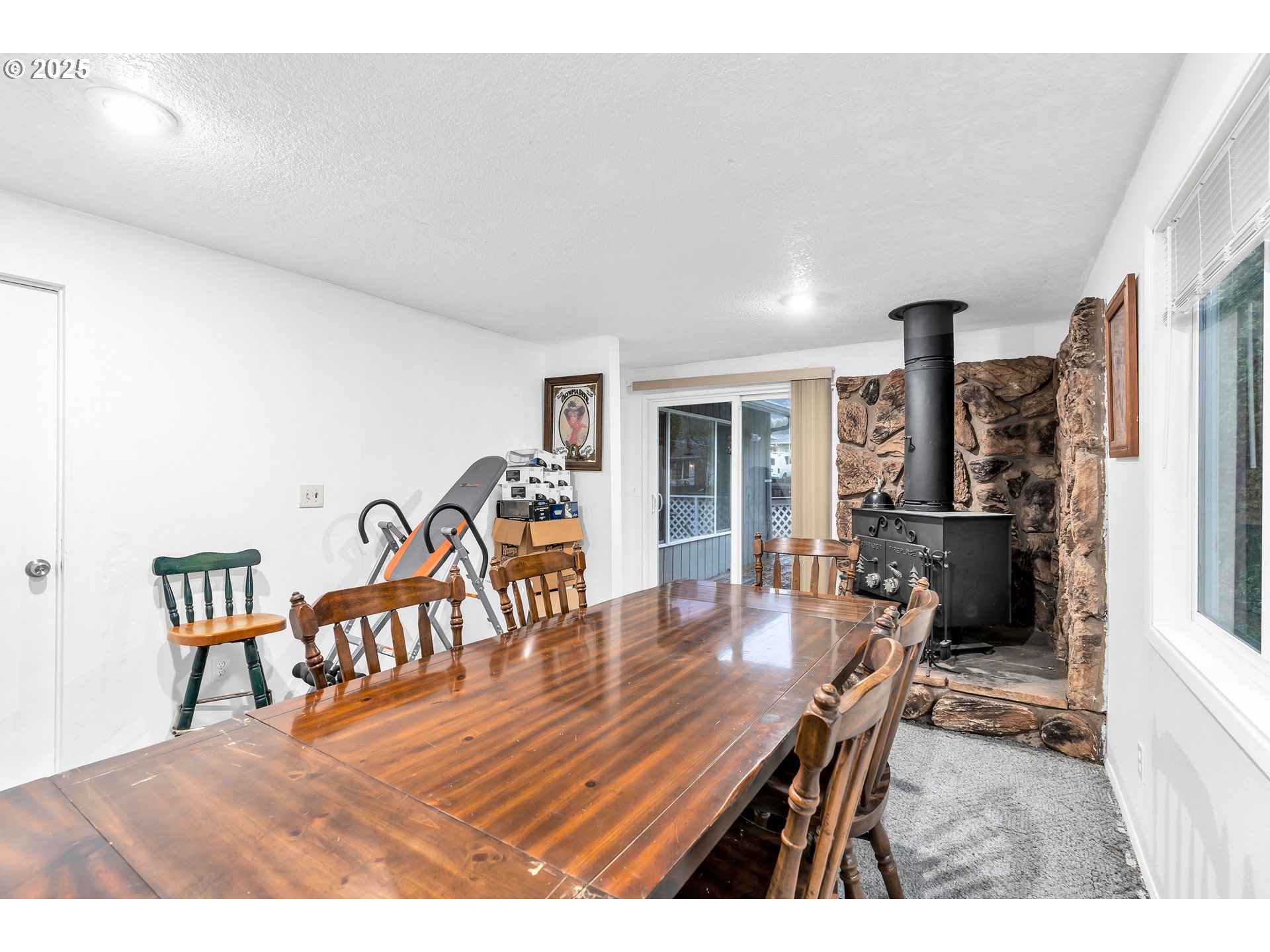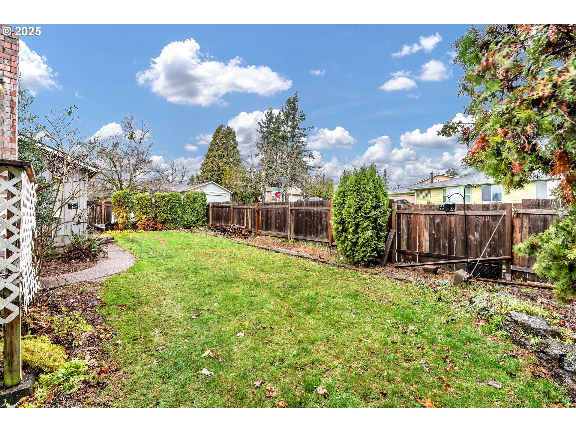 Charming single-level home with 3 spacious bedrooms and multiple living areas. The living room features wall-to-wall carpet, a fireplace, and oversized windows that fill the space with natural light. The L-shaped kitchen and dining area boast laminate flooring and an open-concept layout, perfect for cooking and entertaining. A cozy family room with wall-to-wall carpet, wood-burning stove, oversized window, and sliding doors opens to a back deck. All bedrooms are generously sized, with the primary suite offering a ceiling fan, oversized window, and ensuite bath with walk-in shower. Additional features include washer and dryer hookups in the garage and a large fenced backyard—ideal for relaxing or entertaining.