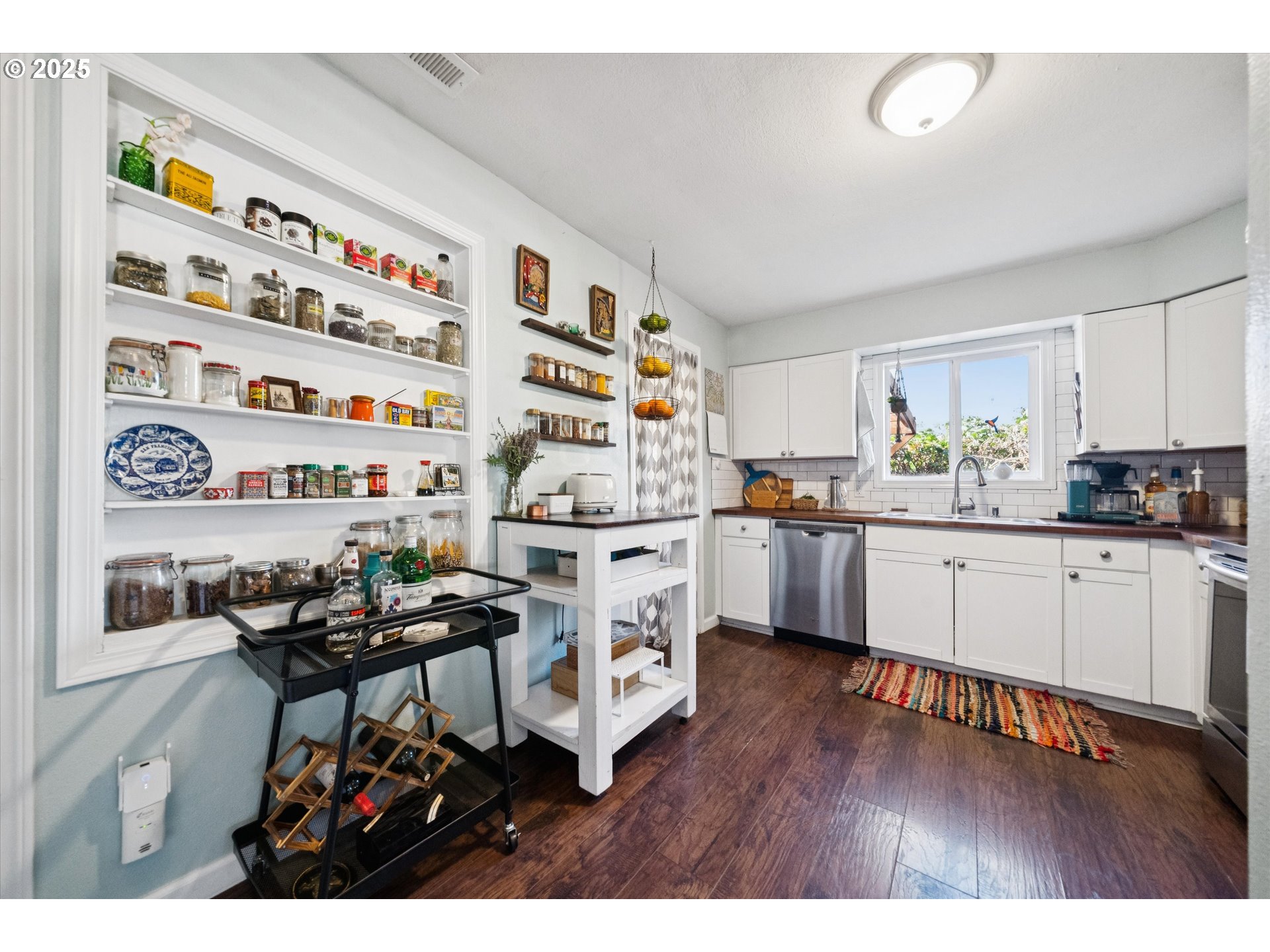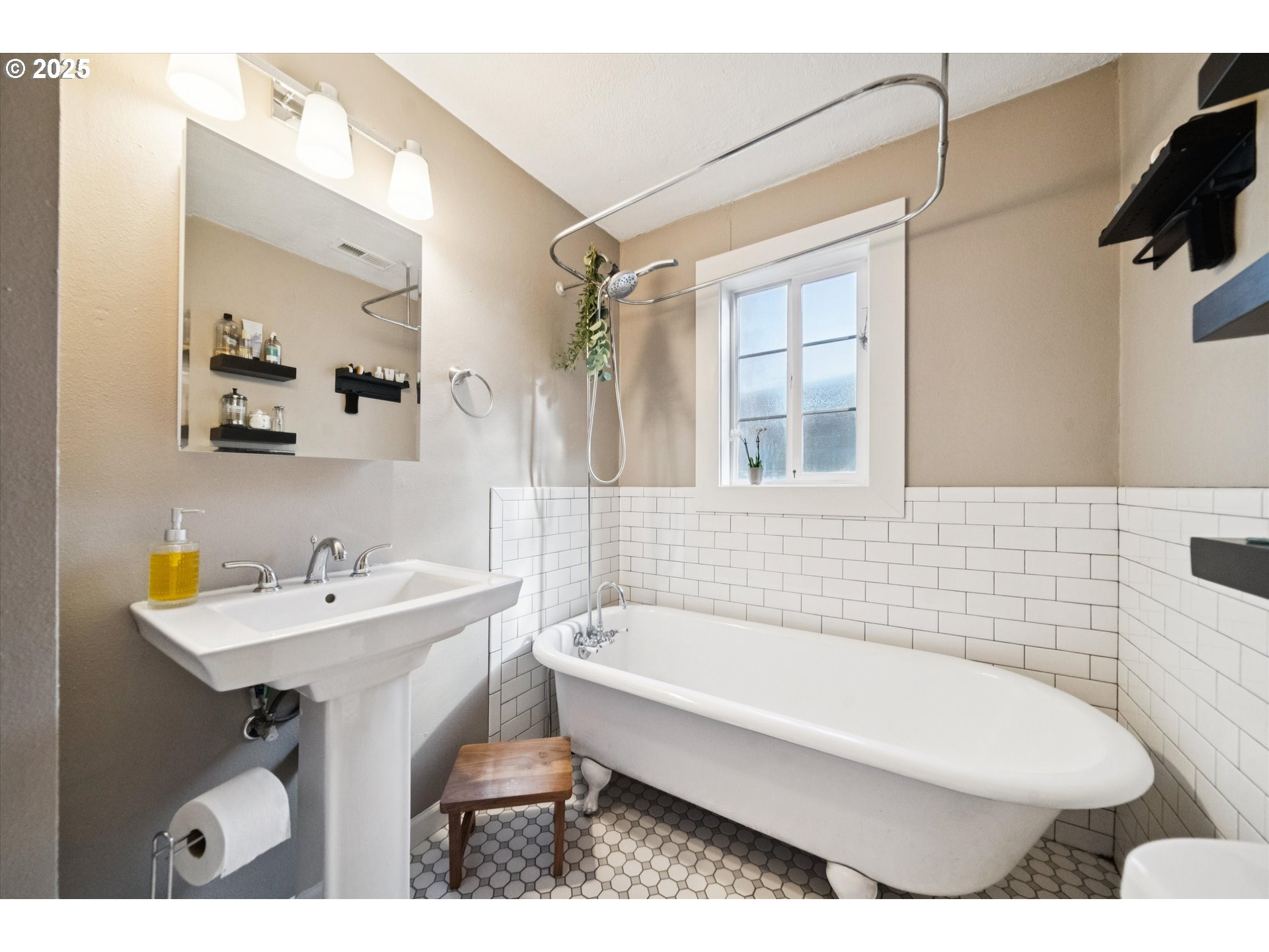 Say hello to this charming, remodeled urban cottage! Featuring two main-floor bedrooms plus a finished attic/bonus space (office/third bedroom/cozy hangout), this cheery home has a little something for everyone. The crisp, renovated kitchen blends character and functionality with stainless steel appliances and efficient storage, while the vintage-style bathroom showcases a classic clawfoot tub.Outside, enjoy a fully fenced and landscaped yard with garden beds, a storage shed, multiple patios, and more. Nestled on a quiet street with easy access to dining, coffee, bakeries, shopping (Mall 205), higher education (PCC), Mt. Tabor, transit, and arterials, this home is a FANTASTIC value! Enjoy [mostly] main-level living with the city at your fingertips.This home also features a brand-new high-efficiency furnace and central A/C, plus storage galore. [Home Energy Score = 6. HES Report at https://rpt.greenbuildingregistry.com/hes/OR10206106]