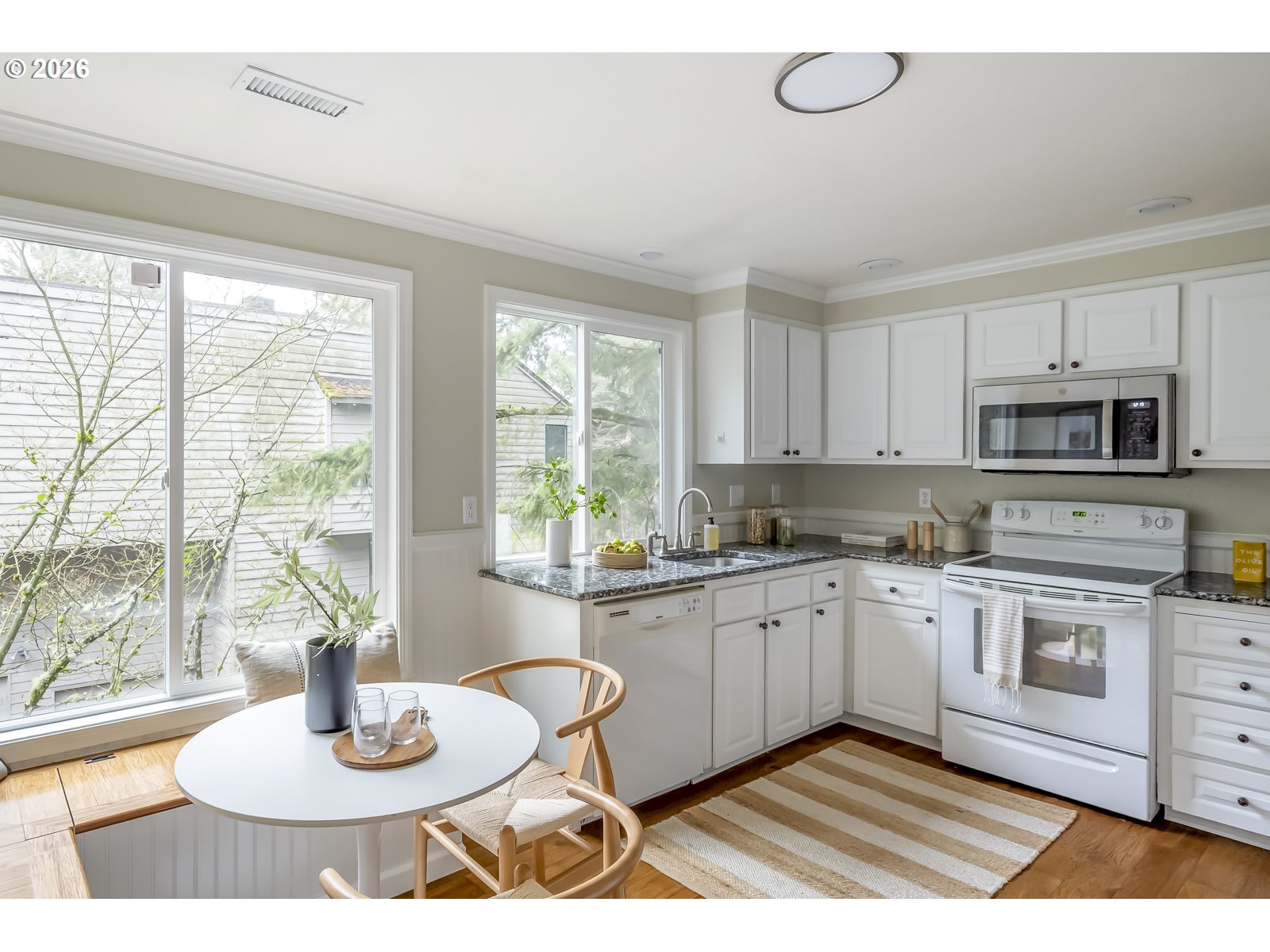 (503) 893-8874Welcome to this bright Mountain Park condo featuring vaulted ceilings, an open layout, and lots of natural light. The ensuite primary bedroom includes a spacious walk-in closet, and the living room features large windows and a wood-burning fireplace, making it the perfect place to spend a cozy winter morning. Enjoy peaceful tree views from your private balcony and take advantage of nearby amenities including hiking and biking trails, parks, and shopping. With low HOA dues and an easy drive to downtown Lake Oswego and Portland, this home blends comfort and convenience in a beautiful wooded setting. Recent updates include new hardwood floors, French doors to the patio, refrigerator, dryer, and garage door motor.