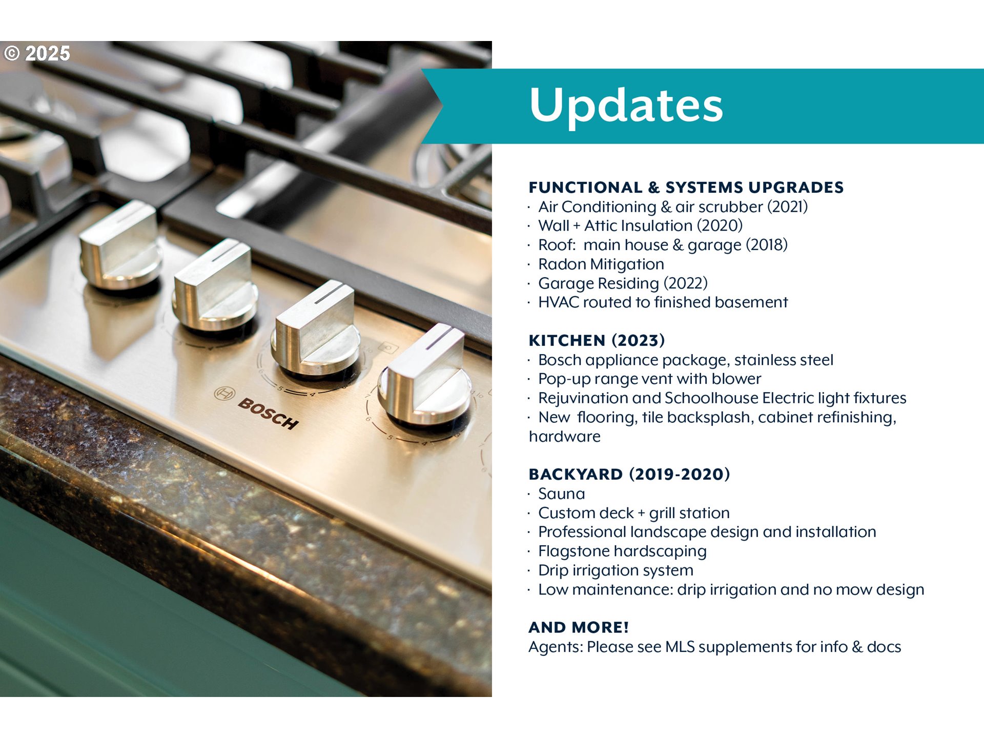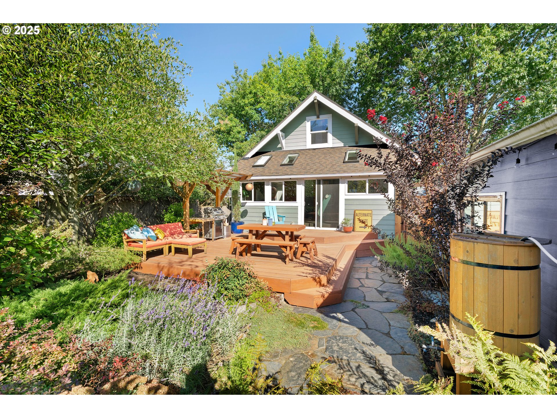 (503) 893-8874Just two blocks from Kenton Park and the vibrant mix of shops & eateries along Denver Ave, this updated craftsman bungalow offers the perfect blend of history, style, and modern comfort. Highlights include a magazine-worthy kitchen w/adjoining sunroom, a finished basement, dreamy backyard oasis with home sauna, detached garage, and a long list of functional upgrades. As you approach the home, a spacious front porch welcomes you—perfect for gathering with friends or curling up with a book on a rainy Portland day. The main level opens up to a large living/dining area anchored by a wall of built-in cabinetry, adding both storage and architectural character. Thoughtful touches like Rejuvenation and Schoolhouse Electric lighting throughout bring warmth and Portland charm. The chef’s kitchen, renovated in 2023, features premium Bosch appliances, ample pantry storage, and an adjoining sunroom that feels straight out of a Folgers commercial—use it as a dining nook, play area, home office, or art studio to keep you connected with your loved ones while preparing meals. A wall of glazing and sliding glass doors frame the lush backyard, professionally redesigned in 2020 with low-maintenance landscaping, large deck w/covered grilling station, and flagstone pathways leading to a sauna—the ultimate luxury wellness escape tucked into your own private oasis. Upstairs, the spacious primary bedroom features a walk-in closet and a footprint large enough to add an en suite bathroom above existing plumbing (buyer to verify). The lower level offers a finished basement with a bonus area for cozy movie nights, along with an unfinished storage room showcasing the waterproofing system, radon mitigation, and updated plumbing and electrical. Additional updates include air conditioning (2021), wall and attic insulation (2020), newer roof on the main house and garage (2018), and garage residing (2022).Fantastically situated and thoughtfully updated, this home is a true gem! [Home Energy Score = 3. HES Report at https://rpt.greenbuildingregistry.com/hes/OR10051917]