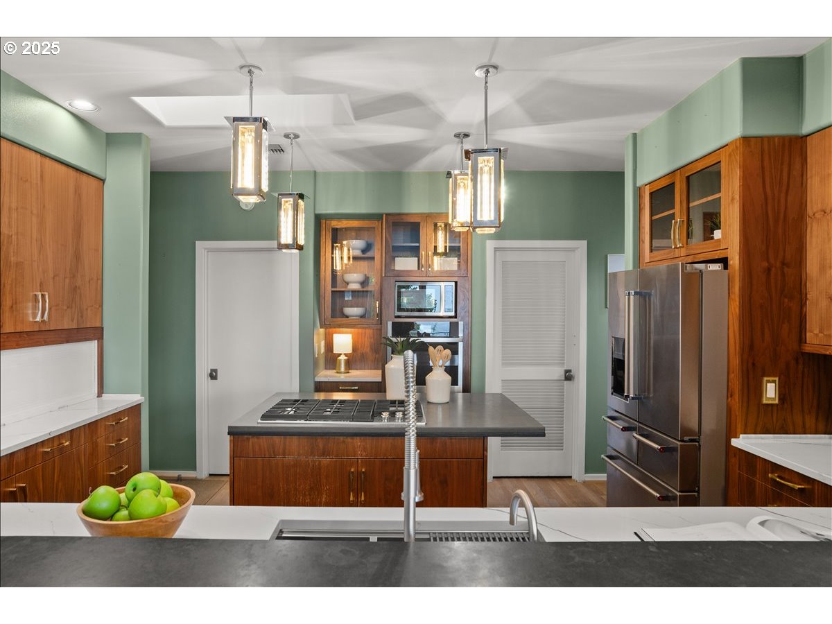 ApplianceGarage, BuiltinRefrigerator, Cooktop, Dishwasher, DoubleOven, Island, Microwave, Pantry, Quartz, Tra
