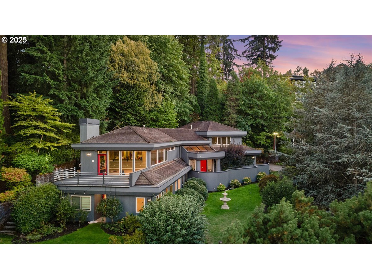 Live effortlessly in this one-of-a-kind Portland Heights residence, a home that blends contemporary urban design with natural serenity. Thoughtfully planned and superbly executed by renowned Oregon designer Steve Van Sant, this property showcases generous rooms, handsome built-ins, and walls of windows framing breathtaking views of the city and mountains. Perfectly positioned at the end of a private drive and bordering protected woodlands, the home offers rare privacy and elegance. The gated exterior offers a level lawn, expansive decks, and lush gardens—an ideal setting to enjoy the beauty of the natural surroundings. Distinguished by architectural detail, refined finishes, and seamless integration with its natural setting, this property offers both artistic sophistication and timeless comfort—while being only minutes from parks, trails, downtown, hospitals, schools, NW Portland, and the high-tech corridor. [Home Energy Score = 4. HES Report at https://rpt.greenbuildingregistry.com/hes/OR10026654]