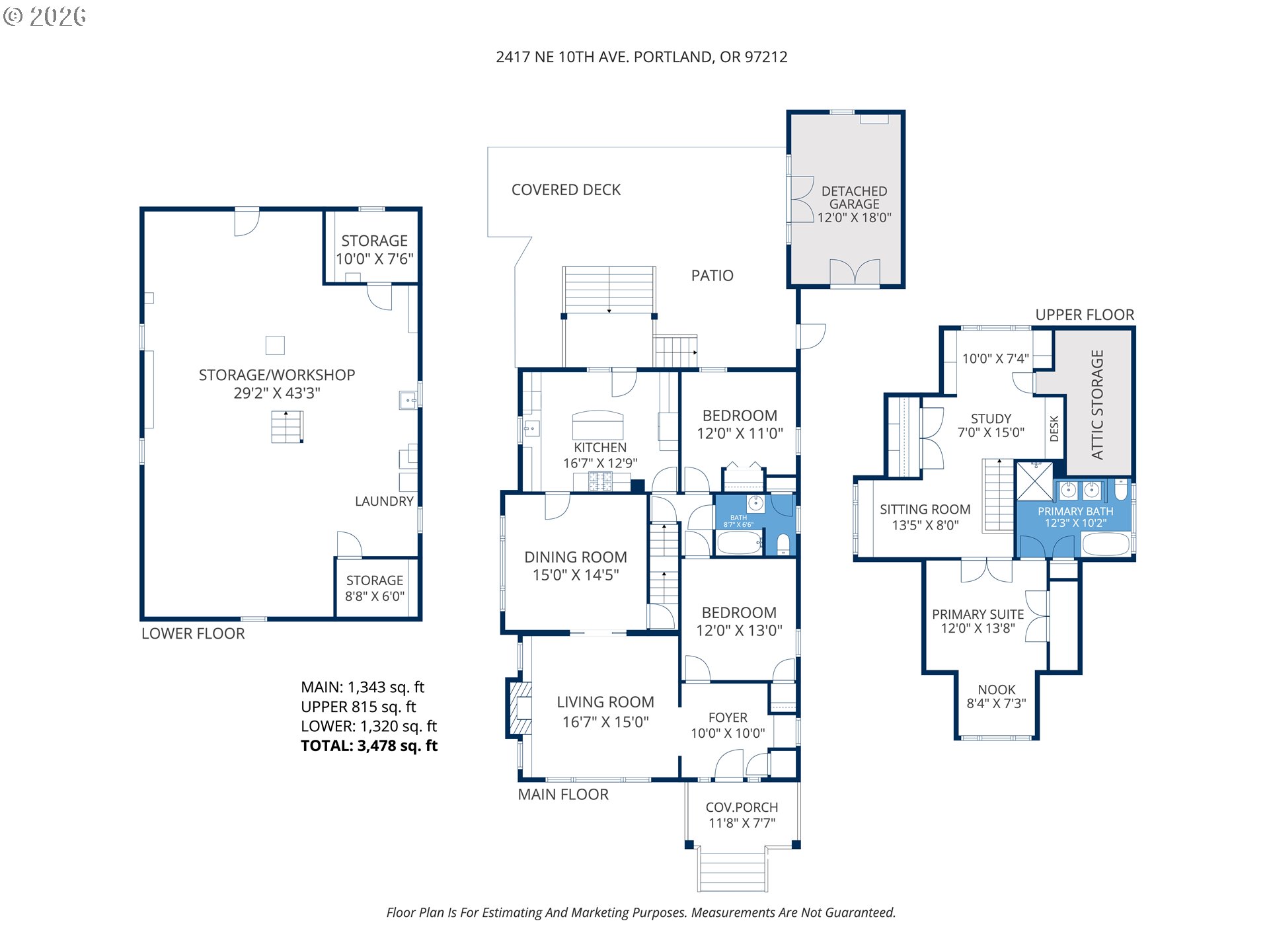 Beautiful, well-maintained Craftsman home with high-quality modern systems and period charm. Many original details intact, including recently refinished narrow-plank fir floors, architectural windows and high ceilings. Living room features premium gas fireplace with remote control and built-in bookcases. Large dining room with original glass pocket doors and south windows for loads of light. Thoughtfully designed kitchen includes concrete countertops, island with eating bar, custom pantry and stainless-steel Bosch appliances. Main floor bathroom has pristine tile, beadboard wainscoting and large linen closet. Enormous three-room primary suite includes brand-new carpeting, built-in desk in office space, lots of storage and quiet sitting area, plus operable skylights. Primary bathroom with clawfoot tub, separate shower, two sinks and beautiful custom tile work. Professionally landscaped gardens feature spectacular lighting, mature plants and trees, covered porches, bluestone paver patio and large covered dining pergola with well-maintained wood decking. Many other features including security system, HE washer and dryer, sprinklers and drip irrigation system, zoned HVAC system, plenty of off-street parking and single-car detached garage with French doors to patio. Large unfinished dry basement with oversized farm-style utility sink, above-ground windows and exterior entrance. Quiet, tree-lined street in historic neighborhood. Walk to Irving Park, Irvington Elementary School, restaurants, coffee, and Broadway shops. Close to transit. Don’t miss this one! [Home Energy Score = 5. HES Report at https://rpt.greenbuildingregistry.com/hes/OR10245910]