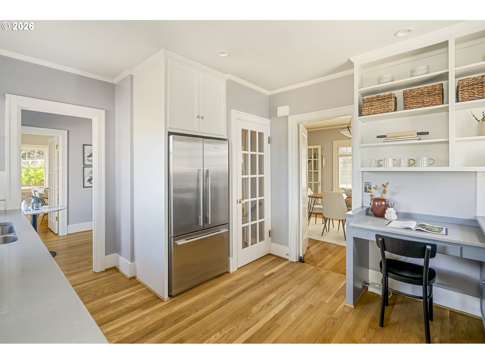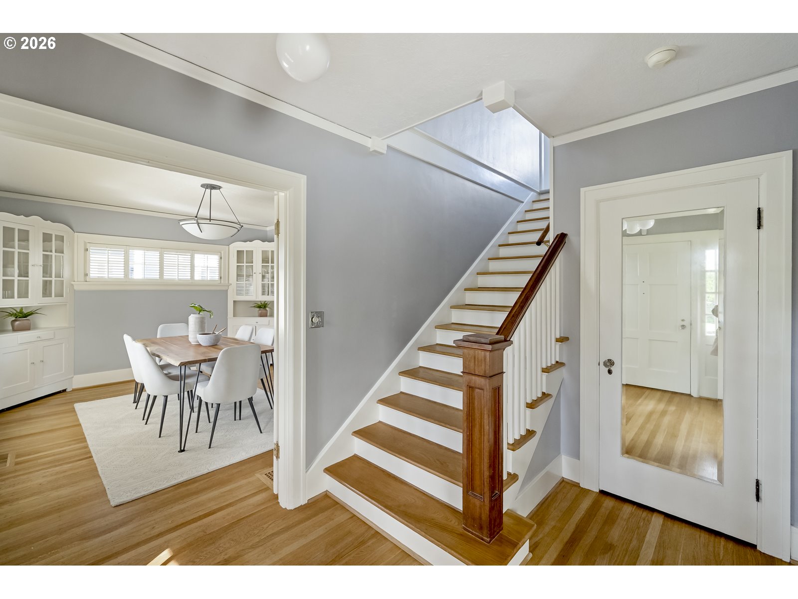 (503) 893-8874Charming 1923 Dutch Colonial with a classic layout and a beautiful backyard. The main level features a spacious living room with a wood-burning fireplace, a formal dining room with lovely period details, an updated kitchen, and a convenient half bath. Upstairs, you’ll find three bedrooms and a full bath, including a generous primary suite with an ensuite bathroom. The remodeled lower level offers flexible living space with a private office and a family room featuring a Murphy bed that can be closed off for guests. This level also includes a full bathroom and a dedicated laundry room, complete with a laundry chute from the top floor to the basement with access points on each level. Set on an oversized lot, the thoughtfully landscaped yard is inspired by an English garden and features two distinct outdoor entertaining areas.