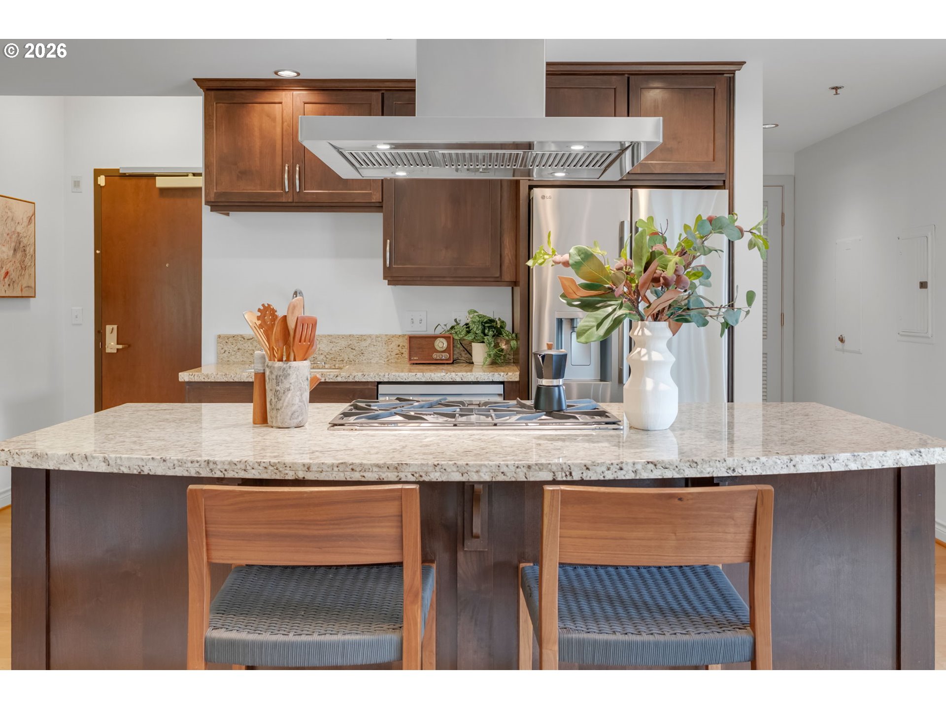 (503) 893-8874Rare 2/2 "Un-Condo”-Condo in heart of NW's Alphabet District Lives like a home, not a condo. Elegant ground-level corner unit with a view at the sought-after Cambridge, featuring a super convenient private side entrance. With no shared walls it is exceptionally peaceful. You have an open floorplan that flows effortlessly, incorporating a dining area, living room and eat-in bar, all bathed in beautiful natural light and surrounded by gorgeous trees. Hardwood floors, two full baths, and a fantastic back balcony with city skyline views and a peek of Mt. Hood -- all framed by charming Georgetown-style brick.Two parking spaces + storage. Brand new LG fridge with designer ice. Whisper-quiet dishwasher. Walk to Zupan’s, Smith Teamaker, Elephant’s Deli, and NW 23rd in minutes. Tree-lined, quiet, and endlessly charming—this is NW Portland living at its finest, with a well-run, thoughtful and inclusive HOA that covers exterior maintenance, gas, hot water, insurance, grounds, sewer and trash.