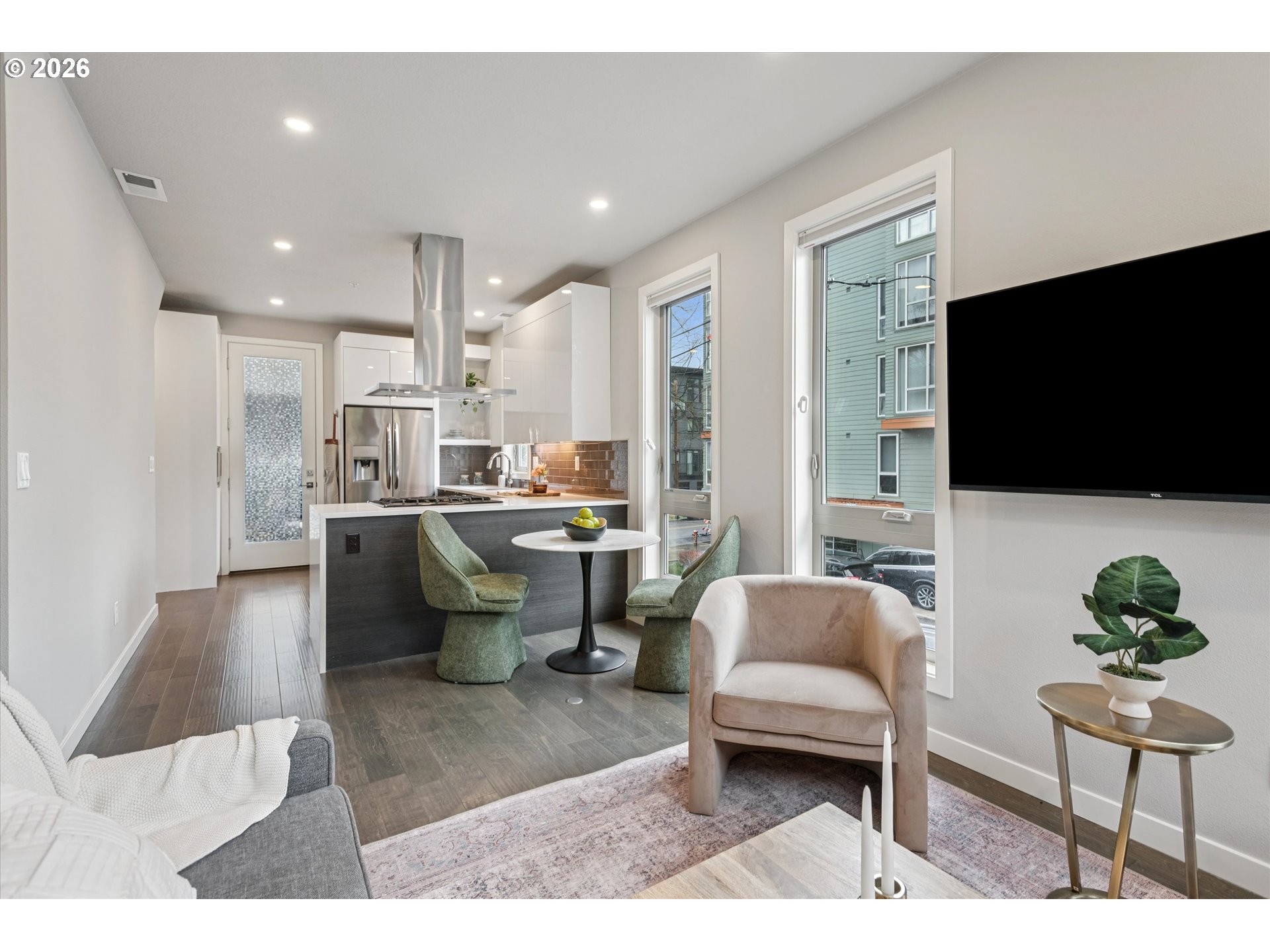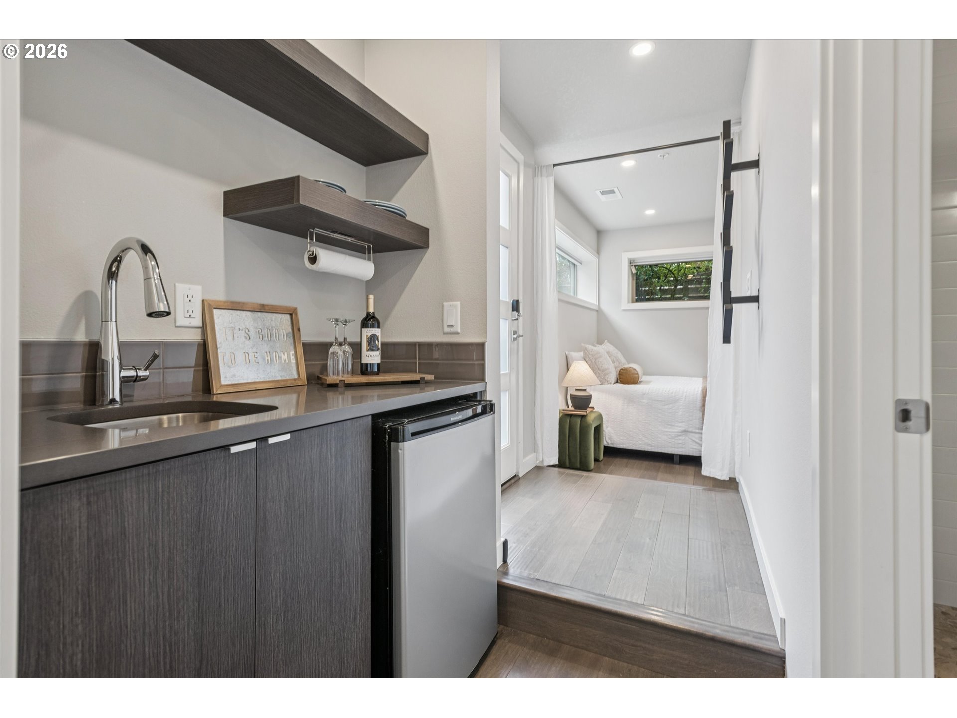 Enjoy carefree urban living in this classy modern townhouse that puts you right in the heart of the action while remaining set back and insulated from the bustle of Division. Built with quality materials and a sleek, stylish design, this home offers a customizable floorplan adaptable to many options. The ground floor spaces can function as a permitted ADU allowing for short-term rentals, home-based business, or private guest suite while able to seamlessly integrate into the rest of the home. The open floorplan on the main level with modern kitchen and covered patio leads to your top floor sanctuary with oversized picture windows bringing the light of the neighborhood in. Where else can you live that offers the flexibility of a client-ready business or a separate short-term rental space along one of the hippest streets in the city with lock-it-and-leave ease? A unique opportunity perfectly positioned in an unbeatable location with some of the city’s best restaurants and retail just steps away. [Home Energy Score = 8. HES Report at https://rpt.greenbuildingregistry.com/hes/OR10181632]