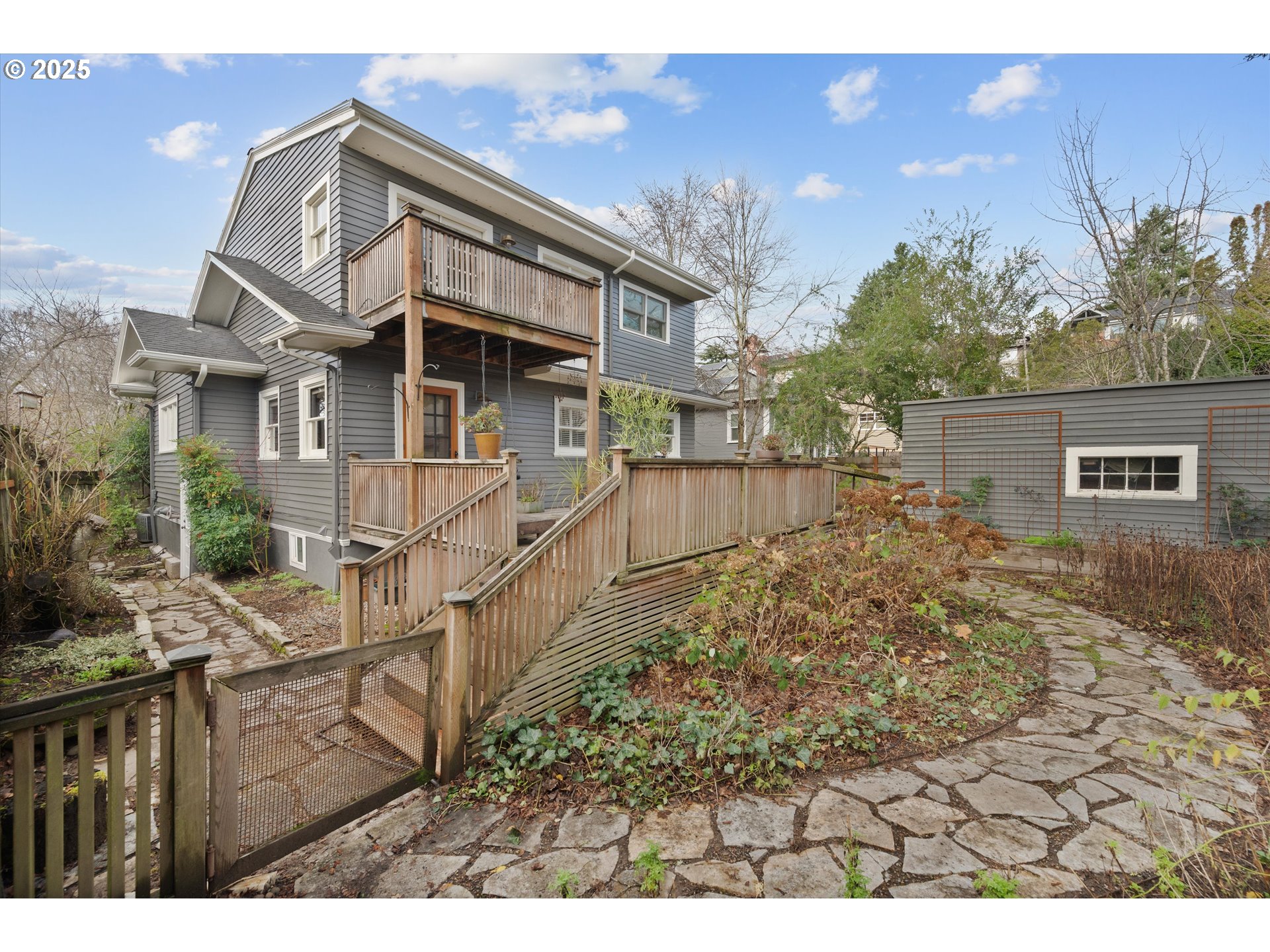 A true boutique bungalow on a classic NE Portland tree-lined street just below the Alameda Ridge, this restored 1920s home blends original craftsmanship with curated modern upgrades for a turnkey lifestyle. The main level offers a bright, thoughtful floorplan with maple floors, original windows, and a gas fireplace. The light-filled chef’s kitchen features honed marble counters, a farmhouse sink, generous storage, and high-end appliances including a new Miele dishwasher. A connected family room opens to the outdoors, and a versatile main-level room serves as a 4th bedroom or office alongside a full bath with clawfoot tub.Upstairs are three bedrooms, including a serene primary suite with private balcony. Bathrooms feature programmable radiant heated floors, with newer carpeting, built-ins, and a charming storybook hideaway between bedrooms. The finished lower level includes a large family/media room with projector. Wellness upgrades include a Swiss whole-house HEPA filtration system, UV air purification, whole-house water filtration, and a new water heater with expansion tank.Outdoors, enjoy a spacious deck, detached garage, irrigated garden, mature wisteria, and fresh interior/exterior paint. Abundant storage throughout; all furniture negotiable. With a Walk Score of 91 and close proximity to cafés, parks, and the Alameda Ridge, this home offers boutique design, historic character, and modern comfort in one of NE Portland’s most cherished pockets.