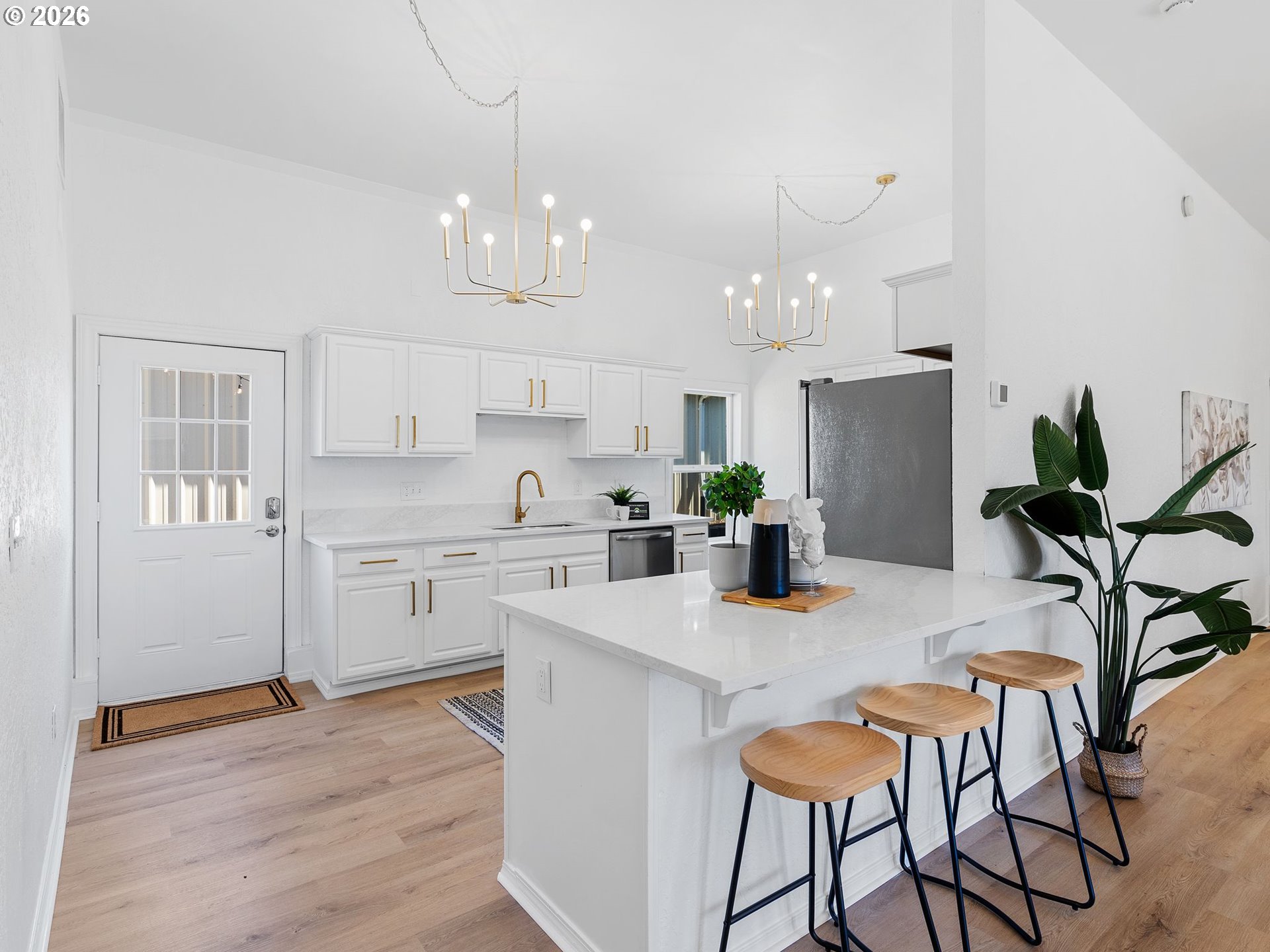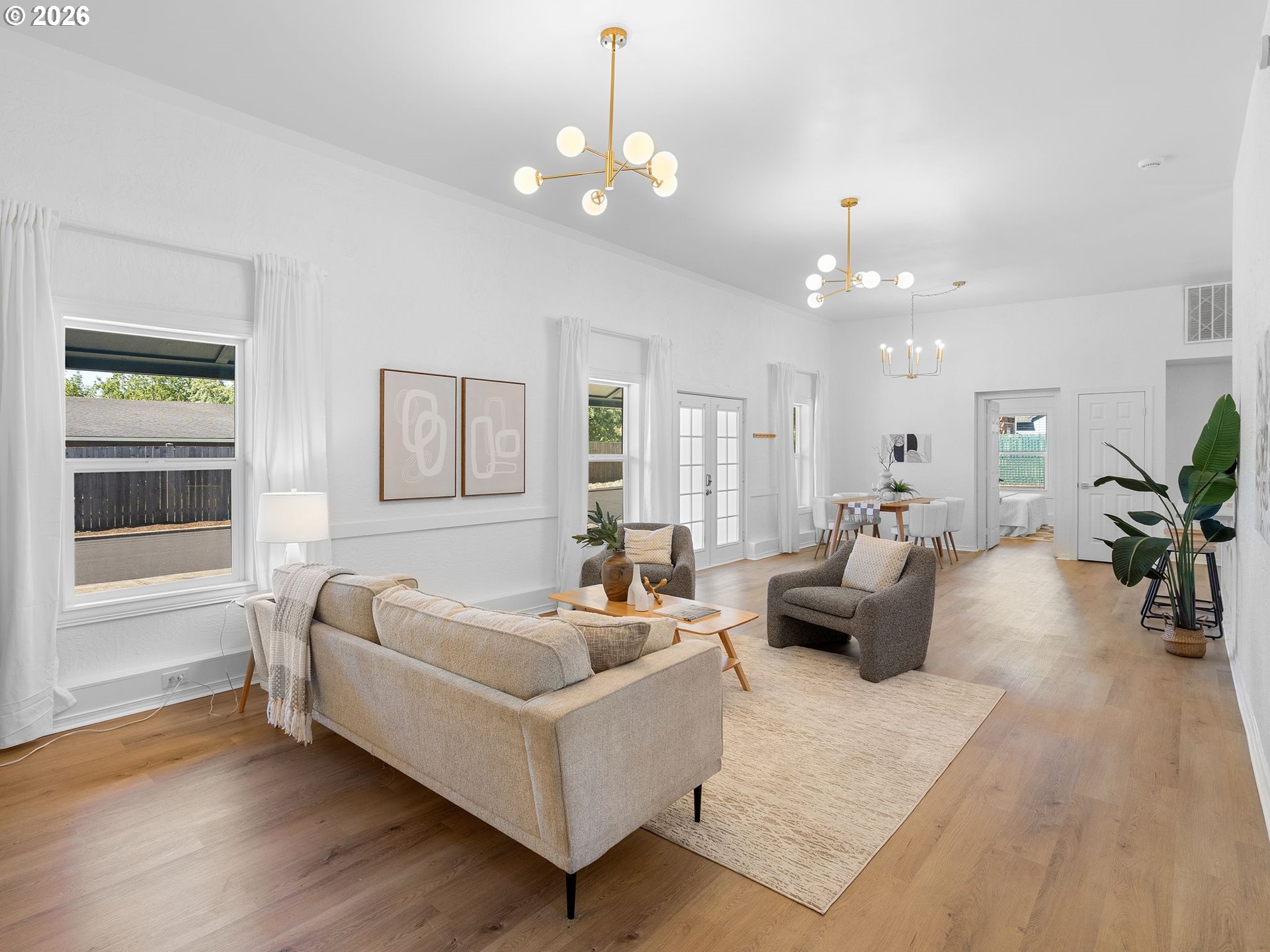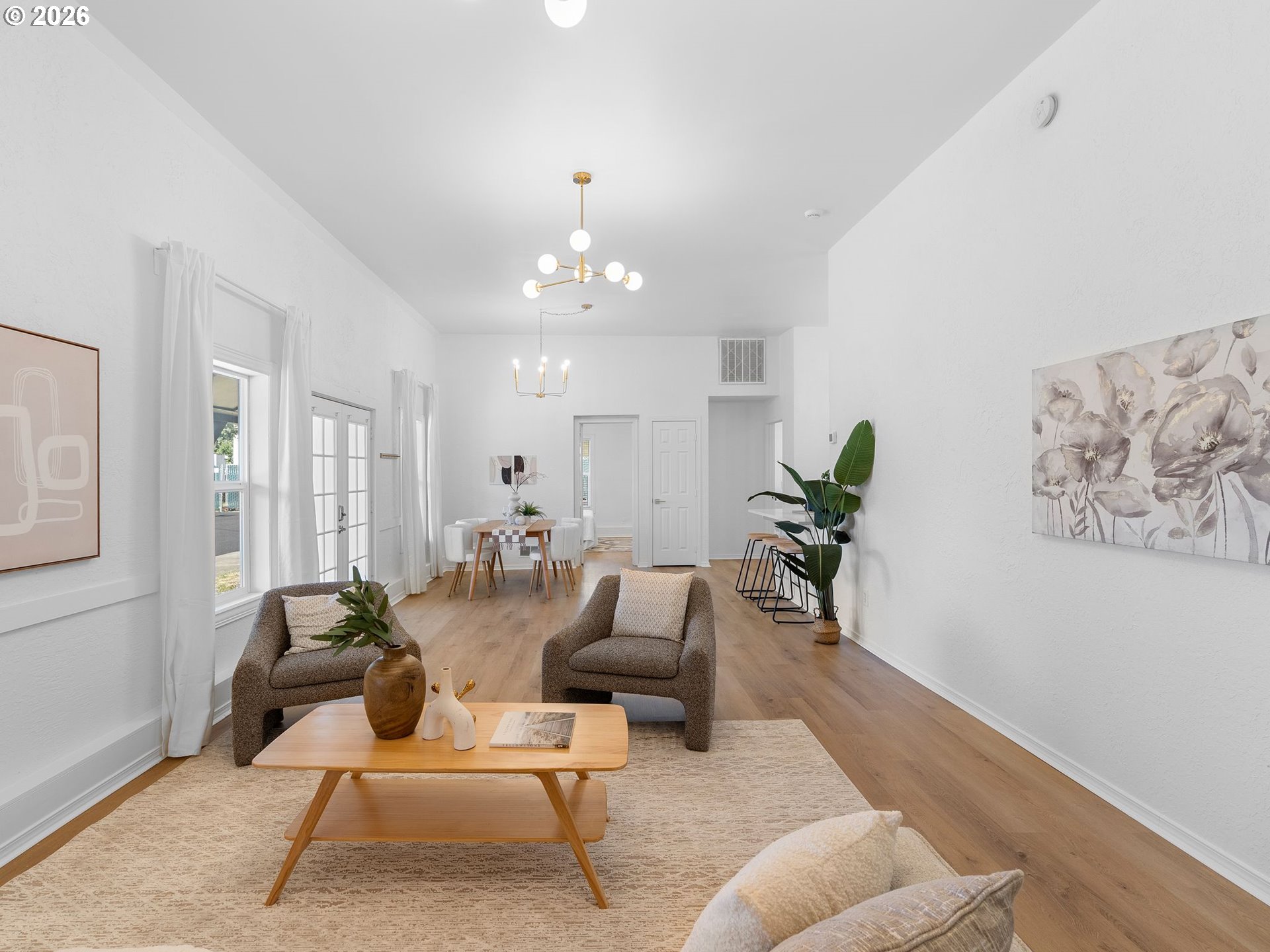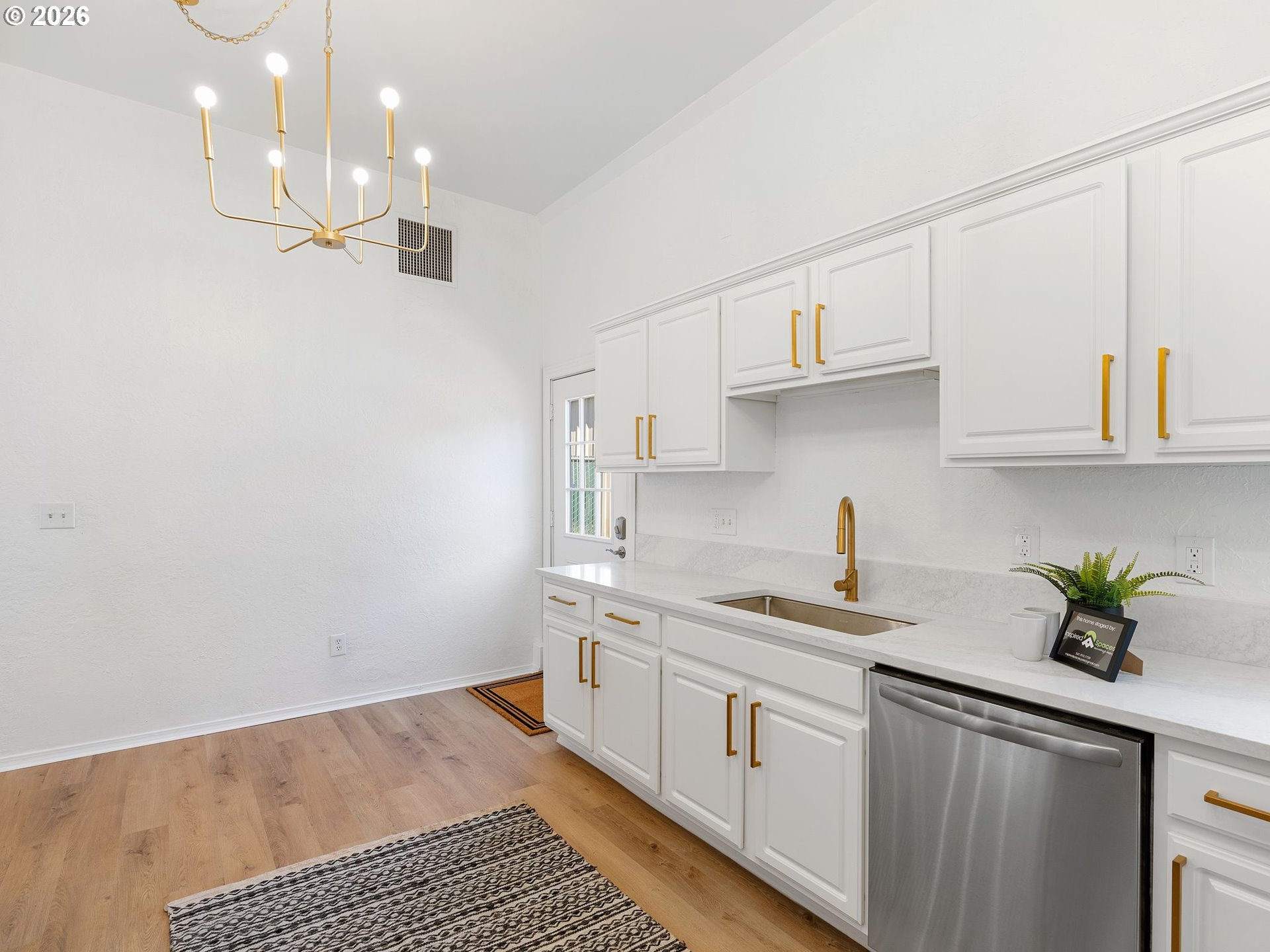 A one-of-a-kind 4-bedroom, 1.5-bath home—this stunning single-level residence blends historic soul with modern style. High 10-foot ceilings, expansive windows, and extra large, open living spaces reflect the building’s spiritual roots, creating a sense of openness and light that’s hard to find in traditional homes. Fresh exterior paint and all-new windows breathe new life into the structure, while luxury vinyl flooring and updated lighting add a sleek, contemporary touch. The heart of the home, a fully remodeled kitchen, features quartz countertops, new appliances, and smart storage, perfect for gathering and entertaining. Updated bathrooms and generously sized bedrooms (including three with brand-new carpet) add comfort and practicality. Thoughtfully preserved and tastefully transformed, this home retains the unique character and quiet strength of its past. Set at the end of a private driveway with private ample parking next to home, a fenced yard, and both front and back outdoor space, it offers privacy, charm, and room to grow. If you’ve ever dreamed of living in a converted church, here’s your rare chance. This is more than a home—it’s a sanctuary. [Home Energy Score = 1. HES Report at https://rpt.greenbuildingregistry.com/hes/OR10234564]
