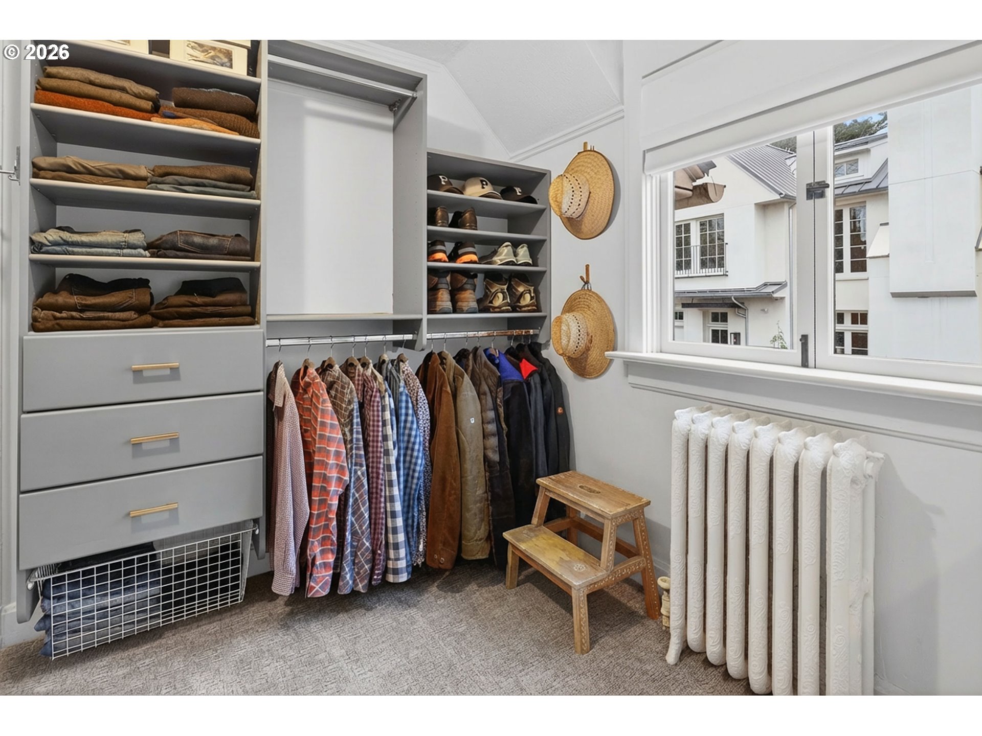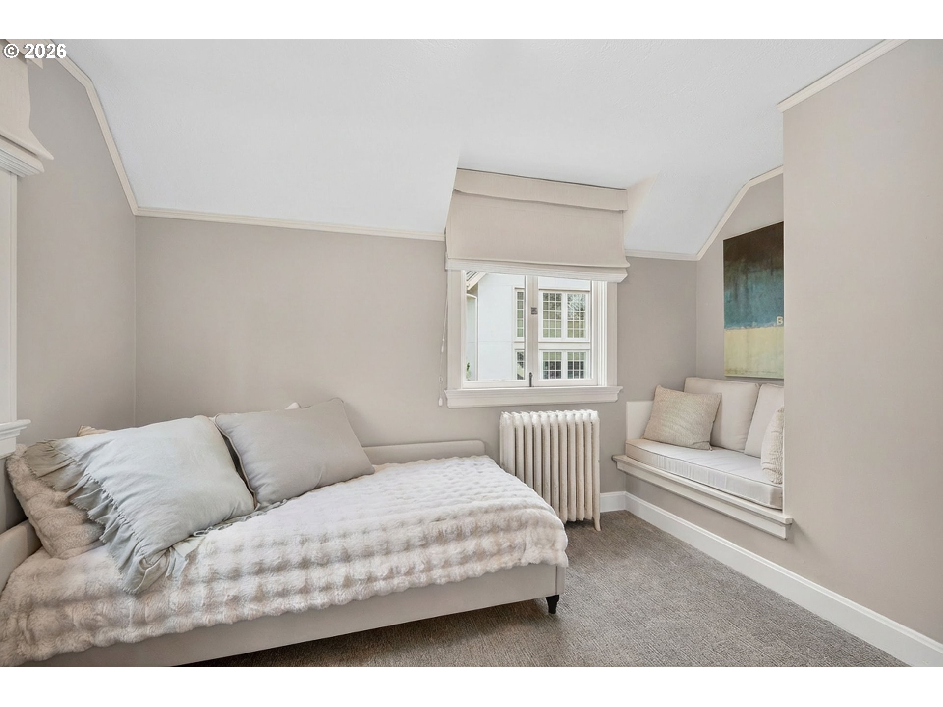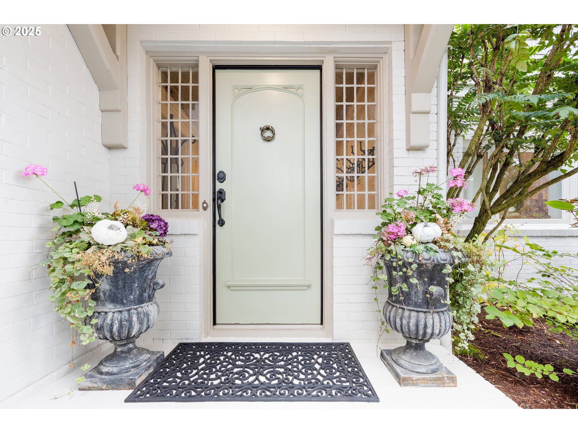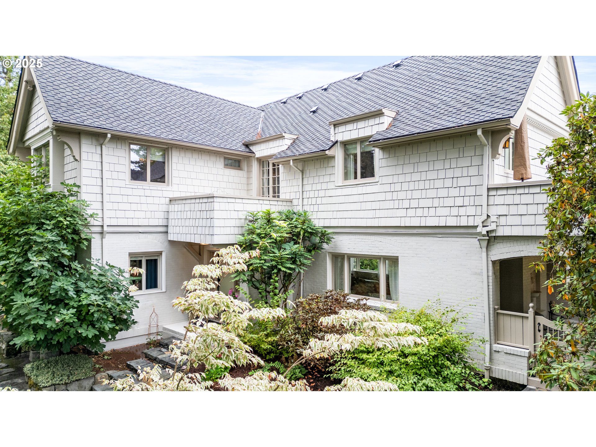 A true Portland Heights legacy, this stately historic residence rises gracefully above the street on a prized corner lot, offering timeless architecture, refined craftsmanship, and enduring elegance. Light-filled interiors flow effortlessly between formal and casual living spaces, highlighted by French doors, custom millwork, and warm natural light throughout. The gourmet kitchen is designed for both everyday living and entertaining, featuring custom cabinetry, a serviced Viking range with all new parts, and a newly installed dishwasher. The inviting living room centers around a stately fireplace, while the primary suite offers a serene retreat with its own fireplace, private balcony, and picturesque views. The lower level provides flexible living with abundant storage and a generous multi-use space ideal for a home theater, game room, or creative studio. Outdoors, the landscaped grounds create a private garden sanctuary with seasonal fruit trees, a cutting garden, and two fully fenced areas perfect for play or relaxation. Multiple outdoor living spaces include four balconies and two covered patios surrounded by lush greenery. Recent upgrades include a new roof, fresh exterior paint, new energy-efficient windows, upgraded electrical, new insulation, and a newly poured two-car parking area. Thoughtful details such as Cremone bolt hardware on French doors and built-in cabinetry further elevate quality and functionality. Located on a quiet street just steps from Ainsworth Elementary, Council Crest Park, and convenient transit to downtown, this Portland Heights classic offers timeless elegance, modern comfort, and an exceptional lifestyle. [Home Energy Score = 3. HES Report at https://rpt.greenbuildingregistry.com/hes/OR10201264]