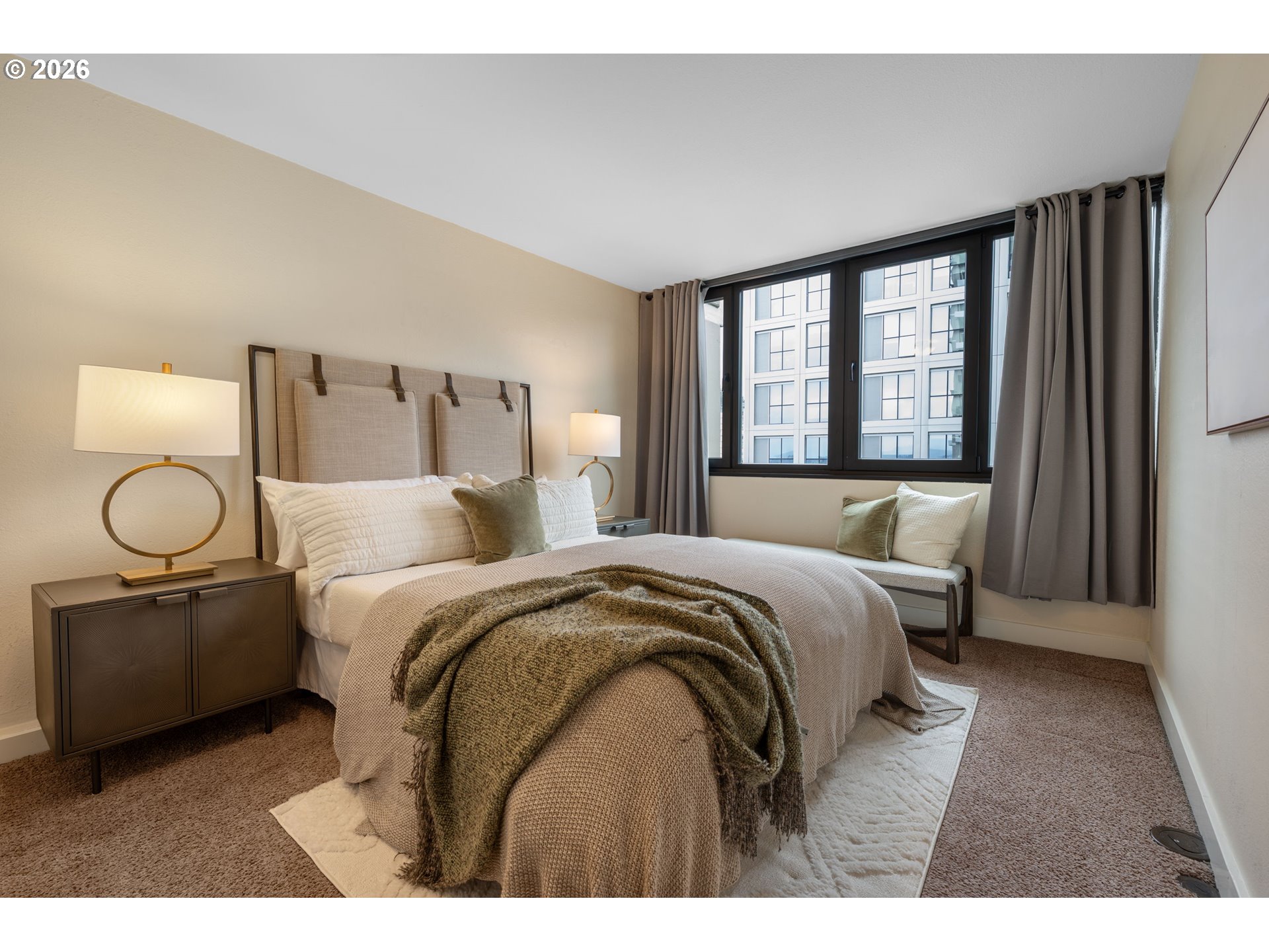 (503) 893-8874Rare opportunity to own a bright corner-unit condo in the heart of downtown Portland, featuring the largest one-bedroom floor plan in the building, abundant natural light, and beautiful city views. The inviting living room opens to a private deck, perfect for enjoying the skyline and fresh air. A sunny dining nook surrounded by windows flows easily into the efficient kitchen with stainless steel appliances. Down the hall, a spacious bedroom sits across from the bathroom featuring an updated vanity and shower/tub combo. Enjoy the comfort of AC, convenient one-level living, and easy elevator access. Residents of Harrison West enjoy a wide range of amenities including a gated courtyard garden, outdoor pool (one of the few in the area), hot tub/spa, sauna, outdoor fire pit, BBQ grill, community room, secured bike room, and a large on-site laundry facility with plenty of machines—no coins needed. The building also offers the convenience of an onsite manager and overnight security from 10pm–6am. Additional highlights include a deeded parking space in a prime location, secure storage, and no rental cap—offering excellent investment or rental potential. Part of the architecturally significant Portland Open Space Sequence, a landmark development that helped spark an urban design movement focused on integrating green space into city living. Located just steps from the Portland Streetcar and bus lines, with quick access to the waterfront, Portland State University, museums, and the popular weekly Farmers Market. Enjoy an easy walk to parks, shops, restaurants, and everyday conveniences. Low-maintenance, light-filled city living in a fantastic downtown Portland location.