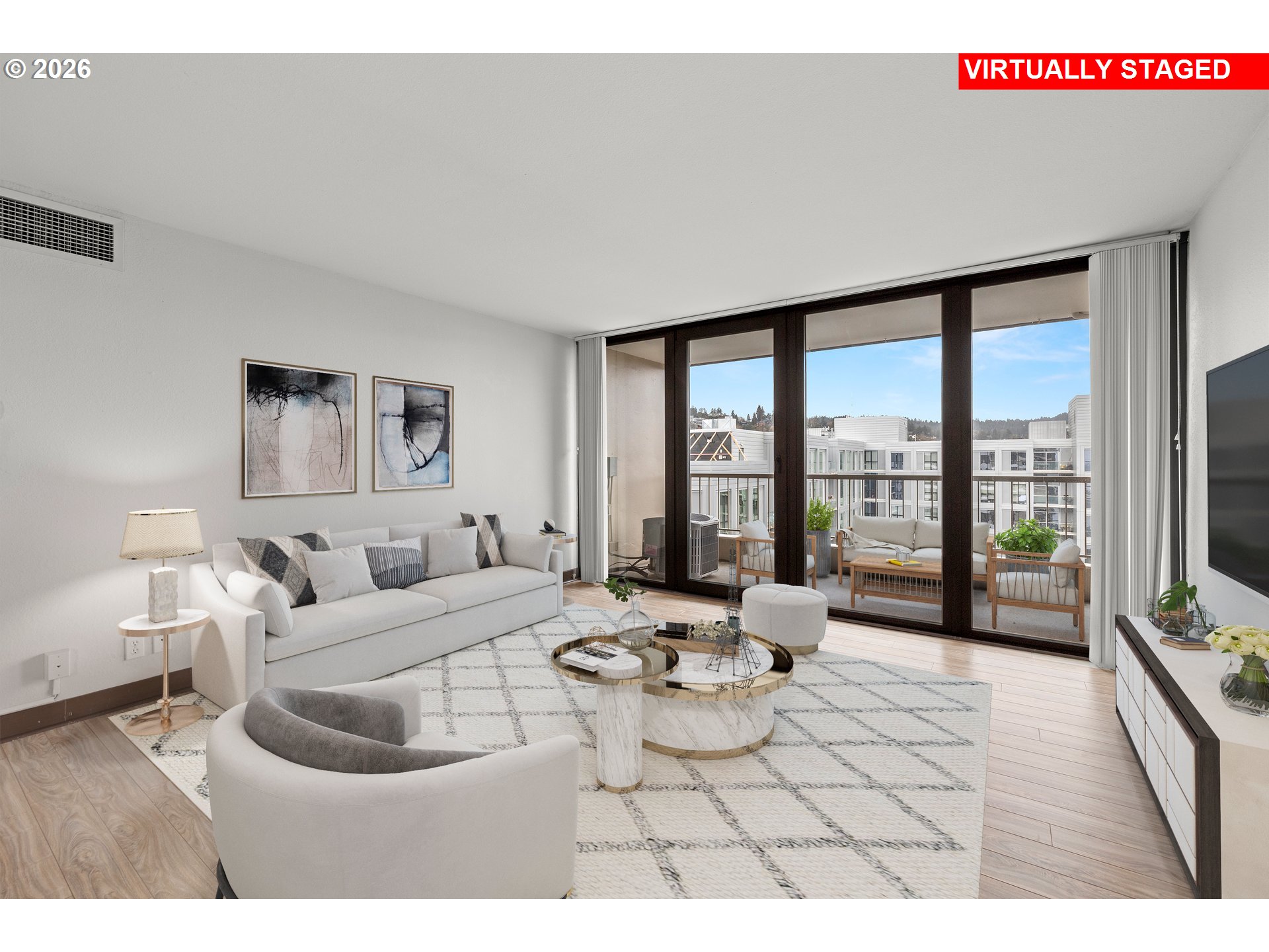 Perfect for anyone seeking a dynamic urban lifestyle at a great price!Conveniently located in the vicinity of PSU, OHSU, South Waterfront, Keller and Portland's Art and Culture District, within the Halprin Open Sequence of interconnecting walkways and parks with easy access to restaurants and cafes.Enjoy views of the city, West Hills and a peek at the river from the 20th floor!This 2BR, 2 bathroom unit features granite counters, SS appliances, tile, wood and laminate flooring, central heating and AC.Secure large deeded parking space located next to the elevator on level B3. Harrison West is located on city bus and streetcar stops for quick access to other great urban Portland neighborhoods. No rental cap, but no short term rentals.