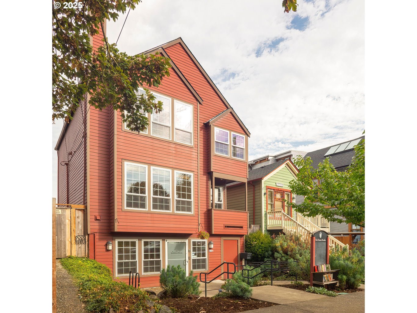 Tin House Book's Red House on NW Thurman. Great CM2 commercial mixed/use zone; office, retail, live/work. ADA accessible ramp from Thurman Street to ground floor reception room, ADA bath, data utility center and supply storage. On 2nd floor discover bright, flexible, creative space w/sliding barn doors to separate or combine for conference rooms & offices. Walls of built-in custom bookcases, corner fireplace, attractive kitchen, plus French doors to spacious garden deck for summer gatherings. The third floor features four good-sized private offices with pleasant views and skylights, plus full bath. This unique structure has been well-maintained including a new 2025 roof, and will support a variety of creative endeavors!