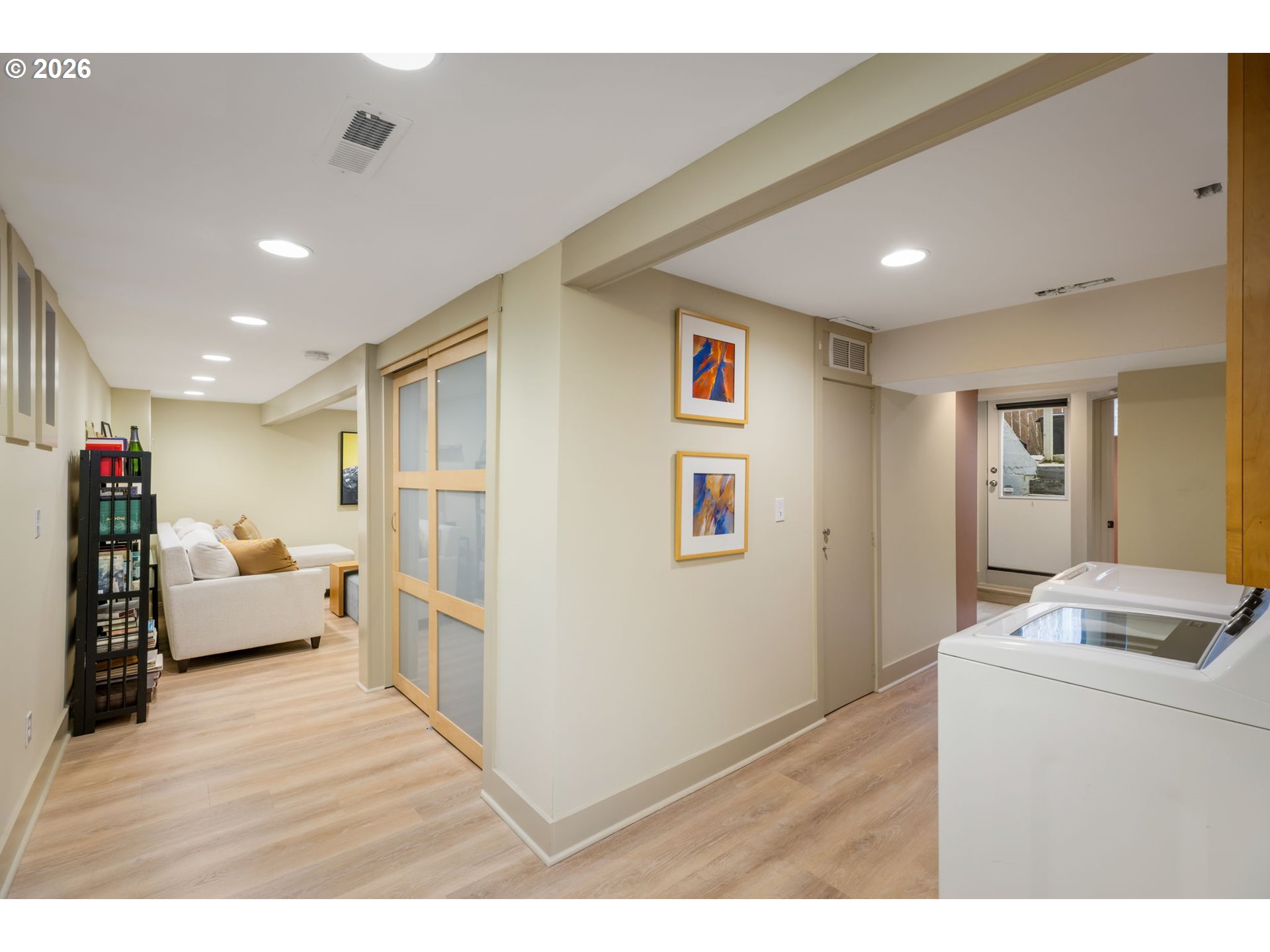HighCeilings, Laundry, VinylFloor, Wainscoting, WalltoWallCarpet, WasherDryer, WoodFloors