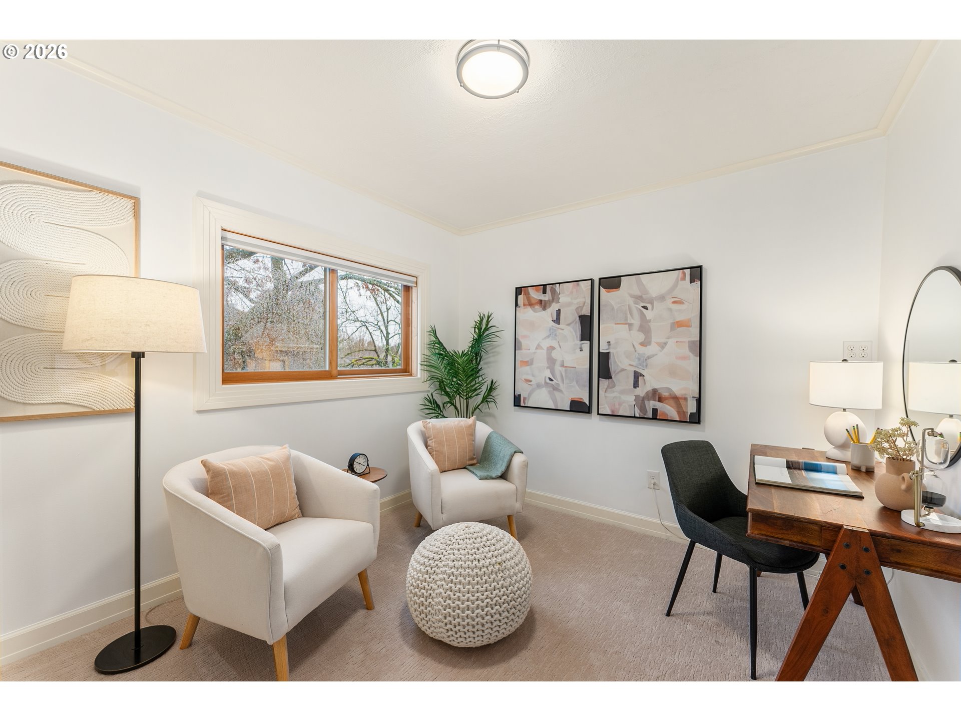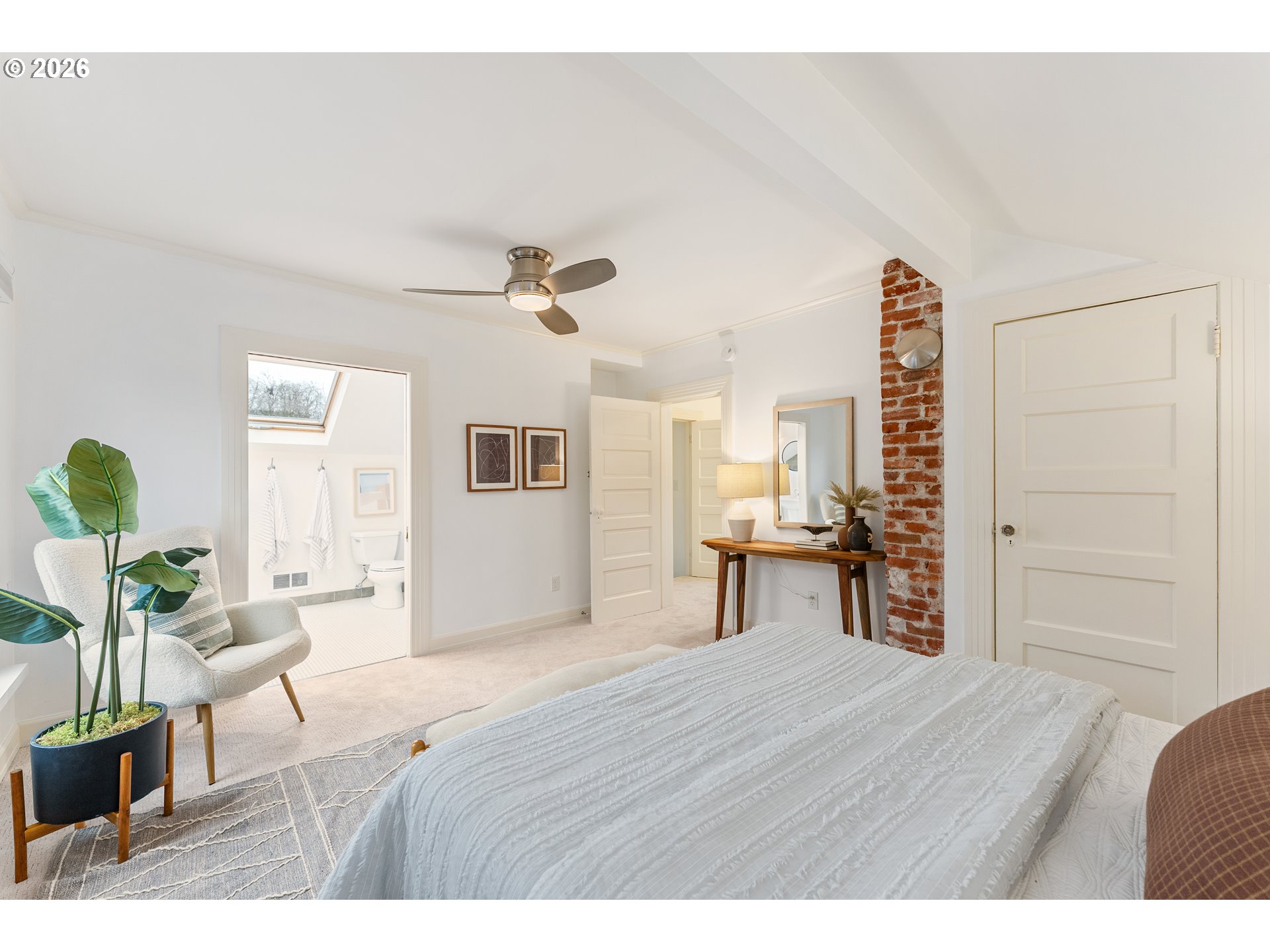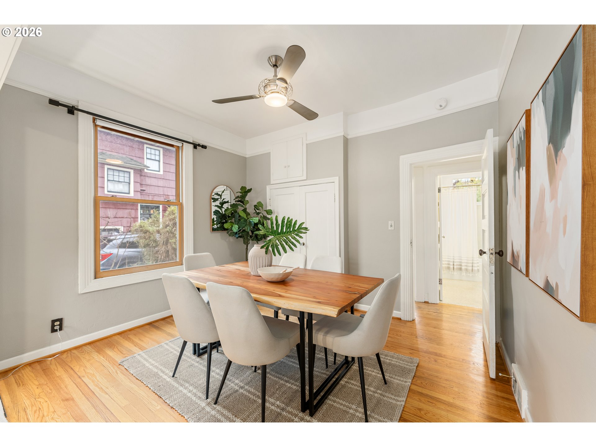 Updated 1905 bungalow in prime inner SE Portland location with 2,232 square feet across three finished levels on a level lot. The main level features hardwood floors, a wood-burning fireplace, and a functional layout connecting the living, dining, and kitchen areas. The kitchen includes quartz countertops, gas appliances, and an eating bar. One bedroom and a full bath are also located on the main level. The upper level is dedicated to the primary suite with a walk-in closet, double sinks, skylights, and a walk-in shower. Upper level also has flex space perfect for nursery, home office, dressing room - you decide! The finished lower level provides additional living space with a bedroom, full bath, utility room, and exterior entry. Outside you will find a fenced yard, covered patio, garden space, and a 2 car detached garage. A well-located home offering space. New carpet and fresh paint! OPEN SAT 1/10 11AM-1PM & SUN 1/11 1-3PM