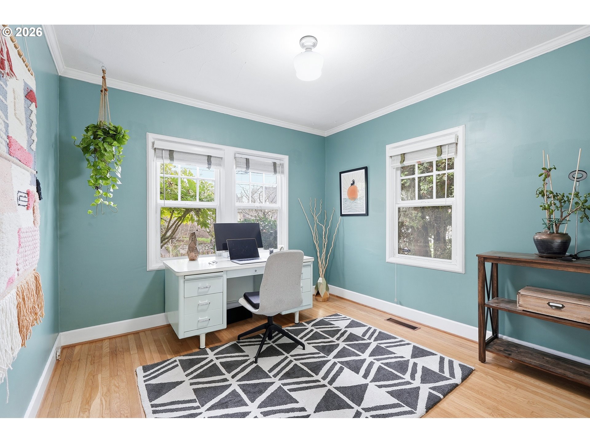 Archetypal Grant Bungalow w/ an a-typical attention to mindful home integration. Three full bedrooms on main-floor w/ living and family room flanking kitchen and dining--back bed and family room were added-on in 2012. Upstairs, the main bedroom features reclaimed wood floors and airy, vaulted, beamed ceilings, accentuted w/ skylights, as well as zonal heat/AC control, and a sanctuary-like en-suite bath. Gourmet kitchen w/ granite counters, Energy Star SS appliances, and a madman Viking chef's professional six-burner gas range. Two-year-old tear-off roof, a recently updated heat pump/AC, and remodeled main-floor bath. Full basement for tons of storage and/or finish it out for even more living space. Totally buttoned-up home w/ previously shored-up chimney, vinyl exterior doors/frame installs and tankless water heater--Energy Score was 9 before hi-eff Mitsubishi Heat Pump and roof add--not bad for a house that's hitting its centennial this year! Fiber optic cable is hard-wired in for optimized home/work life. A new paved driveway, custom front door, and patio cover built for warm late-night hangs. Grant School/Park five blocks away. Irvington Elementary, Tubman Middle, and Grant High School system. Parks and amenities abound--head south for Broadway shops/stores and restaurants like Hale Pele. The all-around efficiency and accessibility is a cut above. [Home Energy Score = 9. HES Report at https://rpt.greenbuildingregistry.com/hes/OR10049046]