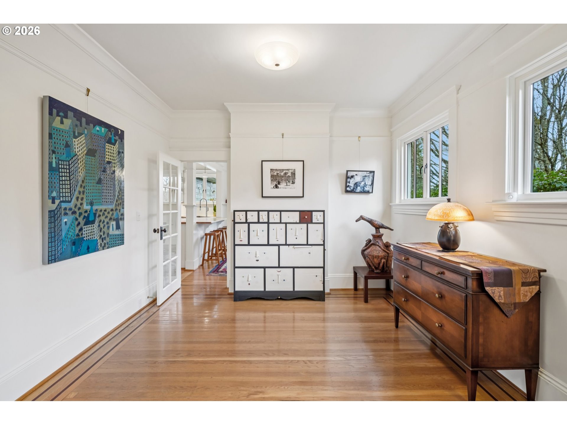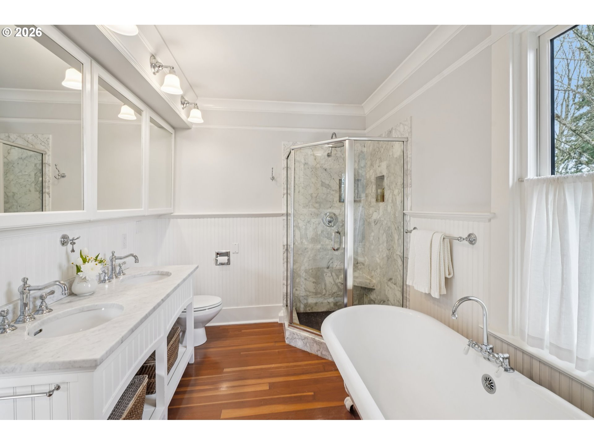 (503) 893-8874Timeless traditional in Portland Heights, one of Portland’s most desirable neighborhoods. Thoughtfully updated while preserving its original character and charm, this light filled home features high ceilings, hardwood floors, and large updated double pane windows that bring in abundant natural light. The flowing floor plan offers comfortable everyday living along with inviting spaces for entertaining. The spacious kitchen is equipped with high end stainless steel appliances and opens seamlessly to the living areas. The primary suite offers a spa like bath with a clawfoot tub, marble tile shower, and double vanity, along with multiple closets and French doors that lead to a private balcony. Upstairs includes two additional bedrooms and a full bathroom. The lower level features a generous fourth bedroom and full bath, ideal for guests or flexible living. A large basement bonus room provides excellent space for a media room, playroom, or home gym. Additional highlights include a two car attached garage, ample storage, and a separate art studio or workshop. Recent updates include a new roof, new HVAC system, fresh interior paint, and new appliances. The beautifully landscaped yard offers privacy and mature plantings, creating a peaceful outdoor retreat perfect for relaxing or entertaining. Ideally located near top rated schools and just minutes to downtown Portland, NW 23rd, Hillsdale, and major freeways. Enjoy nearby hiking trails and beloved neighborhood amenities. A rare opportunity in Portland Heights.