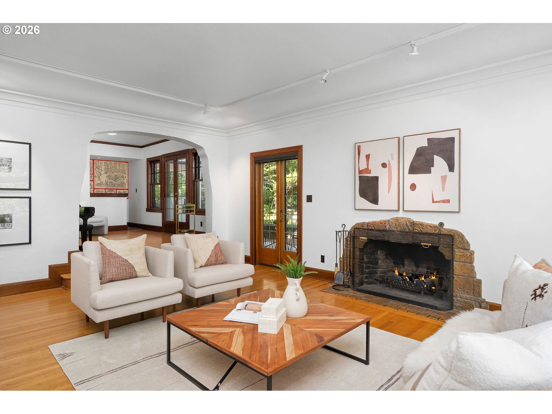 BuiltinFeatures, Fireplace, FrenchDoors, HardwoodFloors, Patio