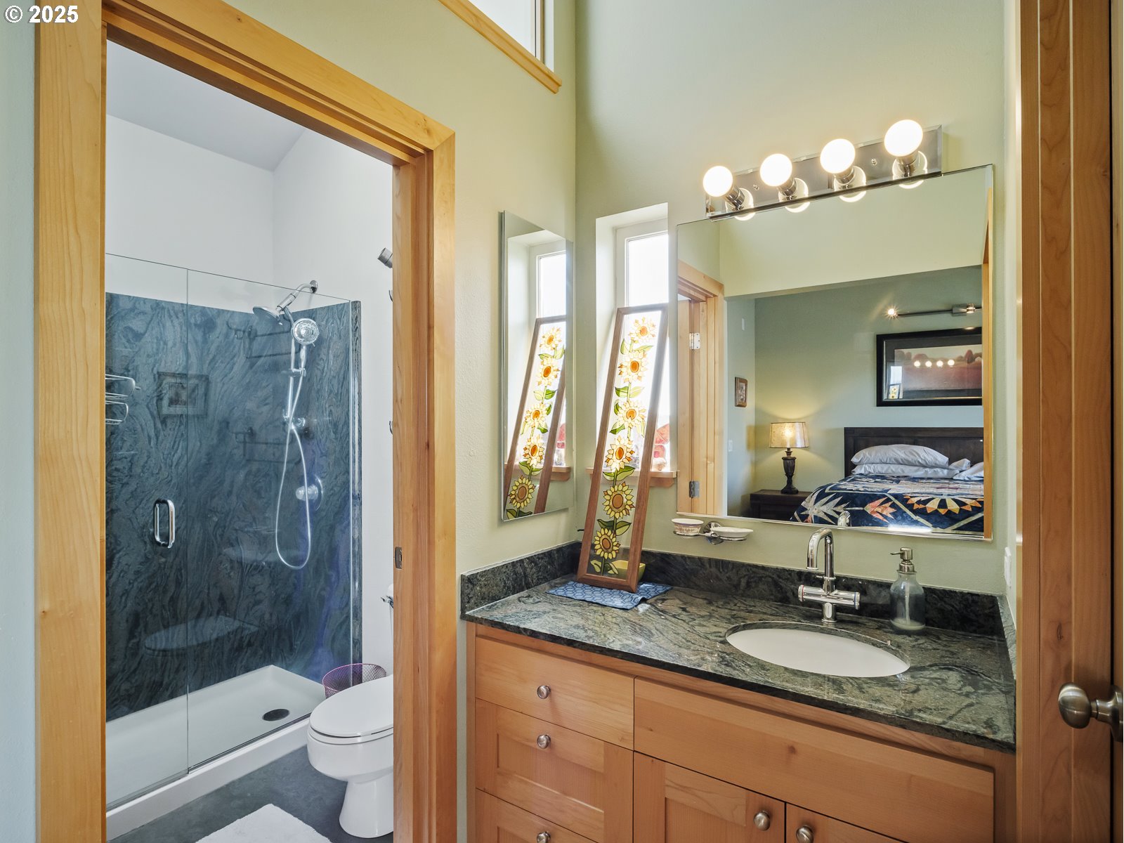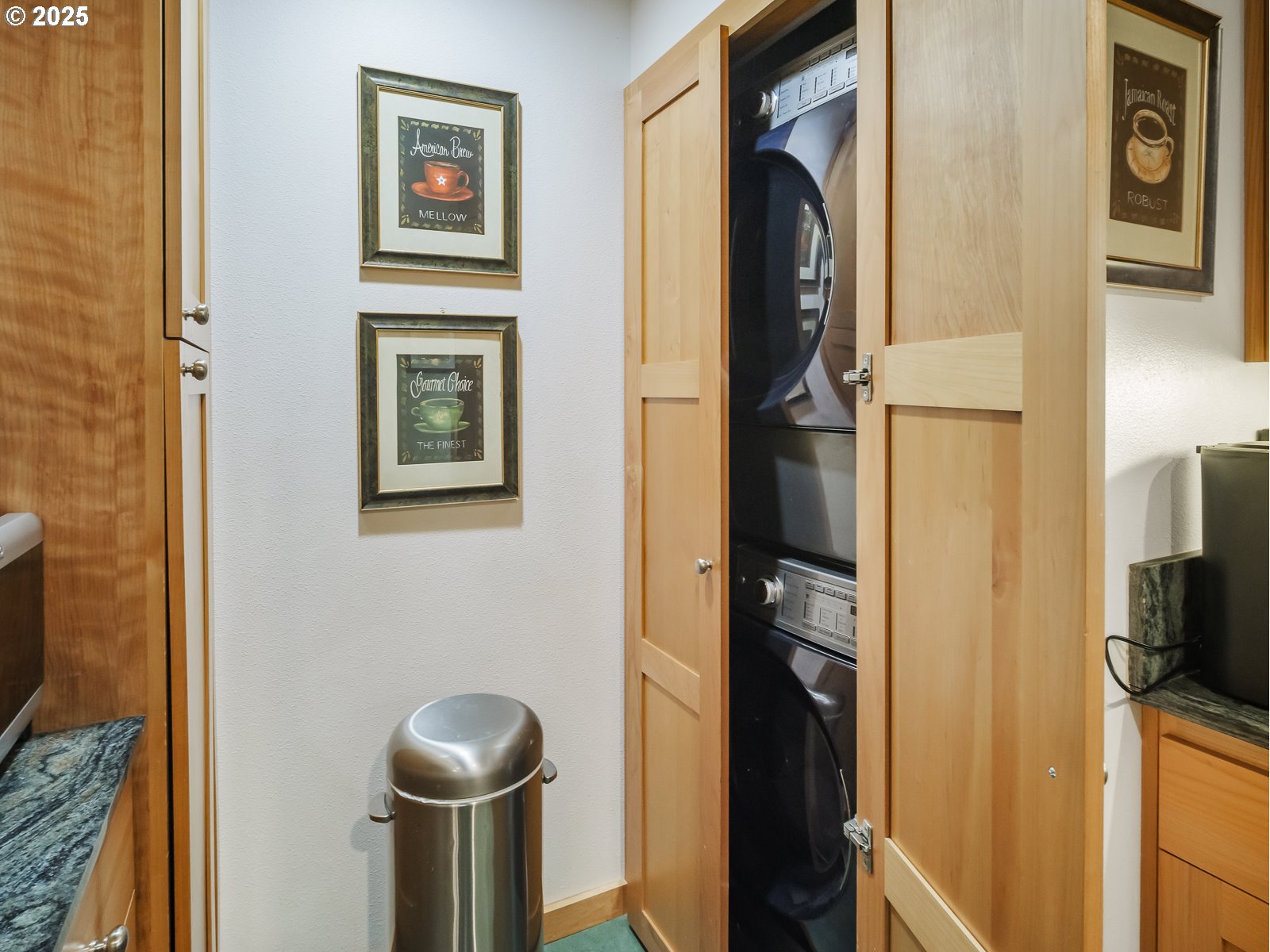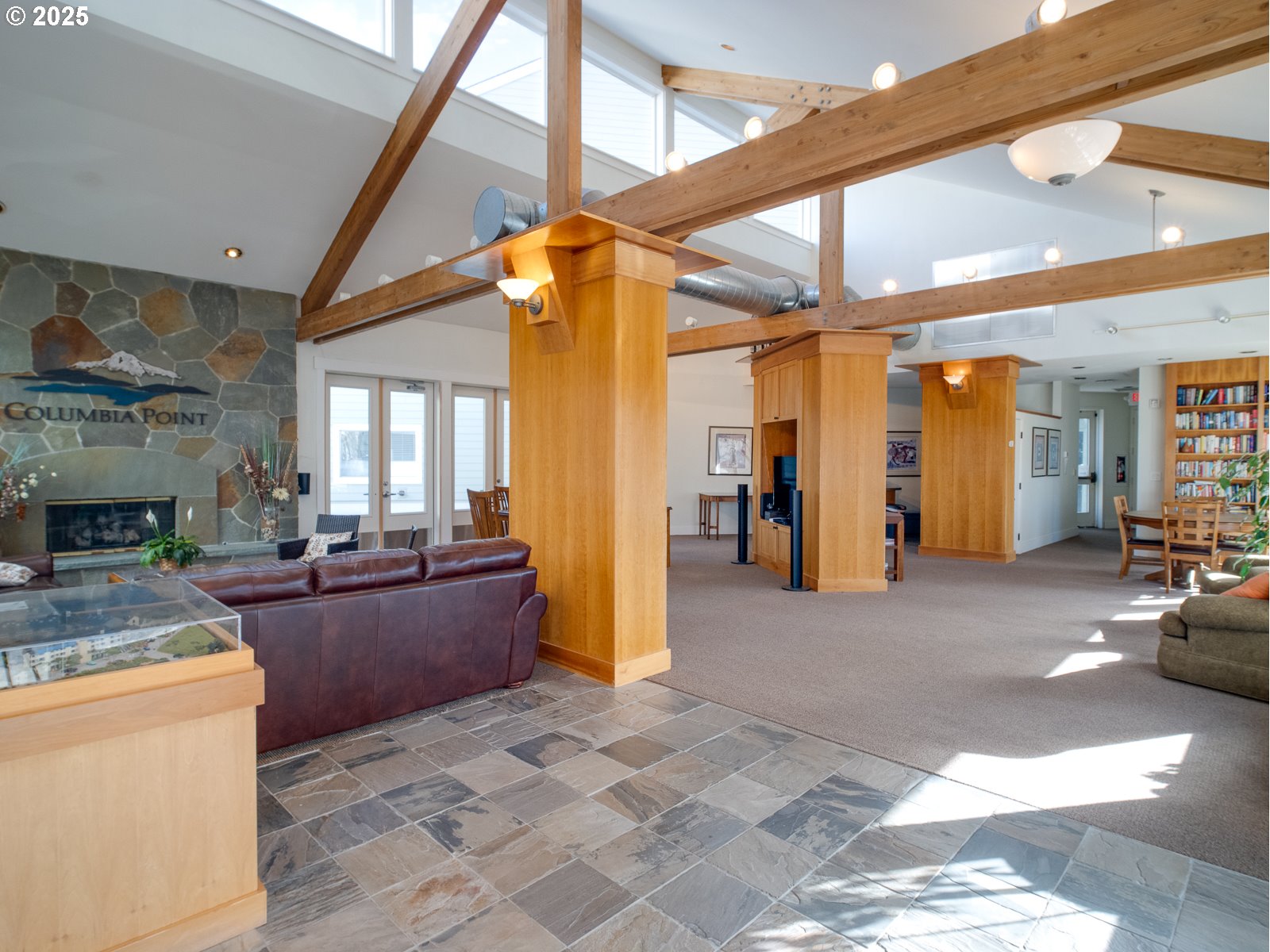 2 bedroom, 2 bath top level, end unit condo on the Columbia! Just up from the I-5 Bridge, the Columbia Point West Condominiums have fabulous community amenities - landscaped grounds, recreation/meeting room, large indoor & outdoor pools, sauna and new gym with weights and cardio. Monthly dues include amenities, commons areas, sewer, trash & water & cable TV or internet. Inside the unit you’ll find gorgeous granite counters in the kitchen and baths, stainless steel appliances, a wood burning fireplace, vaulted ceilings, and a kitchen with a breakfast bar, laundry and connected dining space. Look out at the Columbia from the main deck, where there is a storage closet with plenty of room for larger gear and those outdoor cushions on rainy days. Upstairs the primary suite has its own private patio, vaulted ceiling, a full bath and walk-in closet. Wrapping up the unit, a second full bed and bath are located near the entry, for great separation of space between bedrooms. There’s easy access to the paths on Hayden Bay and around Columbia Point. The scenic views will never get old. So many choices of waterfront walking trails and viewpoints. And parking is a breeze! Take the elevator from your personal covered parking spot in the garage or take the stairs at either end of the building from the many other dedicated community parking spots. And public transportation is easy too, catch the bus to the Max to head east, west, downtown or to PDX. And it’s just a quick jump across the bridge to shop at the Vancouver Farmers Market or attend summertime events at Esther Short Park, just blocks from the Riverwalk area, with all its shops and riverfront restaurants. Nearby on Hayden Island, 3 Sheets at the Harbor, the Hidden Bay & Island Cafe are favorites.