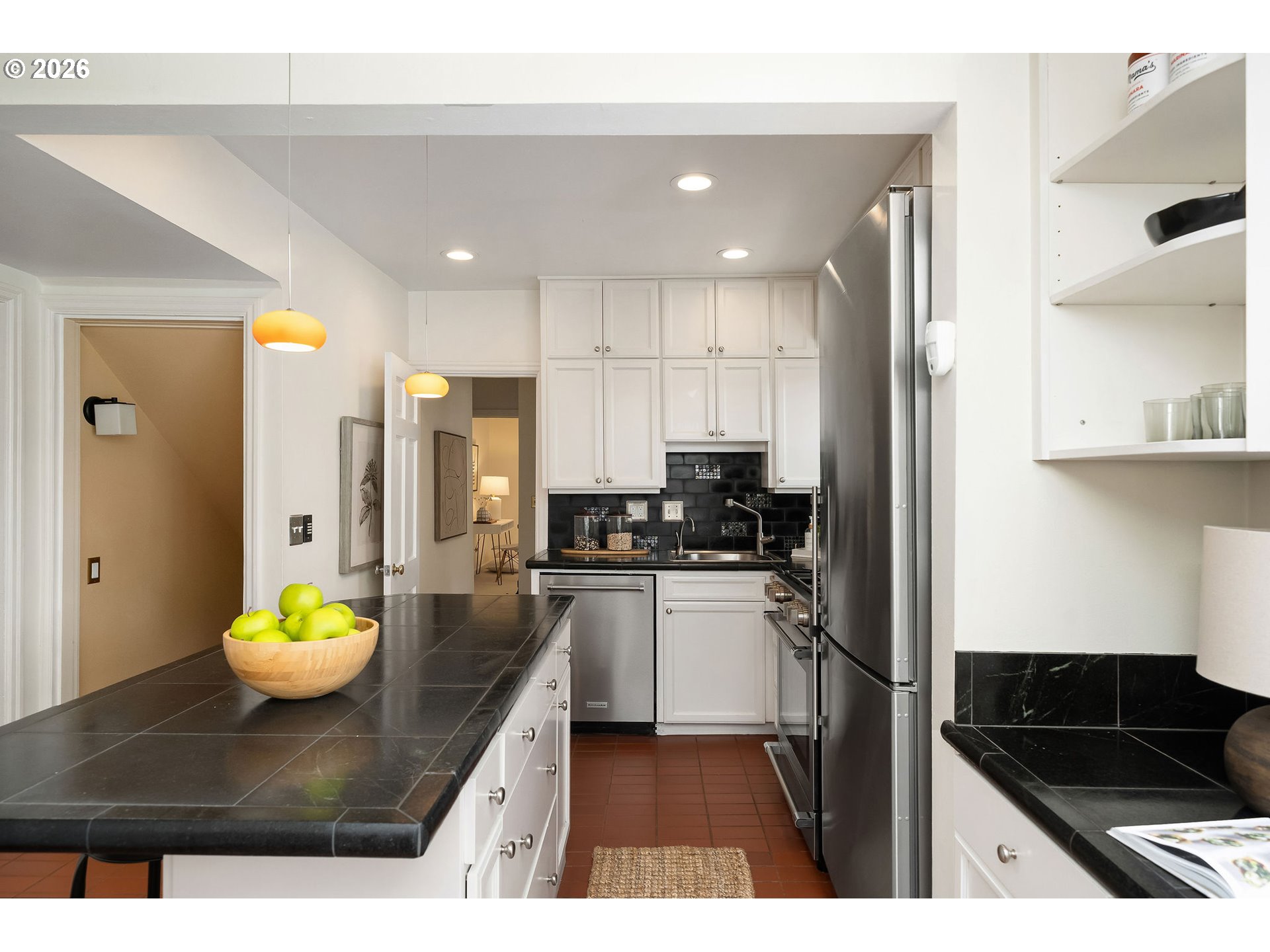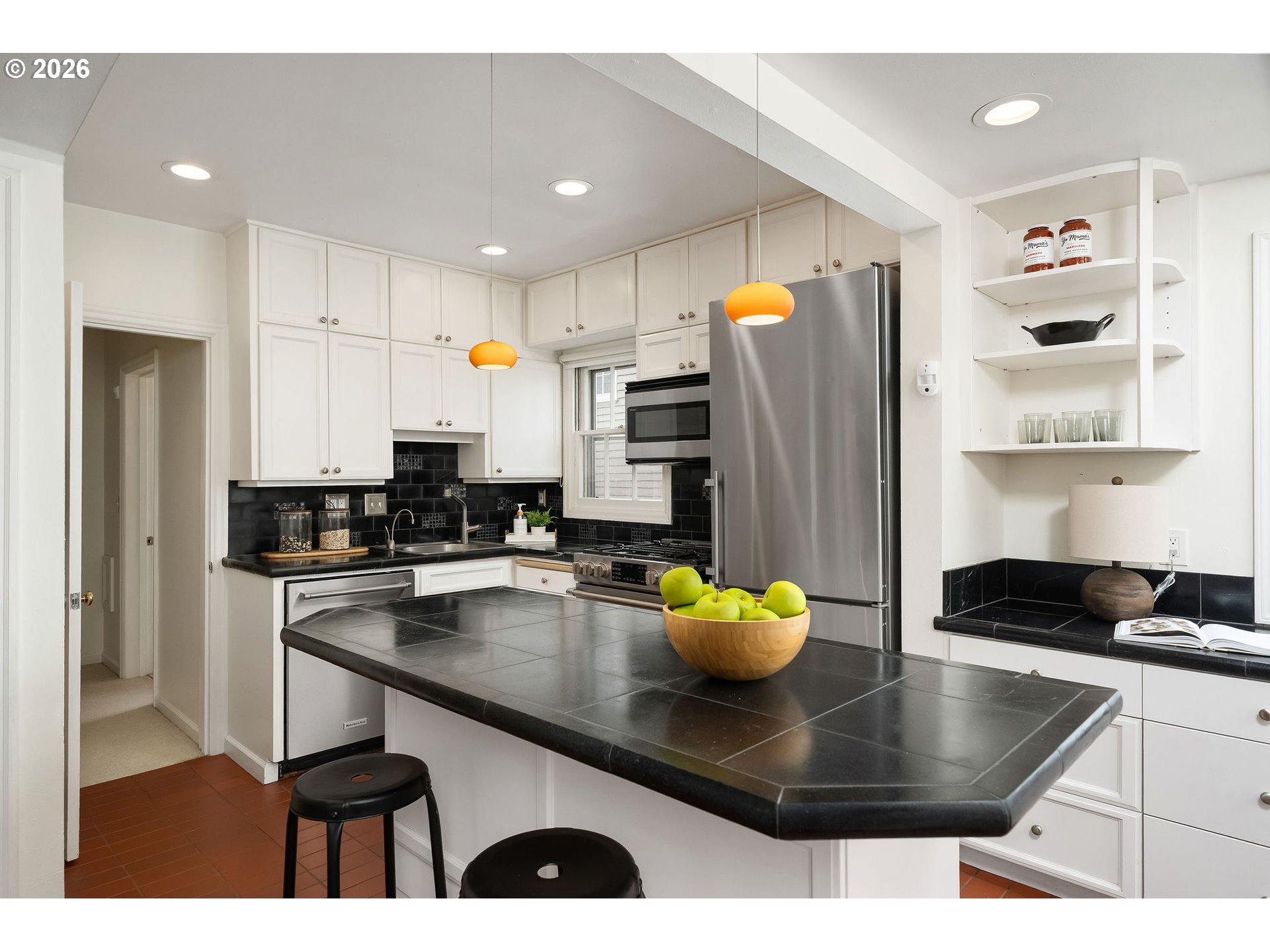 This instantly recognizable Portland Heights cottage has been lovingly improved over the years -it's a charming space...bright, updated, and full of character. Portlanders have always loved this storybook cottage, which falls within the outstanding Ainsworth Elementary School boundaries. Warm and welcoming living and dining rooms lead to a bright white kitchen with skylight and island. The full upper level comprises the primary suite, with nice, sunny bathroom, office, gym or nursery, and yards and yards of closets. Three true bedrooms plus multiple other flexible spaces for nursery, home gym, a book-lined study, guests, etc. make this home work for many configurations of today's modern living. Lower level family room has a full bath and outside entrance. The convenience and easy maintenance of this home has made it live so well over the years. The storage is extensive, and the neighborhood is filled with pedestrians, dog walkers and bikers. Easy care garden/patio, small deck off the kitchen. Quantum fiber & cable internet, central air plus mini-splits upstairs for blissful summer nights. Electric outlets all updated, new roof and chimney, new washer/dryer and range. [Home Energy Score = 3. HES Report at https://rpt.greenbuildingregistry.com/hes/OR10128992]