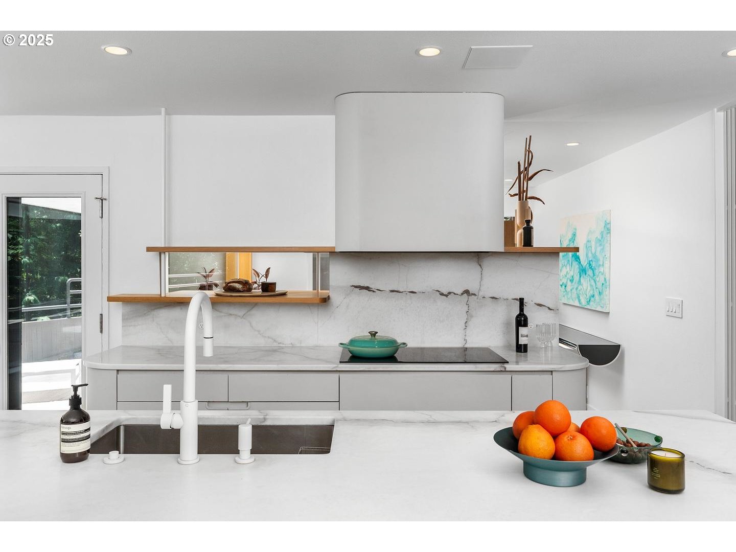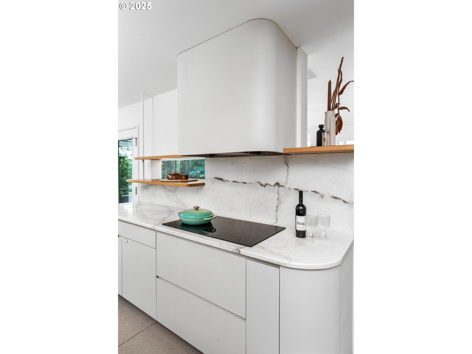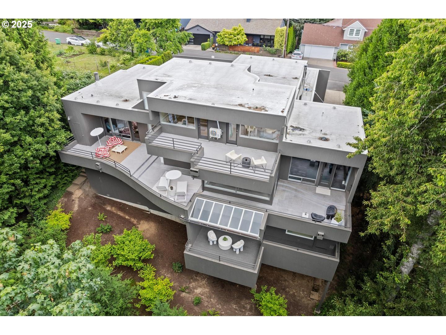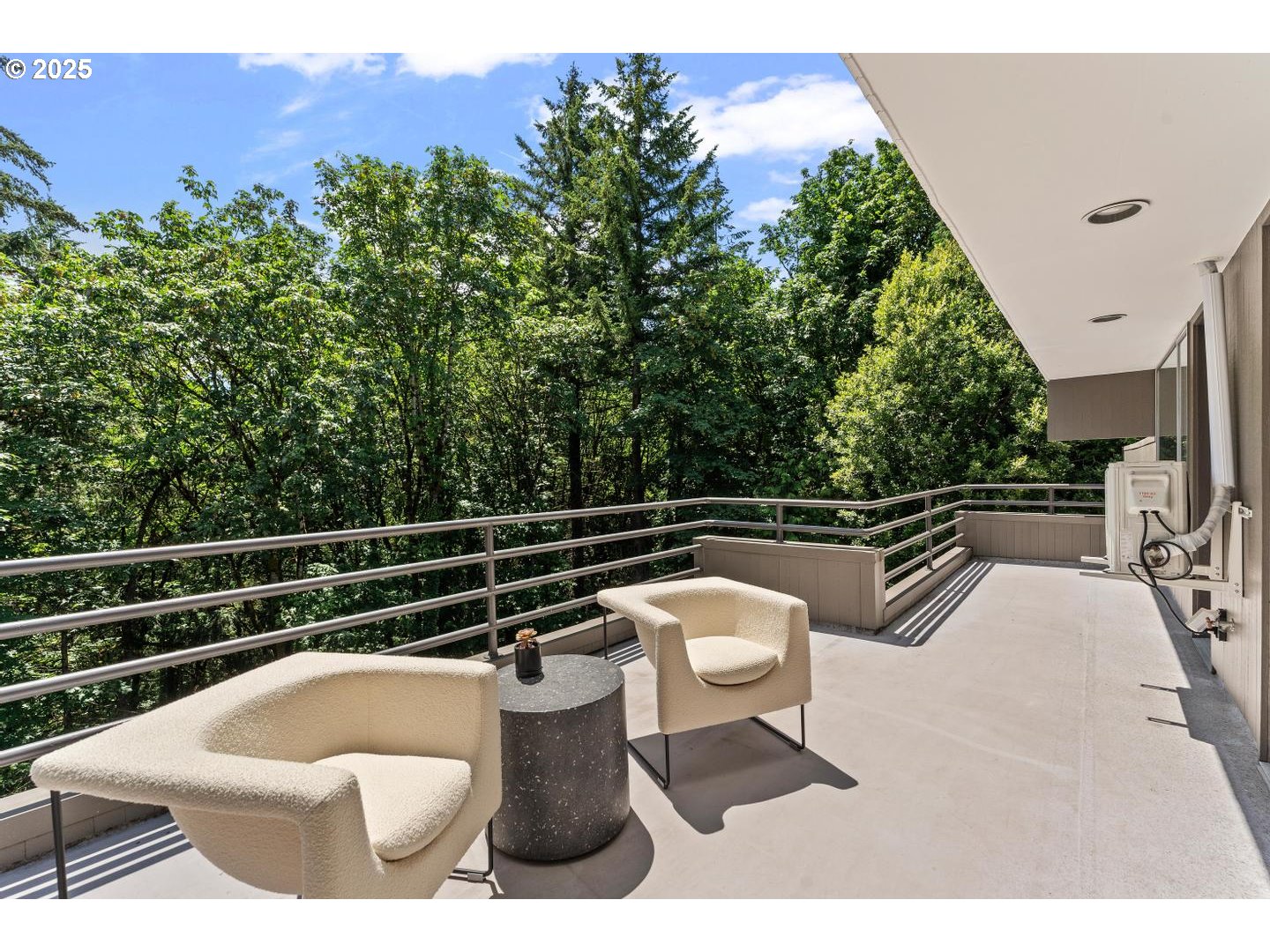(503) 893-8874Landmark architectural masterpiece located on a quiet, dead-end street in Portland Heights, just moments from downtown Portland, OHSU, and Council Crest Park, yet worlds away in a coveted, neighborhood setting. Originally designed by renowned architect Robert Thompson of TVA Architects, this residence epitomizes contemporary modernism at its finest. Nestled adjacent to lush Marquam Nature Park chock full of wildlife. This home seamlessly blends natural outdoor elements with calming interiors through expansive windows, balconies, and tranquil sightlines through the trees. The forest setting in contrast w/ remarkable crisp living spaces evokes an elegant home-like feel as featured in Dwell and Domino magazines. The professional-grade kitchen is loaded with custom cabinetry, premium appliances, a massive island, and dual balcony access. Sunlit rooms, curved walls, soaring ceilings, massive windows, built-ins, five outdoor lounges, and a highly functional layout create a unique yet practical residential experience beyond words. Meticulously restored by Bright Designlab and the current award-winning designer/owner, blend sophisticated style, vintage design, with modern functionality to create the best of both worlds. The luxurious primary suite offers a sexy, spa-like bath, serene spaces, sauna, and a dreamy walk-in closet. Comfortable bedrooms w/ endless built-ins, several bonus areas, low-maintenance outdoor spaces, a 3+ car garage, ample storage, round out the package. Beautifully cared for, carefully maintained, and ready for it's next steward. This rare offering is a true collectible property—both timeless and extraordinary. Select collectible furnishings can be available to convey with property, please inquire prior to writing your offer. This is, hands down, one of the best values in Portland real estate. [Home Energy Score = 1. HES Report at https://rpt.greenbuildingregistry.com/hes/OR10204590]