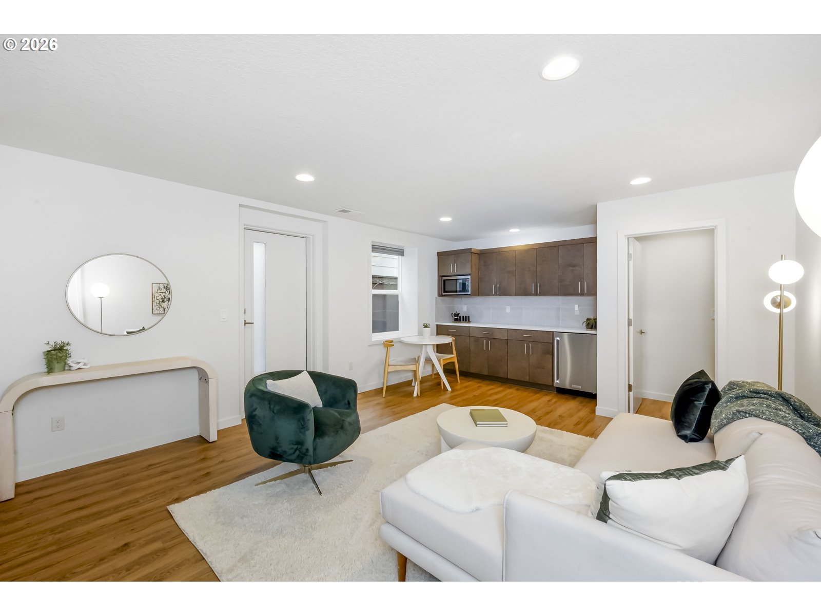 Top quality finishes, timeless modern style, and amazing location, this contemporary home was built to last. Built 2019 by Everett Custom Homes it features high end finishes & fixtures, 8 foot real wood doors, and the ideal layout for easy living. It's 2534 sf of move-in ready luxury! The absolutely gorgeous kitchen has tons of storage, an island with bar seating, and high-end appliances -including an induction cooktop. The spacious back deck is right off the kitchen and is already plumbed for a gas BBQ. The bright living room has tons of natural light, a gas fireplace, stylish built-ins, and beautiful hardwood floors. The top floor has three bedrooms (including the large & luxurious primary suite), laundry, and another full bath. Each bedroom has a very generous closet, extra high ceilings, and floor to ceiling windows. The lower floor offers so much flexibility with an exterior entrance door to the bonus bedroom space. With a full bath, two closets, and a kitchenette, this lower level area is ideal for guests, short term rental, TV room, gym, or another bedroom suite. Outside in the backyard you'll find a lovely raised bed with mature landscaping including a grape arbor that provides total privacy for the deluxe hot tub! All this plus the ideal SE location -and an impressive PERFECT 10 energy score! [Home Energy Score = 10. HES Report at https://rpt.greenbuildingregistry.com/hes/OR10182365]