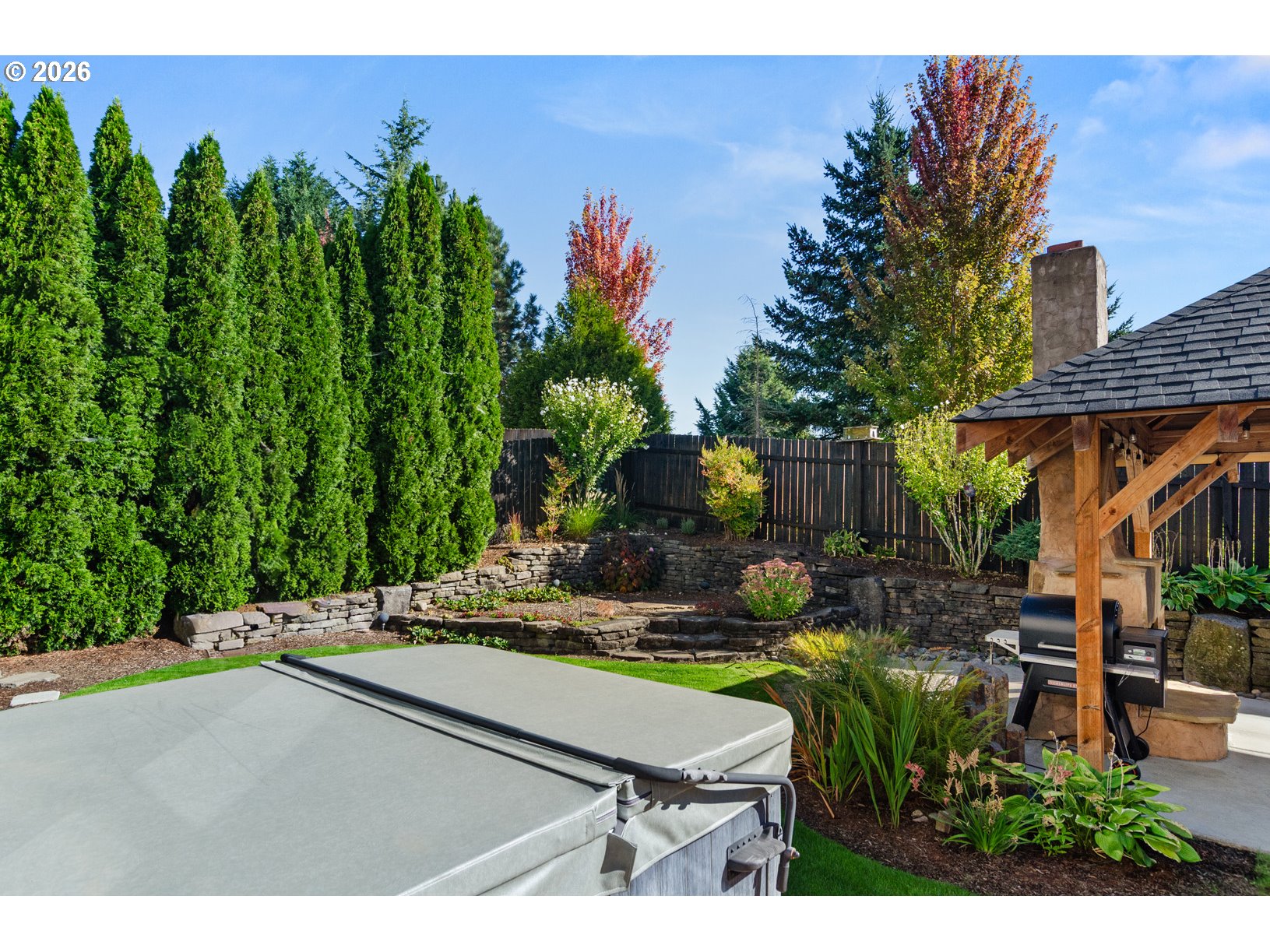 Deck, Fenced, FreeStandingHotTub, Gazebo, Porch, Sprinkler, Yard