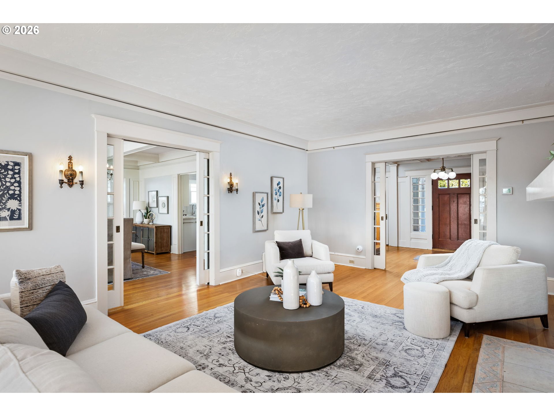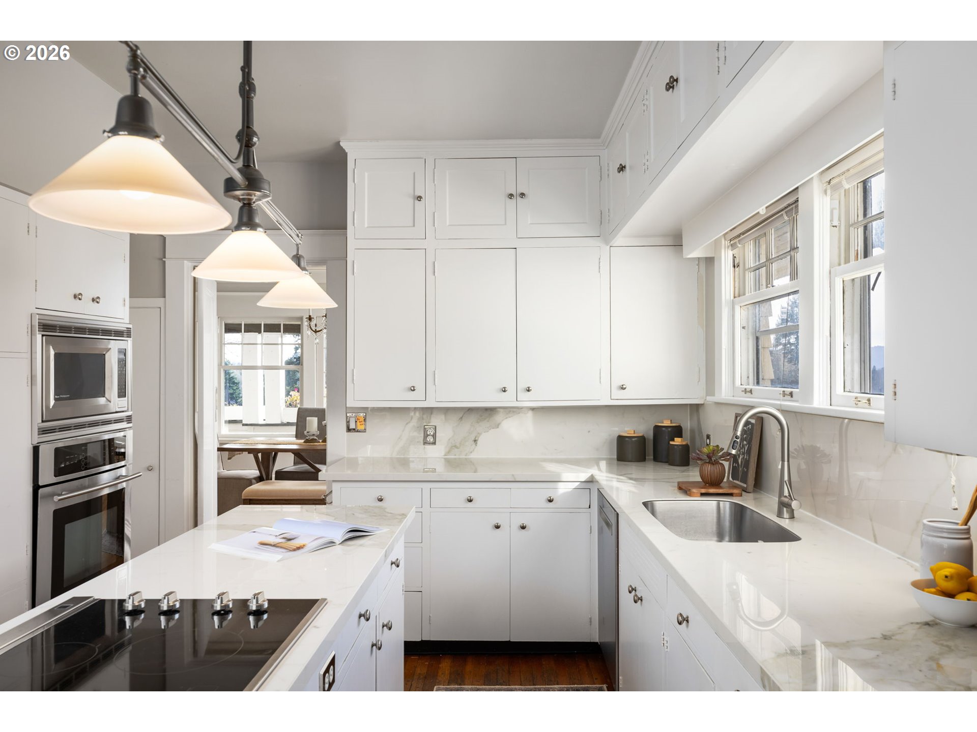 Originally built in 1911, this timeless Craftsman home is perched on the coveted Alameda Ridge, offering sweeping views of the Irvington neighborhood and Portland’s iconic skyline. This stately vintage gem, designed for Northern Pacific Railway superintendent Mr. Fowler, exudes character and history, with its original oak hardwood floors, handsome woodwork, and grandly proportioned rooms.The main level features a Primary Suite, complete with a private study—perfect for work or relaxation. Upstairs, you’ll discover five spacious bedrooms, one of which boasts its own fireplace for an extra touch of charm. The lower level offers fantastic versatility, with a 2-bedroom apartment/guest suite and additional unfinished space ready for storage or future living area expansion.Outside, two full-length decks invite you to soak in the breathtaking views, stretching across Irvington and the city skyline. Modern updates include a newer furnace, AC, roof, and a decommissioned oil tank—ensuring comfort and peace of mind.A delightful nod to the home’s history, carved pineapple symbols are woven throughout the design, both inside and out. These pineapples, a traditional Craftsman motif, stand as enduring symbols of hospitality, warmth, and friendship—perfectly complementing the inviting character of this extraordinary residence.This is more than just a home—it’s a piece of Portland’s history, waiting to be cherished. [Home Energy Score = 1. HES Report at https://rpt.greenbuildingregistry.com/hes/OR10245267]