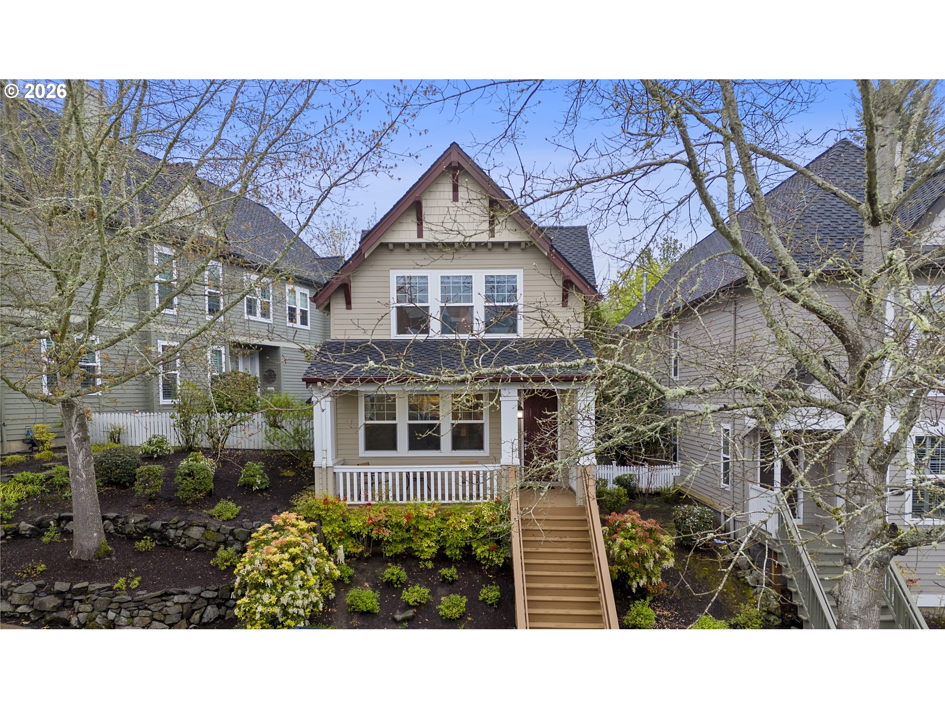 Located in the highly sought-after Forest Heights community, this beautifully remodeled end-unit townhome offers the perfect balance of peaceful surroundings and everyday convenience. Known for its tree-lined streets, scenic trails, and welcoming neighborhood atmosphere, Forest Heights provides easy access to Forest Park Elementary, nearby parks, and the local village center with shops and cafés, all while being just a short drive to downtown Portland. Inside, contemporary updates and abundant natural light highlight the home’s open and inviting design. The main living area features large windows, high ceilings, new luxury vinyl plank flooring (2022), wainscoting, and crown molding. The living room centers around a stylish fireplace with a glass-tiled surround and opens to a private balcony, creating a perfect space to relax or entertain. The kitchen offers stainless steel appliances, a gas range, built-in microwave and dishwasher, granite countertops, and an eat bar for casual dining. A dedicated office on the main level with glass French doors provides a bright and functional work-from-home space. Upstairs, the primary suite features vaulted ceilings, a ceiling fan, walk-in closet with organizers, and an updated ensuite with a large glass-framed walk-in shower. An additional upstairs bedroom also includes closet organizers, and the laundry area with built-in shelving is conveniently located on this level. A third bedroom on the lower level offers flexible space for guests, hobbies, or additional living needs. Additional highlights include updated bathrooms, a new water heater (2022), and a spacious two-car tandem garage with room for storage. Just minutes from the Forest Heights village center, parks, and trails, this stunning home offers comfort, style, and an exceptional location.