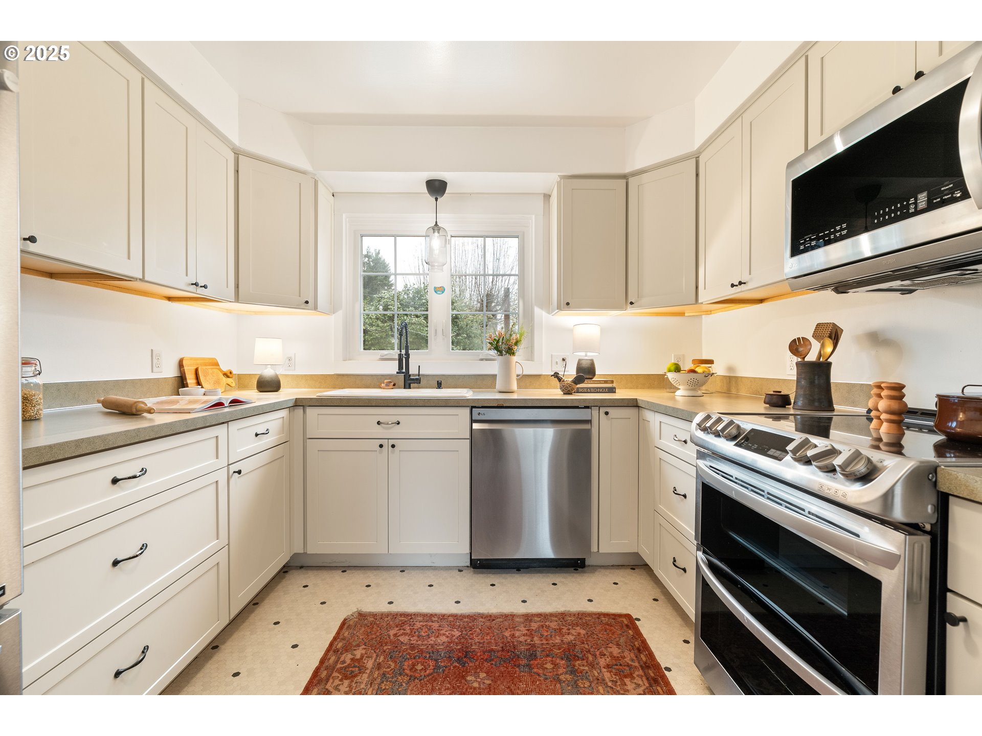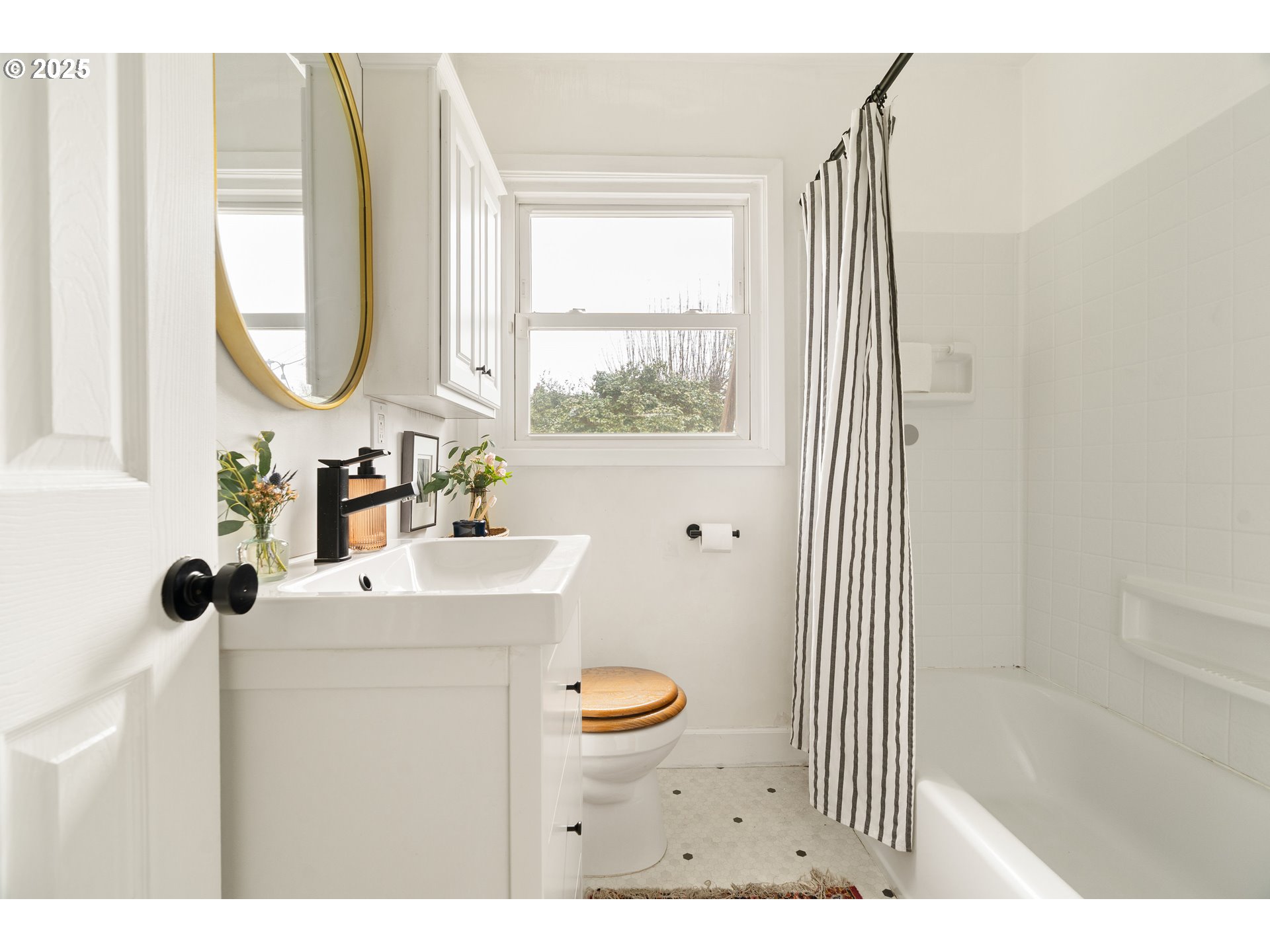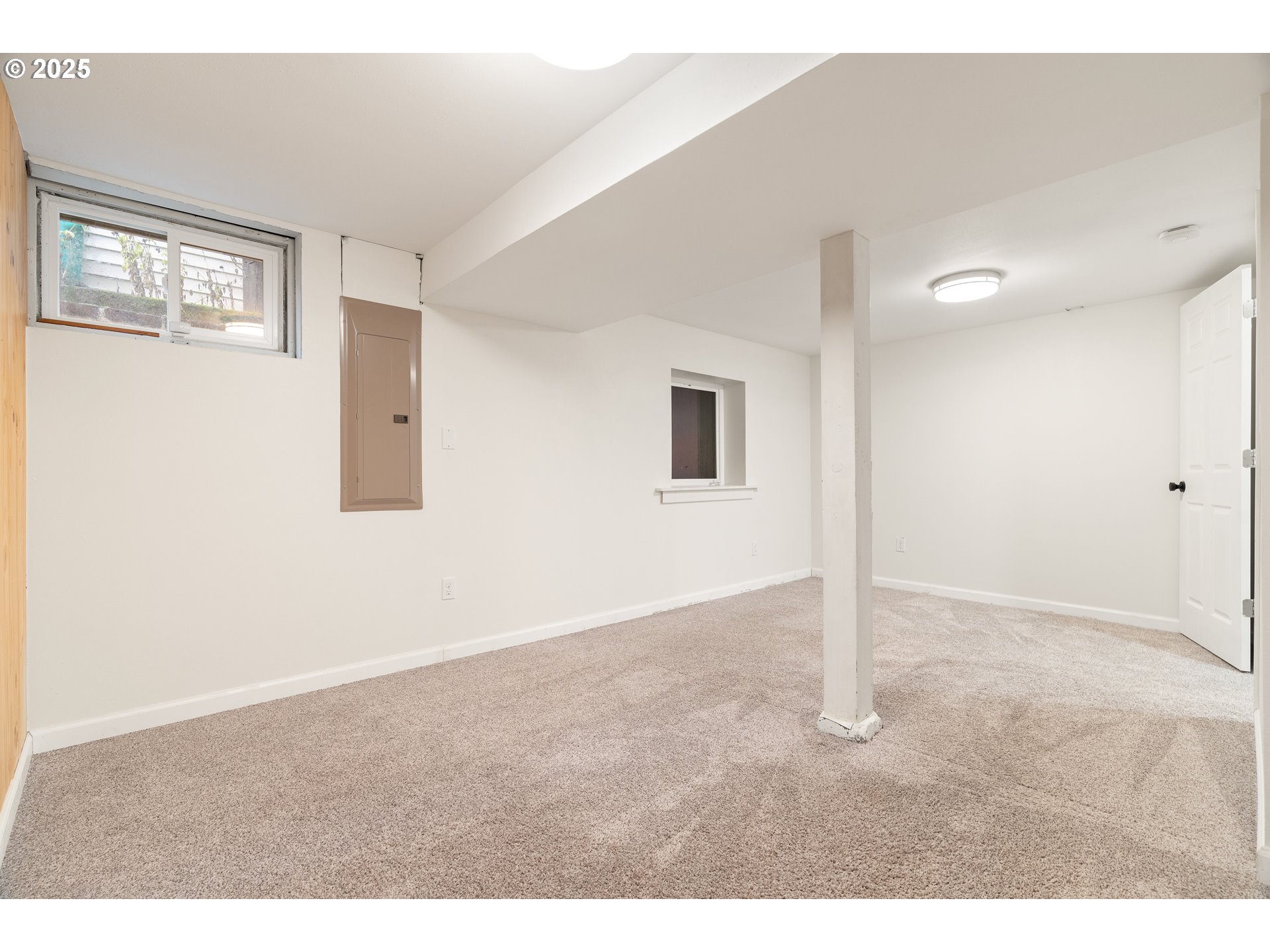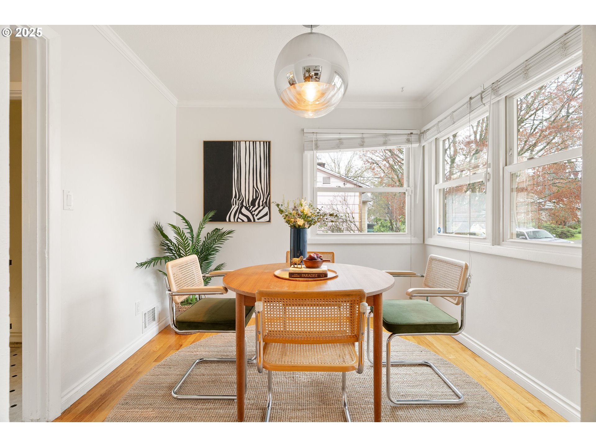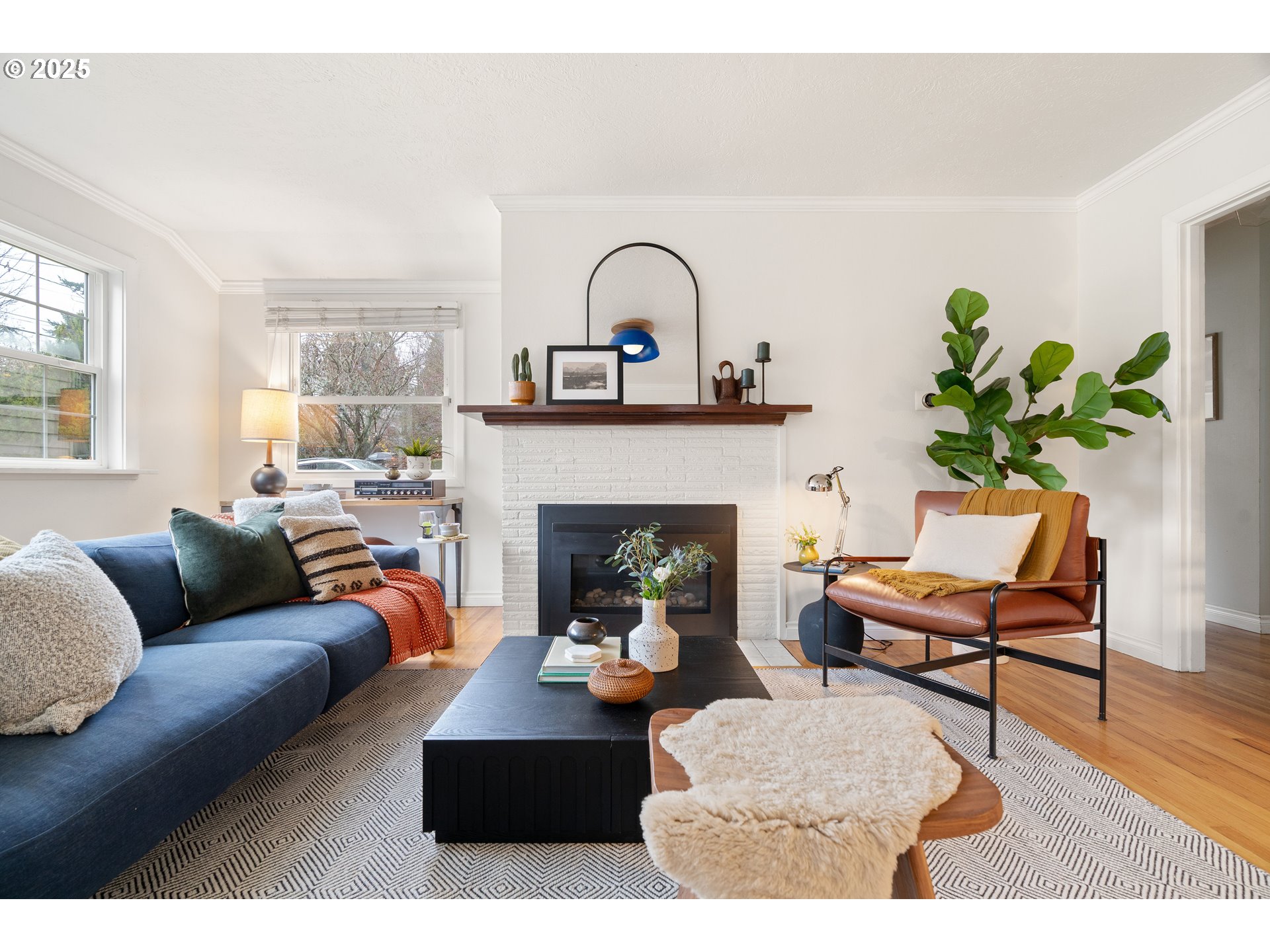 Warm, welcoming, and move-in ready, this 3-bedroom, 2-bath home is tucked away on a quiet street in Portland’s South Tabor neighborhood. The living room features beautiful hardwood floors, a cozy gas fireplace, and west-facing double-paned vinyl windows that bathe the space in natural light. A dedicated dining room offers the perfect setting for everyday meals or special gatherings, while the thoughtfully designed kitchen boasts generous storage, stainless steel appliances, and a double oven for effortless entertaining. Two comfortable bedrooms and a full bath are located on the main level. Downstairs, a spacious family room with a built-in bar creates an ideal space for movie marathons or hosting gatherings, alongside a generously sized third bedroom and another full bathroom. Step outside to a fully fenced backyard oasis with raised garden beds, a greenhouse, powered shed, and patio—perfect for creating the ourdoor space of your dreams. An attached one-car garage and recent upgrades including a new heat pump and furnace (2022), updated PEX plumbing, updated electrical panel, and earthquake retrofit provide peace of mind and modern comfort. Close to all the shops and restaurants in Fo-Po, Montavilla, and Division with lots of public transit options nearby. You've finally found the place to hang your hat! [Home Energy Score = 8. HES Report at https://rpt.greenbuildingregistry.com/hes/OR10036525]