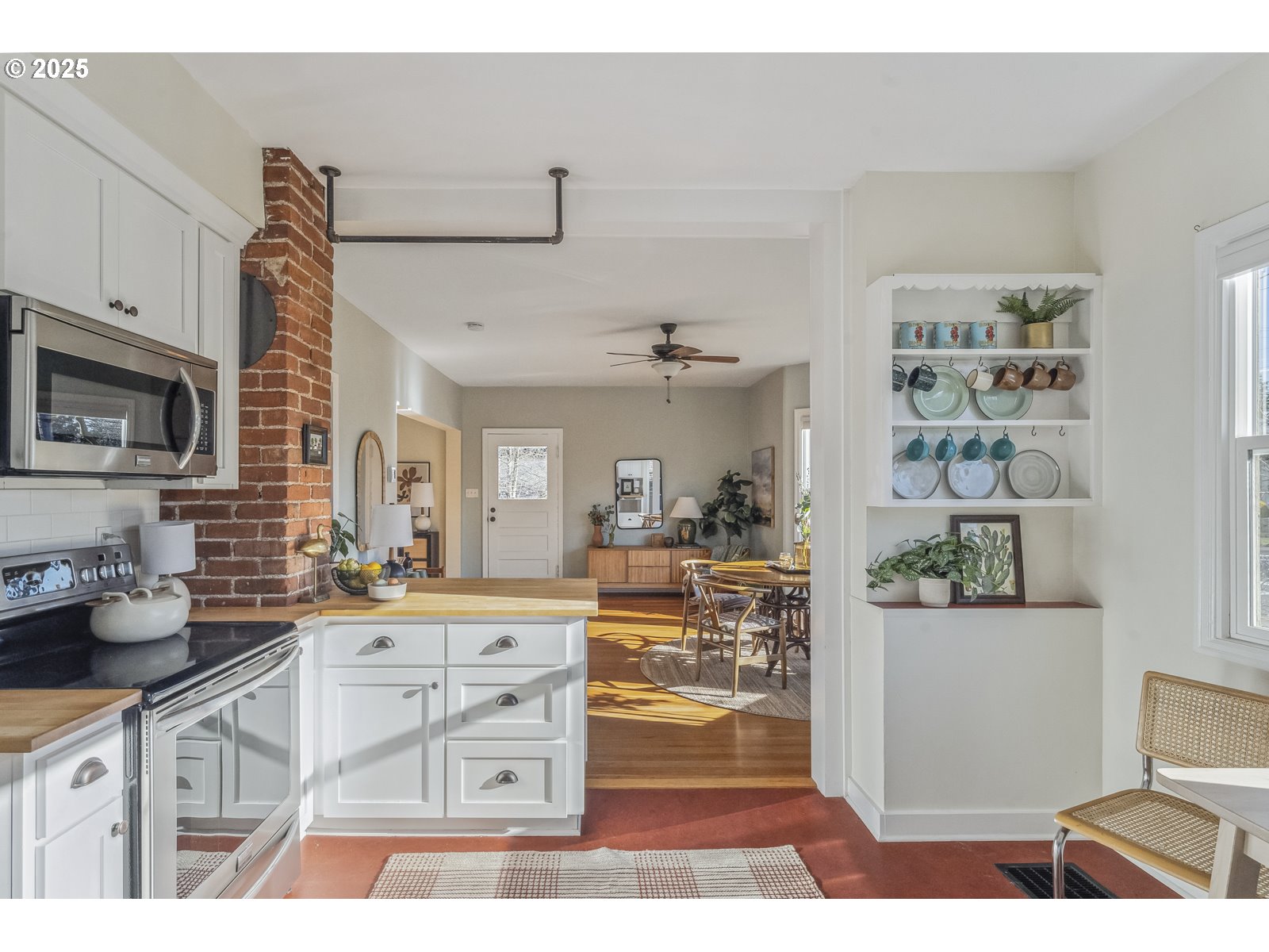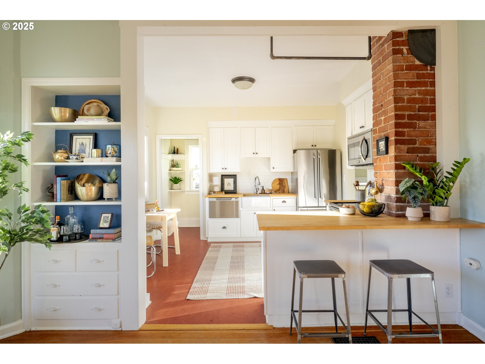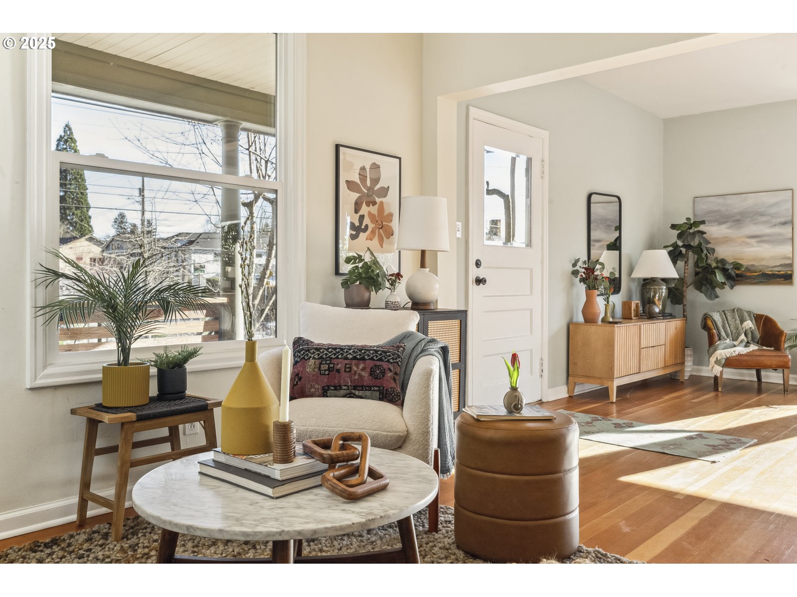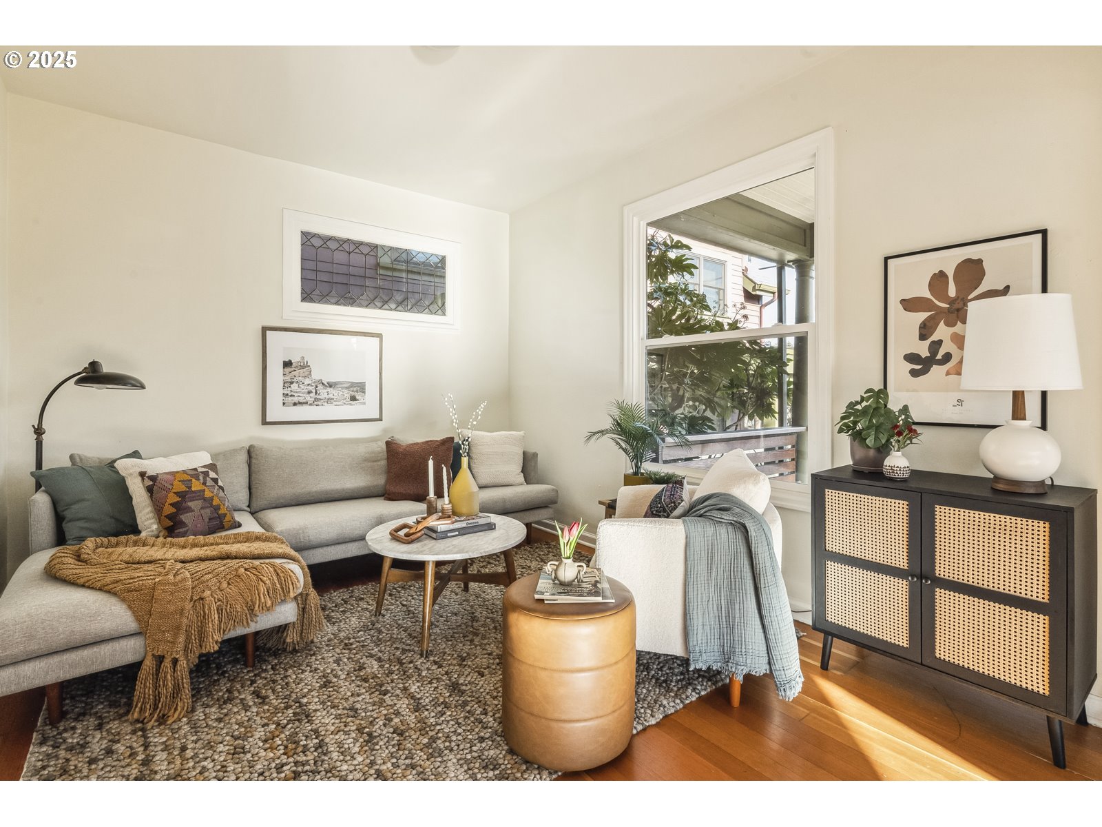 (503) 893-8874This stunning farmhouse, situated on a spacious & sunny corner lot in South Tabor, is the perfect blend of charm and modern updates. Bask in natural light as you relax in the open-concept kitchen and dining area, which features a seamless flow to the main living spaces with warm wood floors, butcher block counters, farmhouse sink, built-ins, and direct access to a charming covered front porch. The main-floor bedroom and bath are thoughtfully connected, creating a convenient en-suite experience. Upstairs, you’ll discover a premium primary suite with a cozy sitting room, luxurious full bath, and spacious bedroom with French doors opening to a private east-facing balcony. This level offers versatile bonus options for an office, nursery or second family room. The lower level is incredibly flexible, offering income-generating potential. Previo
