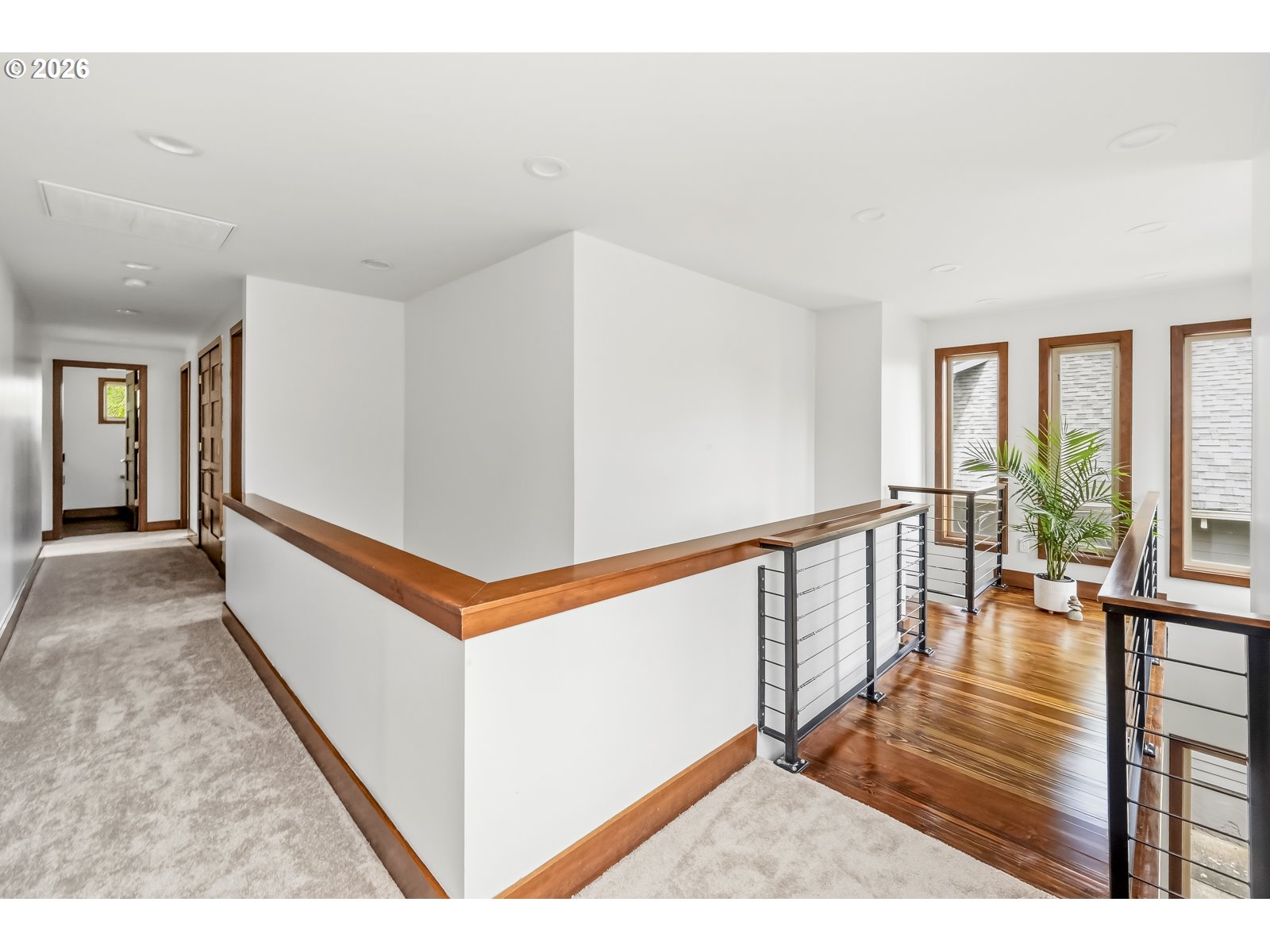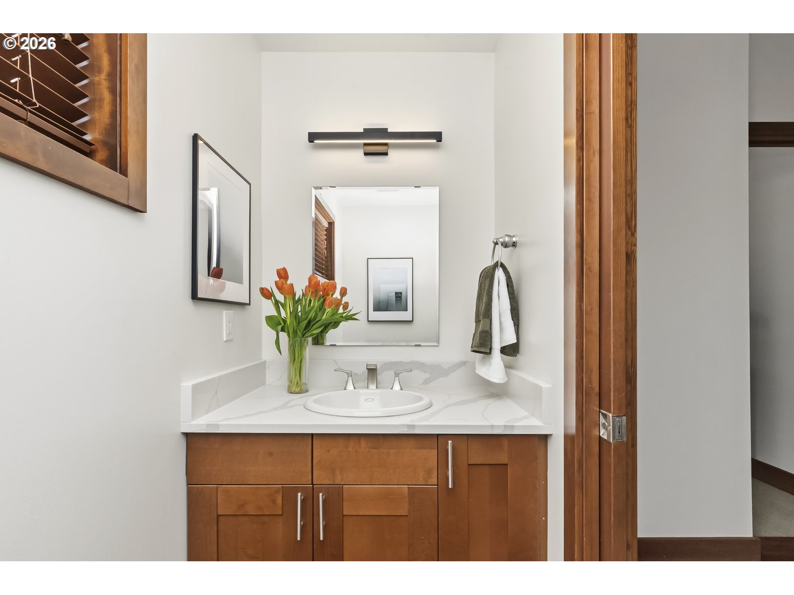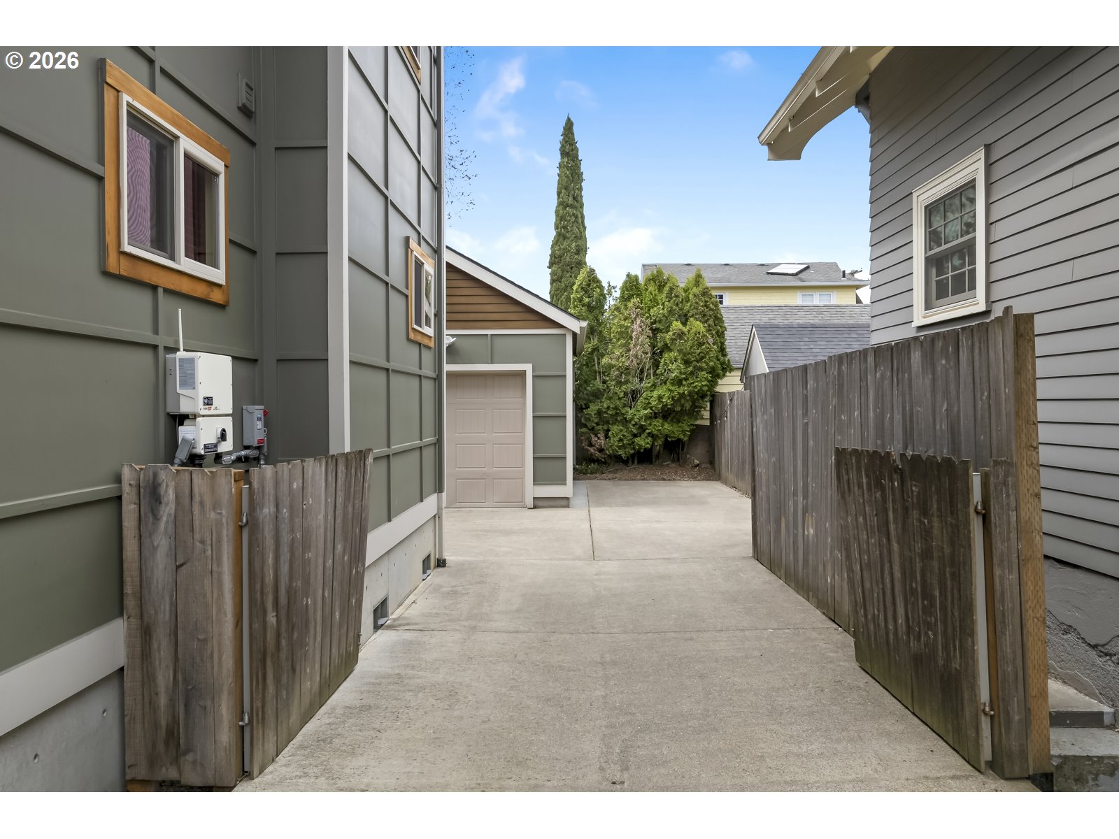 Discover a home that blends classic Craftsman warmth with modern construction and contemporary touches. Step into an inviting entryway framed by exposed wood ceilings, slate tile, and tall windows that flood the space with natural light. The open concept main level is bright and airy, grounded by rich hardwood floors, custom cabinetry, a gas fireplace, and a sleek staircase. The kitchen flows seamlessly into the dining and living areas so you can stay connected while entertaining. An additional front room provides a welcoming workspace, den, or extra bedroom. Upstairs, a sunlit landing with hardwood floors doubles as a reading nook or plant retreat and adjoins the hallway to four bedrooms all with new carpet. Unwind in the primary suite with its private balcony, exposed wood beams, walk-in closet, and jacuzzi tub while the kids or guests enjoy one of the three additional bedrooms, each with tall ceilings and generous closets. Also upstairs is a second bathroom and tucked away laundry area. A long driveway ends at a detached garage with additional side parking and a tree shaded back yard. Entertain on the deck with access to the kitchen, dining room, and a mud room that has a convenient sink. A two-block walk takes you to the neighborhood ridge and parks, where you can stroll along the golf course and take in stunning views of Mount Hood. As a bonus, rooftop solar powers the entire house for $17/month electricity bills and produces enough additional energy to charge an EV. [Home Energy Score = 7. HES Report at https://rpt.greenbuildingregistry.com/hes/OR10148588]