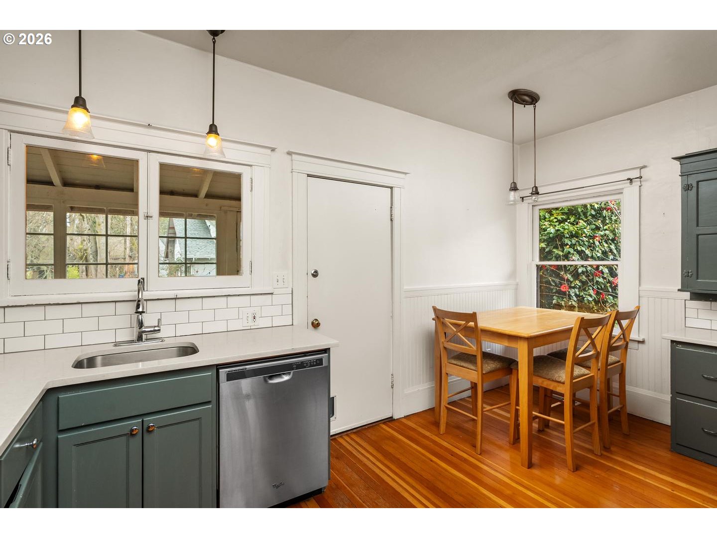Stunning Craftsman Bungalow just blocks away from Division St. shops and restaurants. Home features many details with charming historic character including beautiful wood floors, wood paneling, and moldings. There are high ceilings throughout, a kitchen with quartz countertops and a sunroom in the back that would be a great artist studio. Enjoy a cold beverage with friends on a warm summer night on the large front porch that is great for social gatherings! Your pets will love the fenced backyard. There is also a spacious basement that makes for great storage space and has garage access. Recent upgrades include seismic retrofitting, newer high efficiency furnace and A/C, foundation waterproofing, radon mitigation, and new main water line. [Home Energy Score = 2. HES Report at https://rpt.greenbuildingregistry.com/hes/OR10244319]