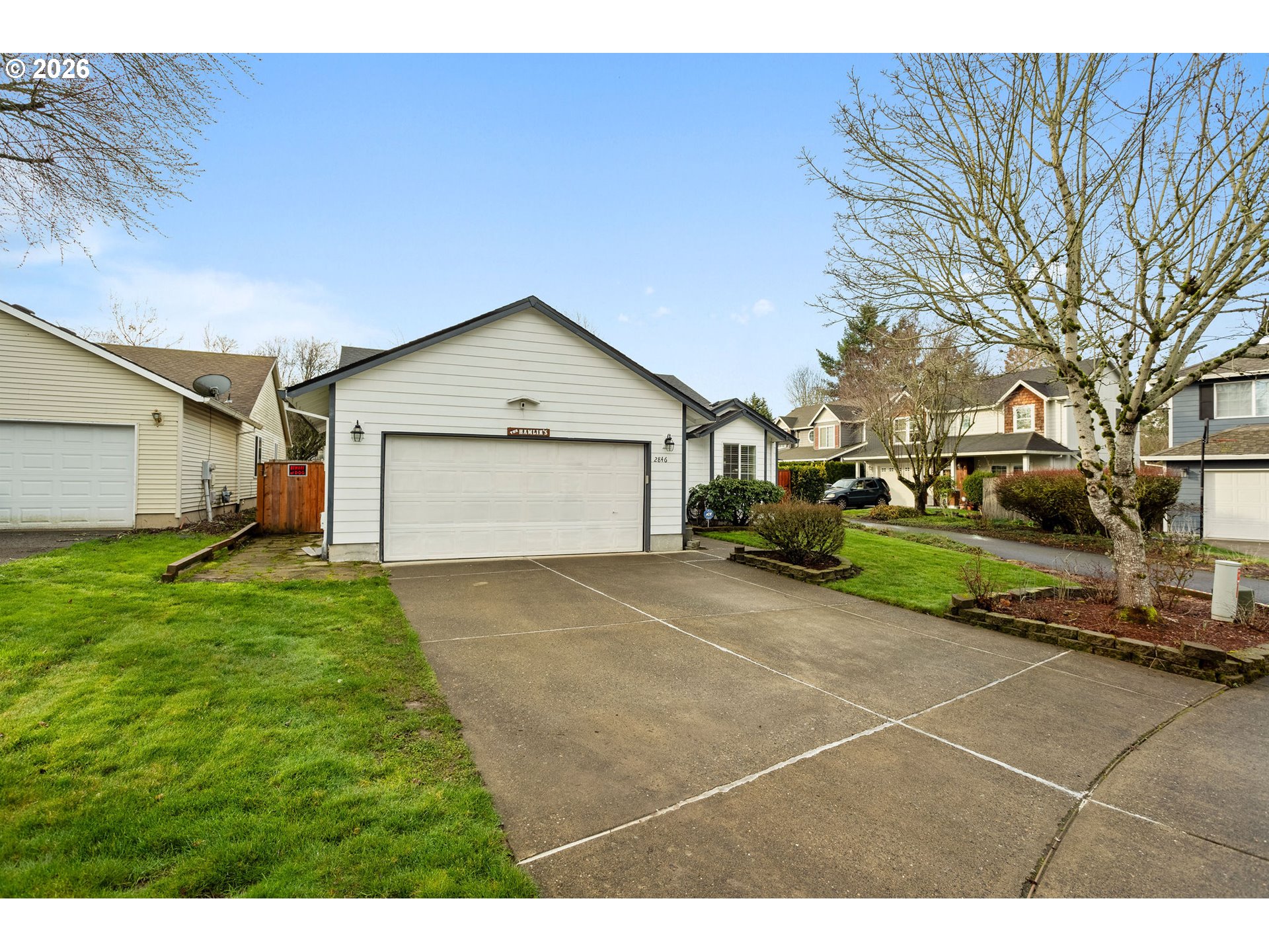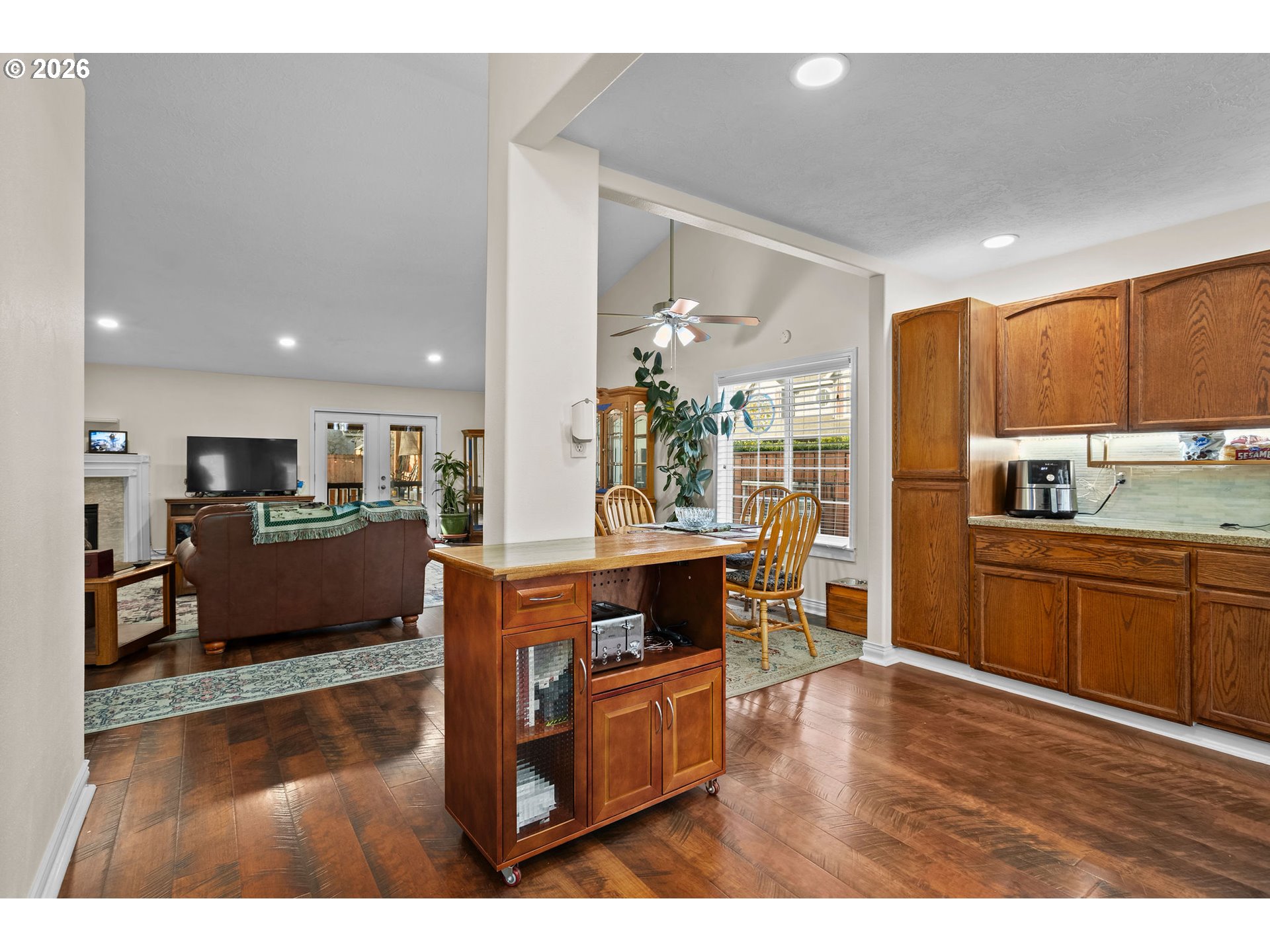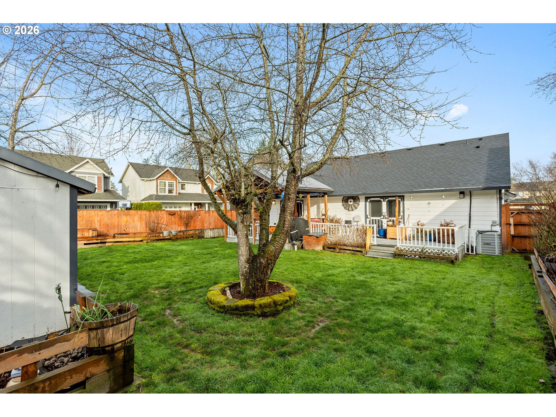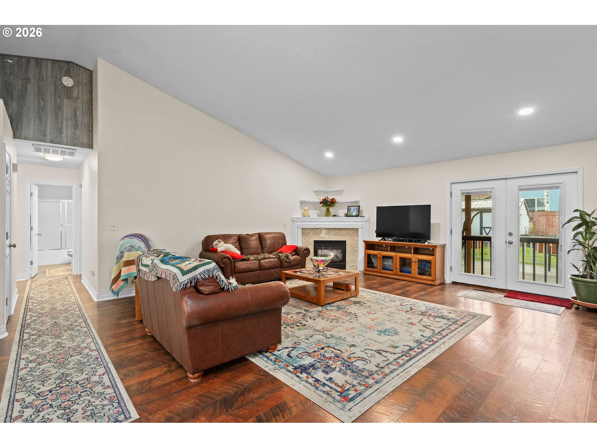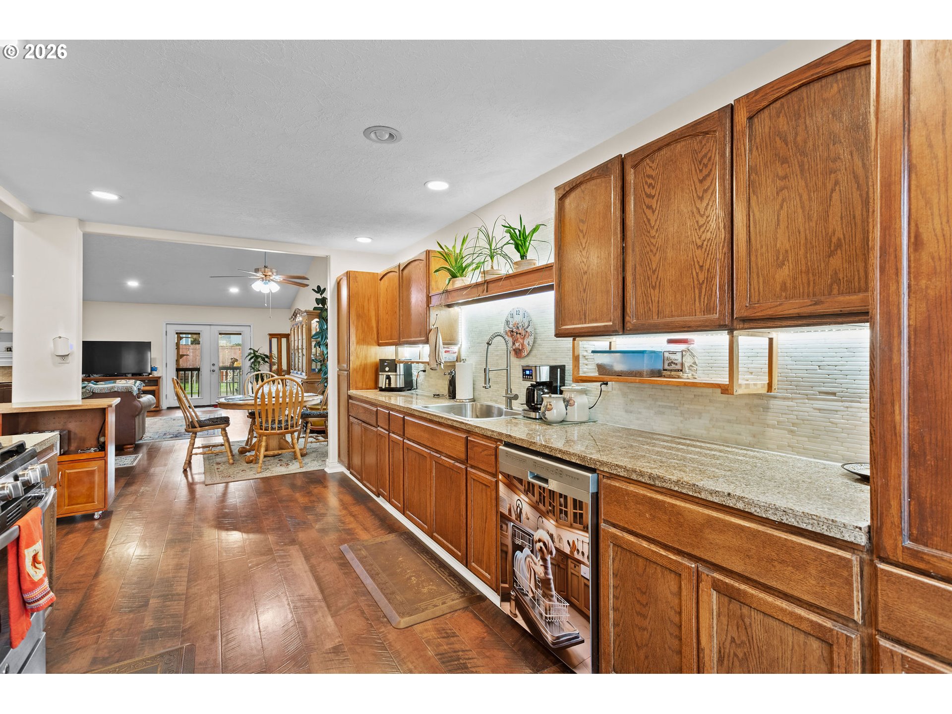 Open Sunday 10am-Noon. Quiet Cul-de-Sac Living Meets Modern Comfort in this Single-Level Ranch! This impeccably maintained, single-level ranch features a sought-after great room floor plan with extensive recent updates throughout. Tucked away in a quiet, well-kept cul-de-sac, the home is just a half-mile stroll from the 32-acre Gradin Community Sports Park, offering easy access to the Gresham Arboretum’s paved trails, pickleball courts, a dedicated dog park, and stunning views of the local buttes.Inside, the home feels airy and expansive thanks to vaulted ceilings and newer laminate flooring that flows through every room. The heart of the home is the light-filled great room, anchored by a cozy gas fireplace and elegant French doors. The kitchen is equipped with granite countertops and stainless steel appliances, while the primary suite serves as a private retreat featuring a walk-in closet, walk-in shower, and its own set of French doors leading directly to the deck.Designed for longevity, the home features a new roof and covered Trex deck with a durable metal roof installed just 3 years ago, while the Hardiplank siding, furnace, AC, and interior/exterior paint have all been updated within the last 7 years. The private, fully fenced backyard is built for year-round use and comes complete with a sprinkler system, a tool shed, and vibrant rhododendrons that bloom in the spring. Additional storage is easily accessible in the attached two-car garage, which includes convenient attic space.