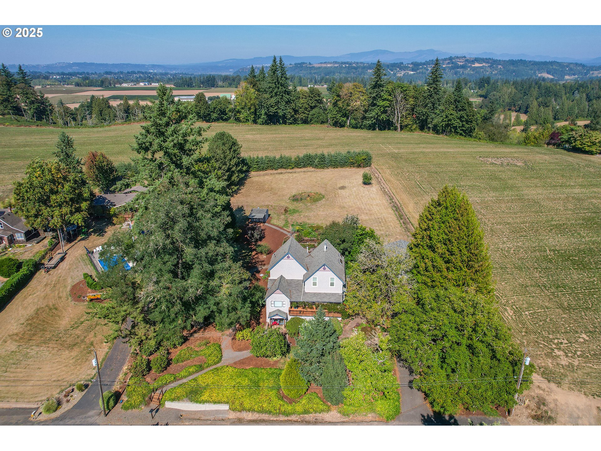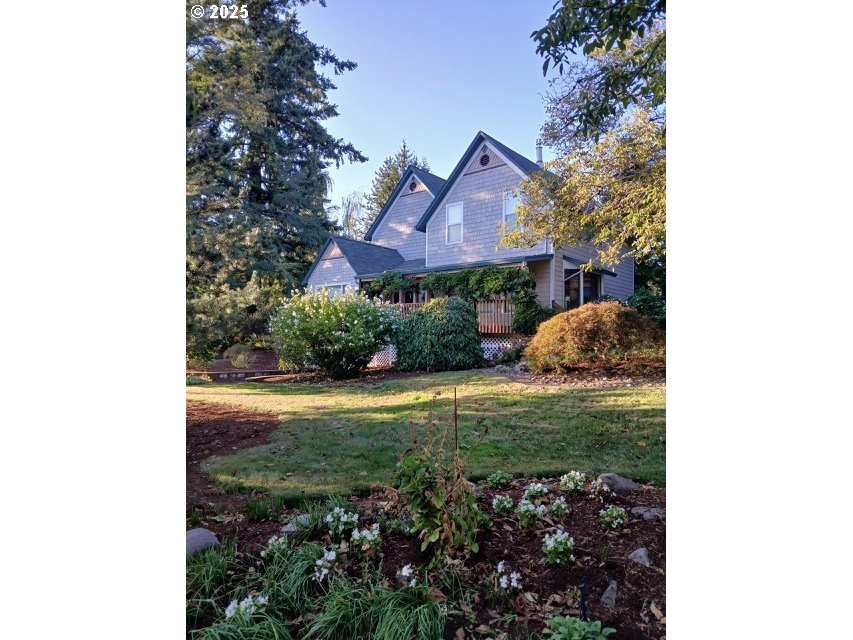 MOTIVATED SELLER! Turn of the Century Farmhouse on Over an Acre – One of a Kind Step into timeless charm with this beautifully updated turn-of-the-century farmhouse, perfectly situated on more than an acre. The inviting front porch veranda sets the tone, welcoming you into a home that blends classic character with modern comforts.Inside, the open-concept main floor features wood floors, a cozy gas fireplace, and a bay window with views of the lush side garden. A formal dining room with built-ins and French doors flows into a sitting area that opens to an expansive deck—perfect for entertaining while enjoying the landscaped grounds.The kitchen is a chef’s delight with stainless steel appliances, double ovens, refrigerator, and a gas range with downdraft. A butler’s pantry adds extra storage, while a private main-level office with built-ins provides a perfect work-from-home space. A full bath and laundry complete the main level.Upstairs, the spacious primary suite offers garden views and an en-suite bath. Three additional bedrooms, all with wall-to-wall carpet, provide ample space for family or guests. The lower level features a large family room with French doors leading to a patio and the gardens beyond.Outdoors, discover a detached studio with water and electricity—ideal for creative pursuits or hobbies. Gardeners will love the mature landscaping and thoughtfully designed grounds. A double garage and long driveway ensure plenty of parking.This farmhouse is truly one of a kind—combining historic charm, modern updates, and a property that’s as functional as it is beautiful.
